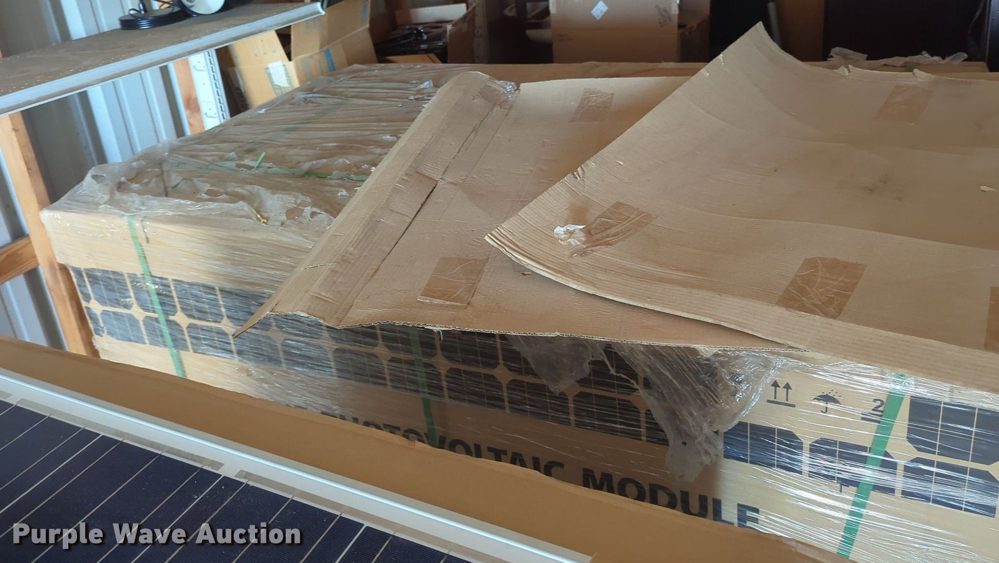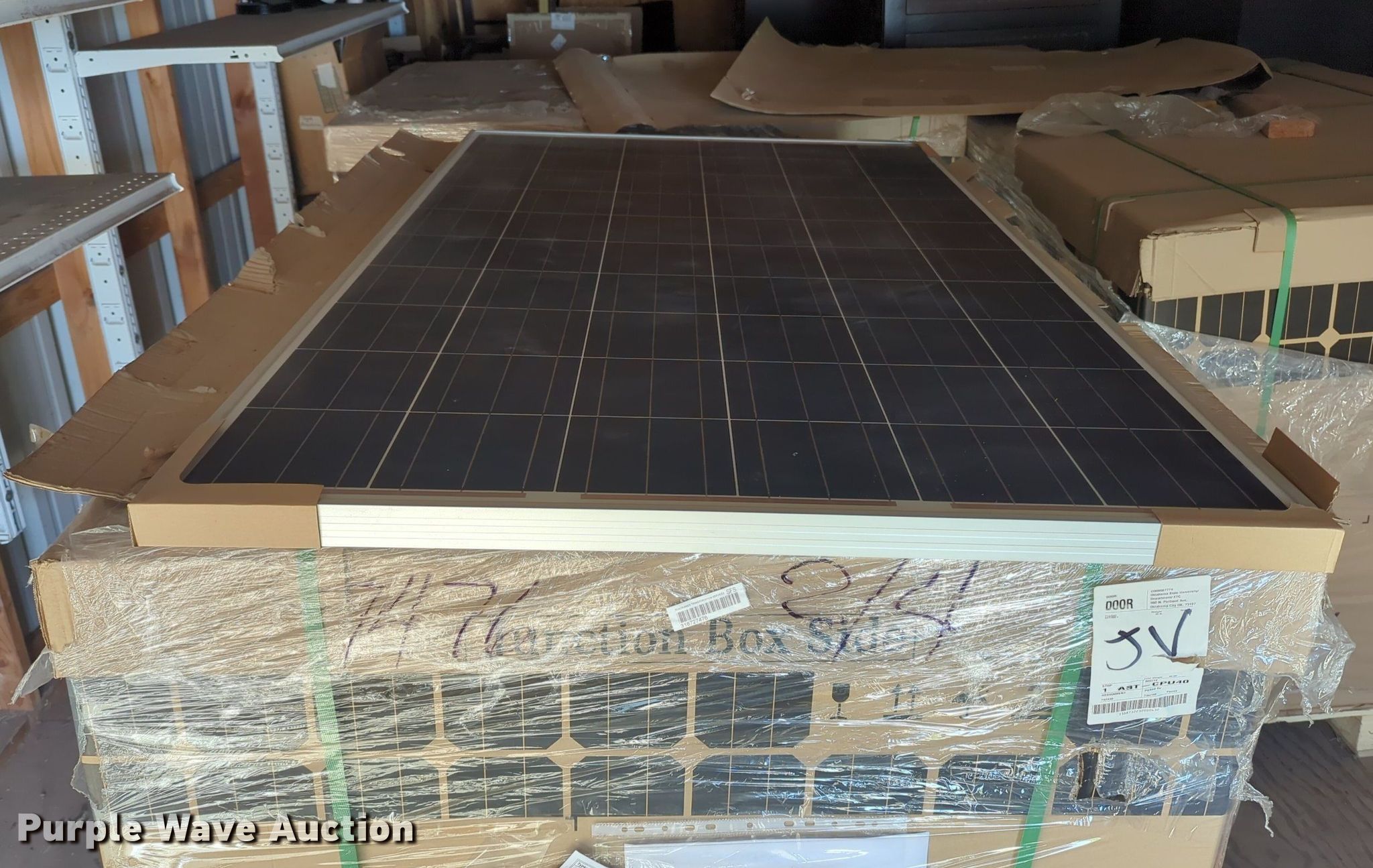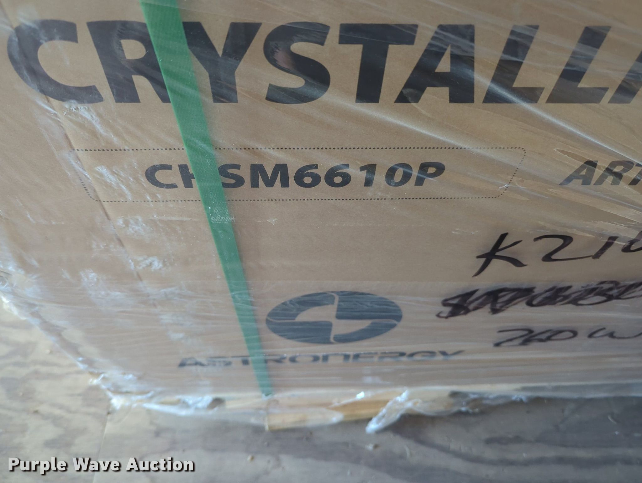 Purple Wave is selling a used Building Materials in Oklahoma. This item is a Approx. 75 Astronergy CHSM6610P solar panels with the following: Unused, Sale #: 2413-KP