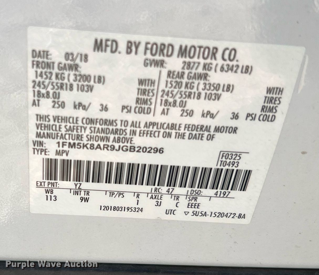 Purple Wave is selling a used Passenger Vehicle in Missouri. This item is a 2018 Ford Explorer Police Interceptor SUV with the following: Miles: 54,319 on odometer, Hours: 11,796 on meter, VIN: 1FM5K8AR9JGB20296