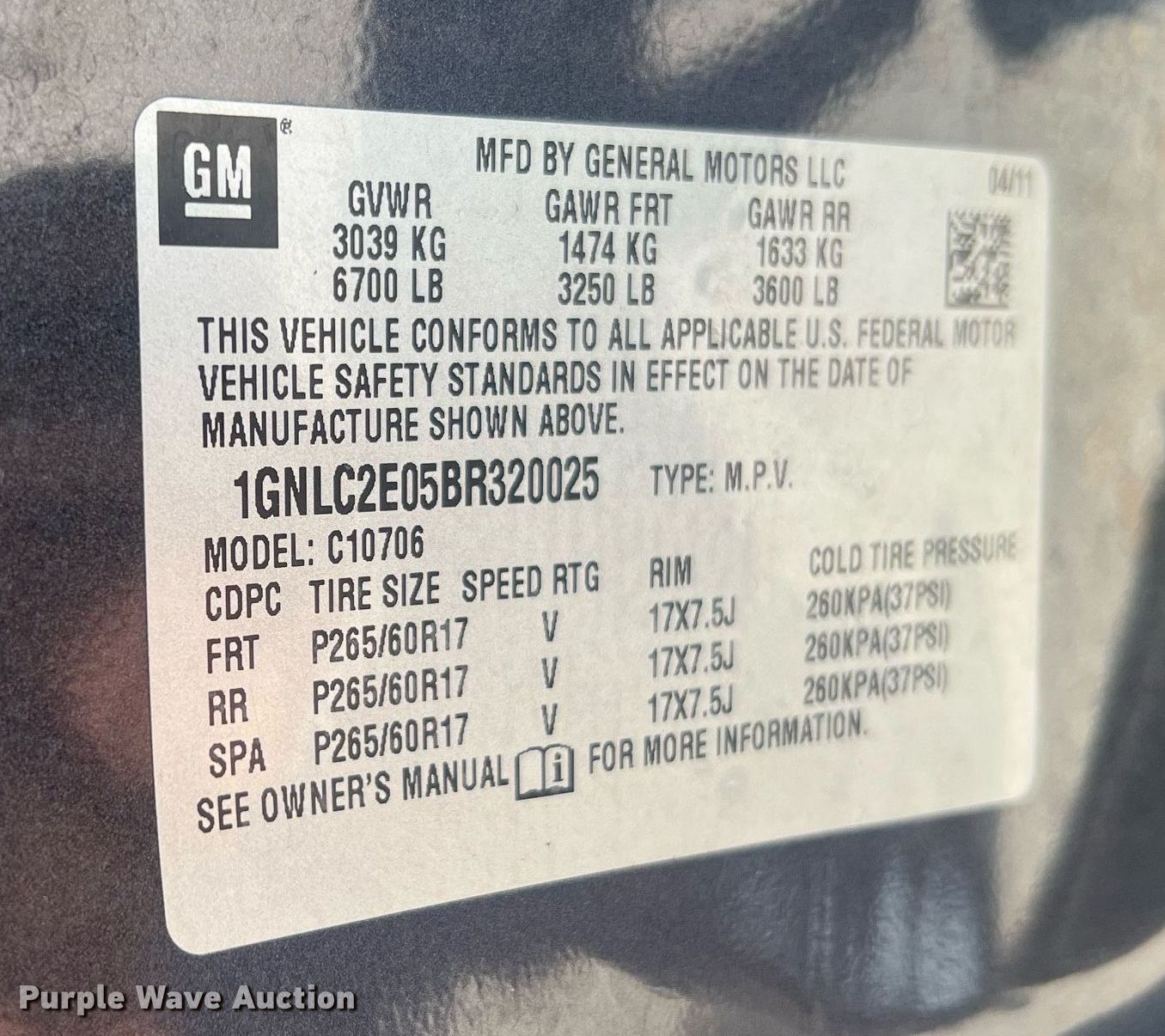 Purple Wave is selling a used Passenger Vehicle in Missouri. This item is a 2011 Chevrolet Tahoe Police SUV with the following: Miles: 103,172 on odometer, VIN: 1GNLC2E05BR320025, Unit#: EB2-A3F