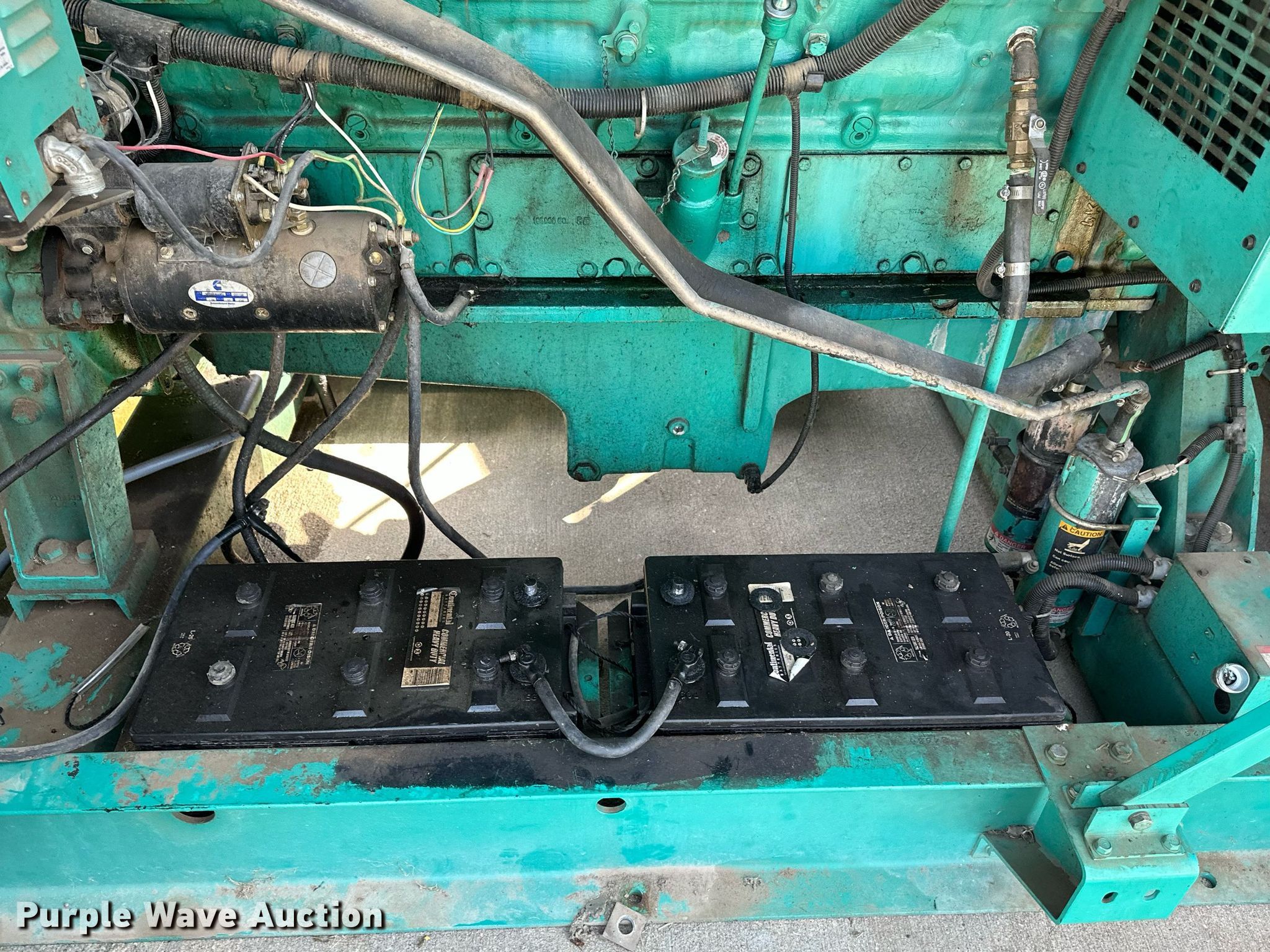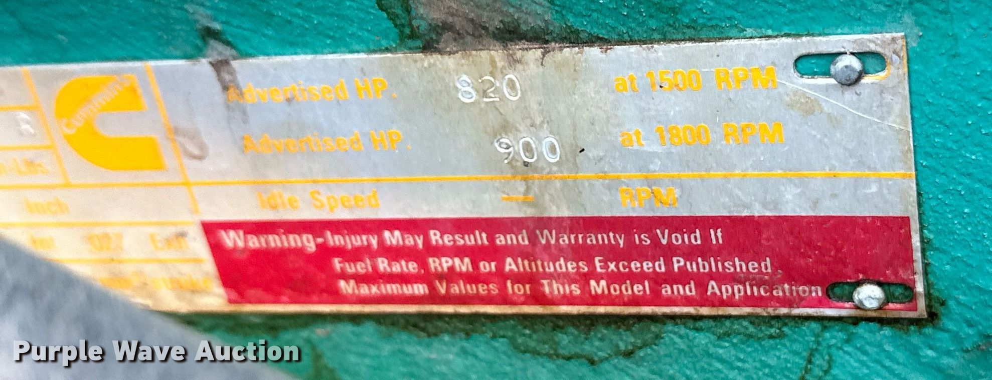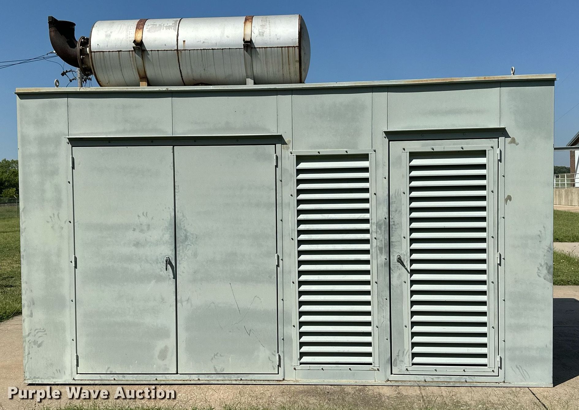 Onan 600DFGB generator. Hours: Unknown, Serial: B980699792. Dimensions 15'L x 94"W x 146"H. Engine Cummins VTA-28-G5, Serial: 25233160, Cylinders: 12, Fuel type: Diesel, HP: 900. Features Generator kVA: 750, kW: 600, Phase: Three, Electric start. Notes Unit has been disconnected from utilities. City of Newton. 201 East 6th Street. Newton, KS 67114