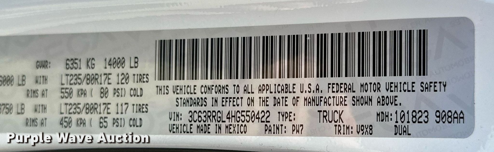 This 2017 Dodge Ram 3500 Crew Cab pickup truck will sell to the highest bidder regardless of price.