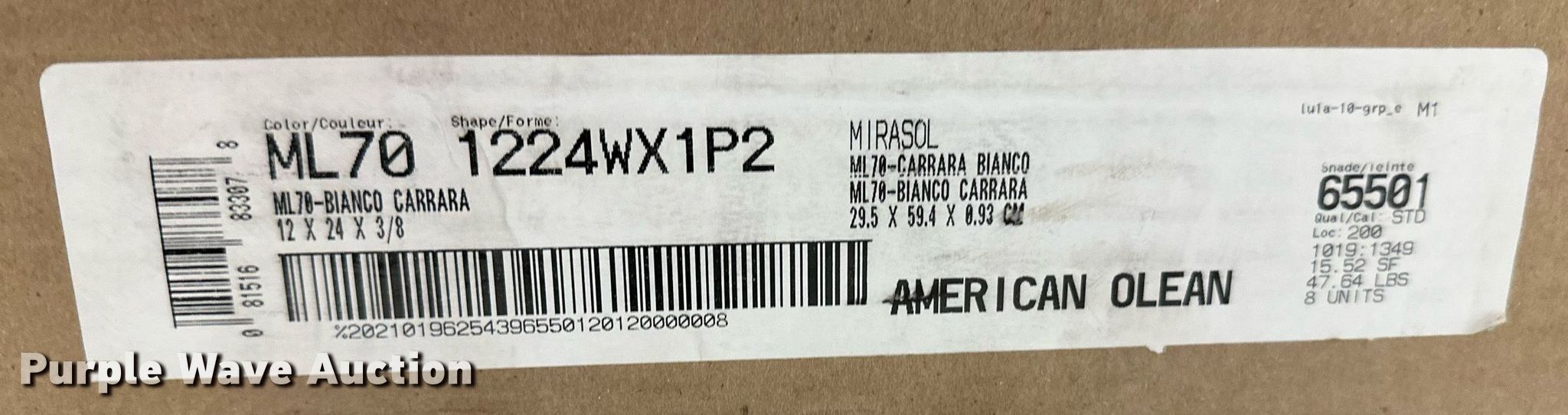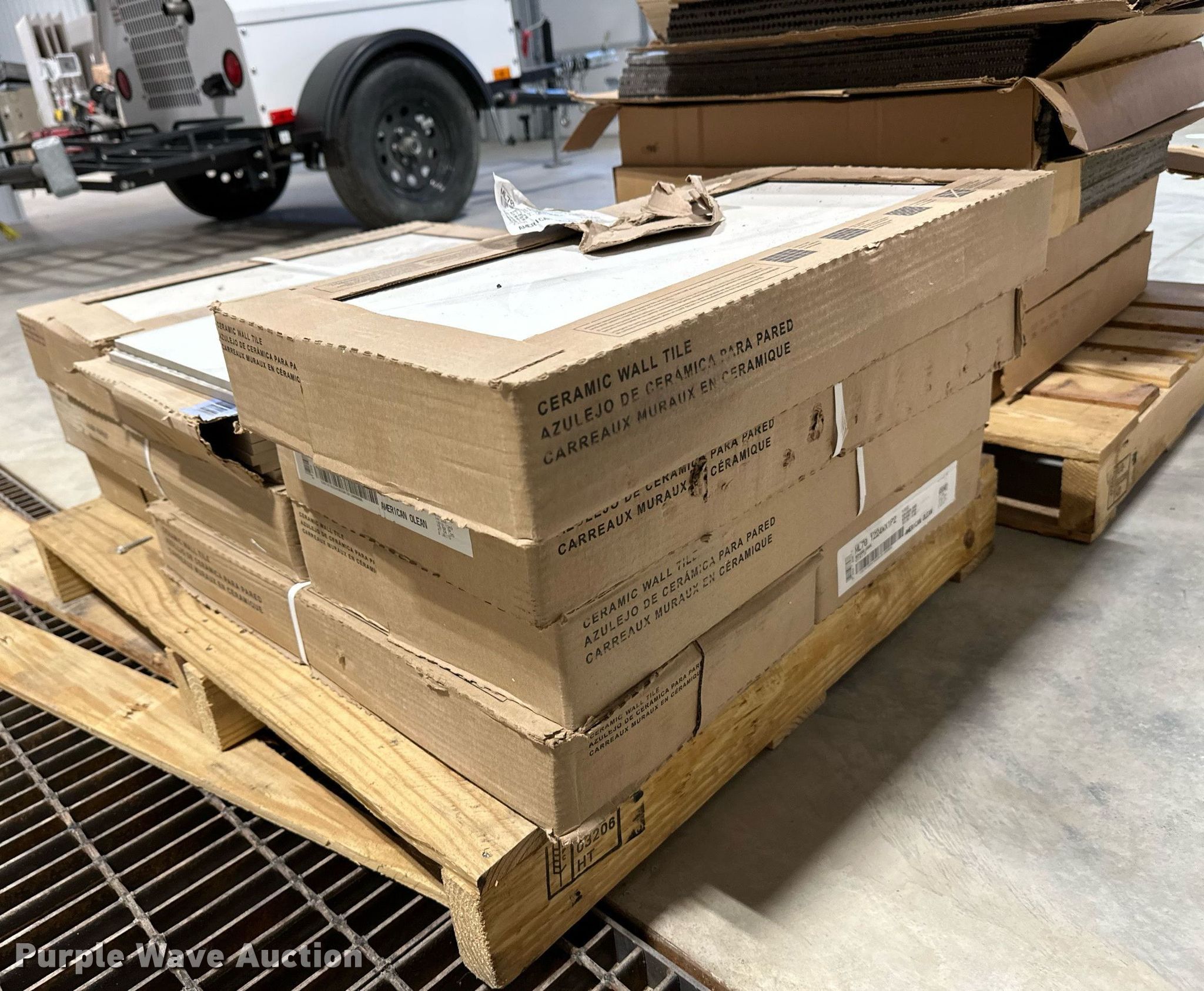 Purple Wave is selling a used Building Materials in Kansas. This item is a (80) ceramic wall tile with the following: Dimensions: 23" L x 11 1/2" W, Carpet not included