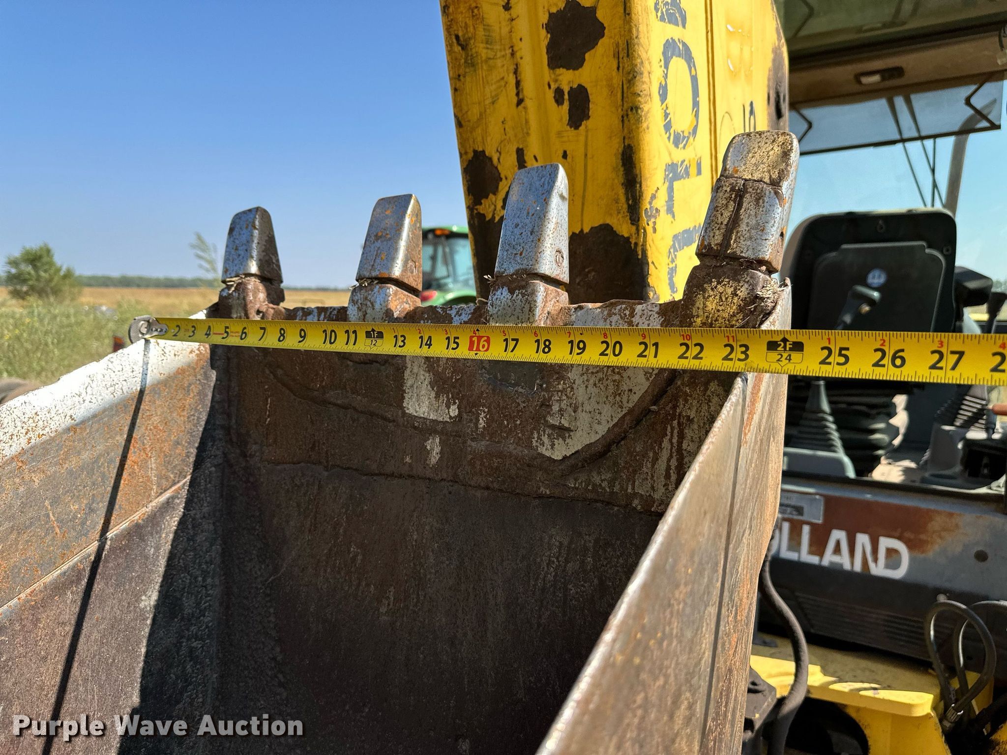 2001 New Holland LB90 backhoe. Hours: 4,949 on meter, Serial: 031032819. Engine Cylinders: 4, Fuel type: Diesel. Transmission Shuttle shift, 4F - 4R. Chassis Four wheel drive. Operators station Enclosed cab, Heat, Backhoe controls: Wobble stick / two stick. Features Loader Bucket Width: 88", Backhoe Extendable stick, Bucket Width: 24", Cutting edge: Weld-on, Teeth: 4.. Tires Front: 14-17.5, Rear: 16.9-28. Notes Non-operational backhoe latch , Glass missing, Door removed but included , Non-operational Heat. Salt Creek Township. Nickerson, KS 67561