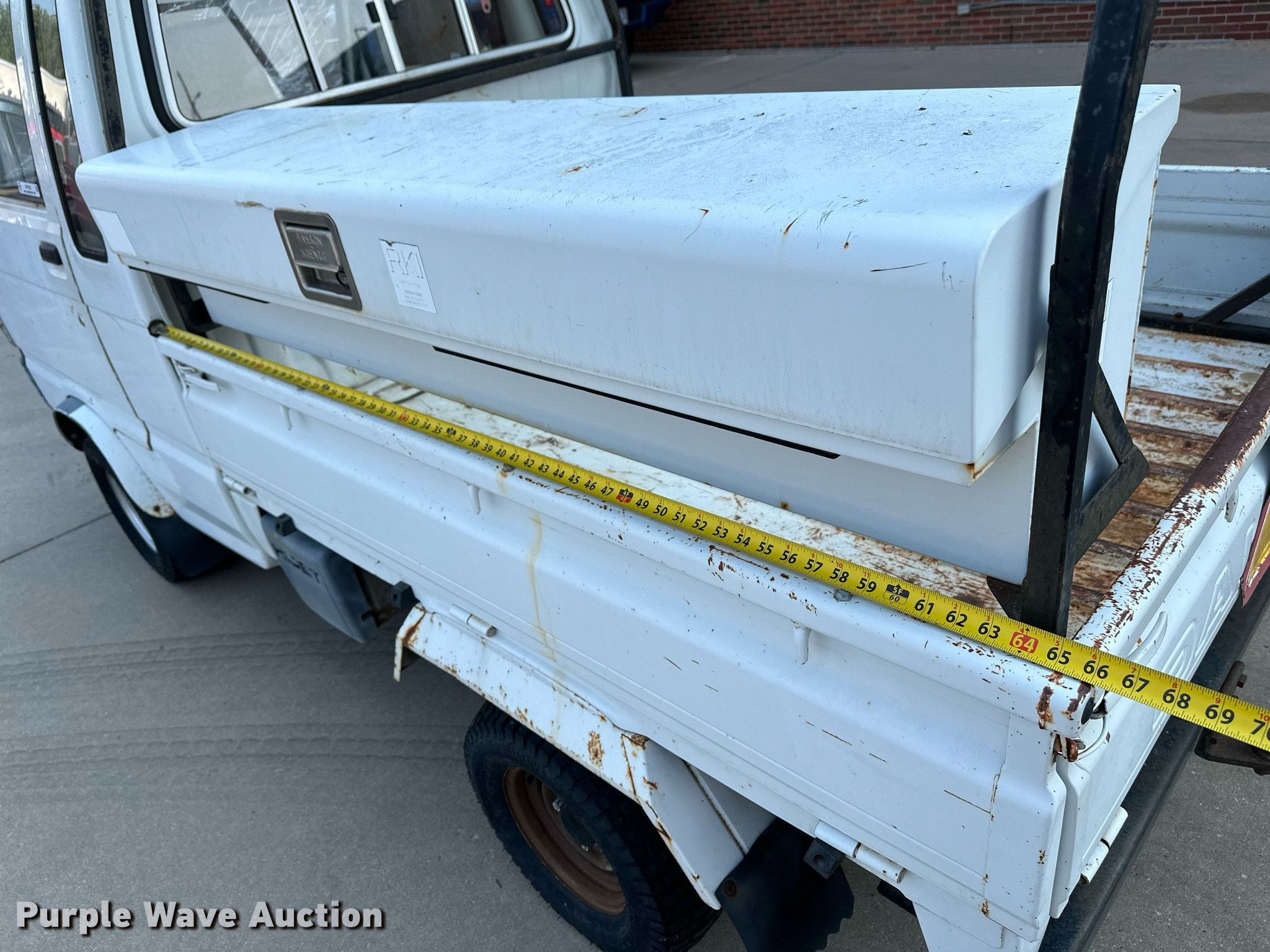 1993 Daihatsu Hijet S80LP-JTRK mini truck. Miles: 39,034 on odometer, VIN: JDA000S8000308901, Unit #: 304. Engine Cylinders: 3, Fuel type: Gas. Transmission Manual, Speed: 4. Operators station Enclosed cab. Features Box bed 66" L x 54" W, Ladder rack, Ball hitch: 2". Tires Size: 20x8.00-10. Notes Windshield cracked. Kansas non-highway title. Title distribution may be delayed up to 14 days from verification of funds. Wichita State University. 1845 N Fairmount Box 23. Wichita, KS 67260