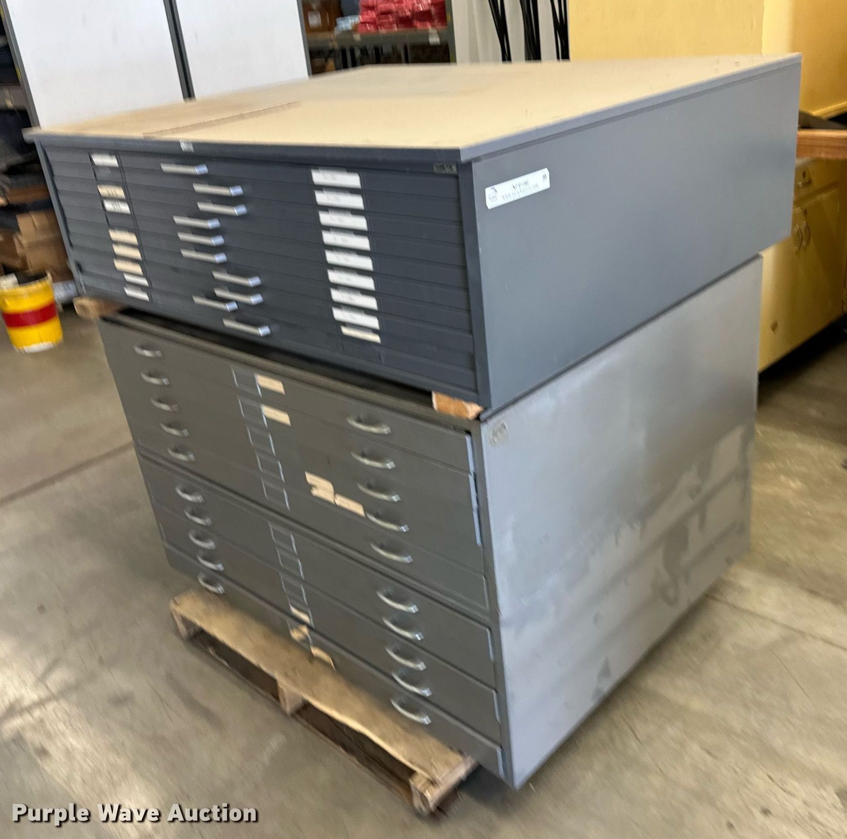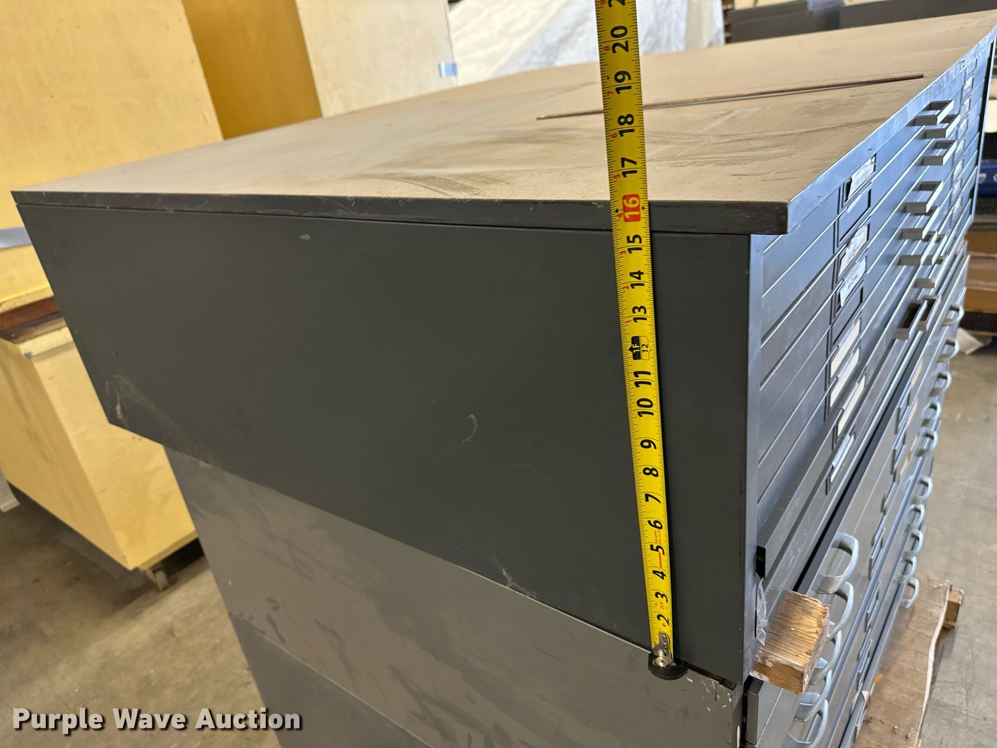 Purple Wave is selling a used Office Supplies and Equip. in Kansas. This item is a (3) blueprint cabinets with the following: (3) blueprint cabinets. Wichita State University. 1845 N Fairmount Box 23. Wichita, KS 67260