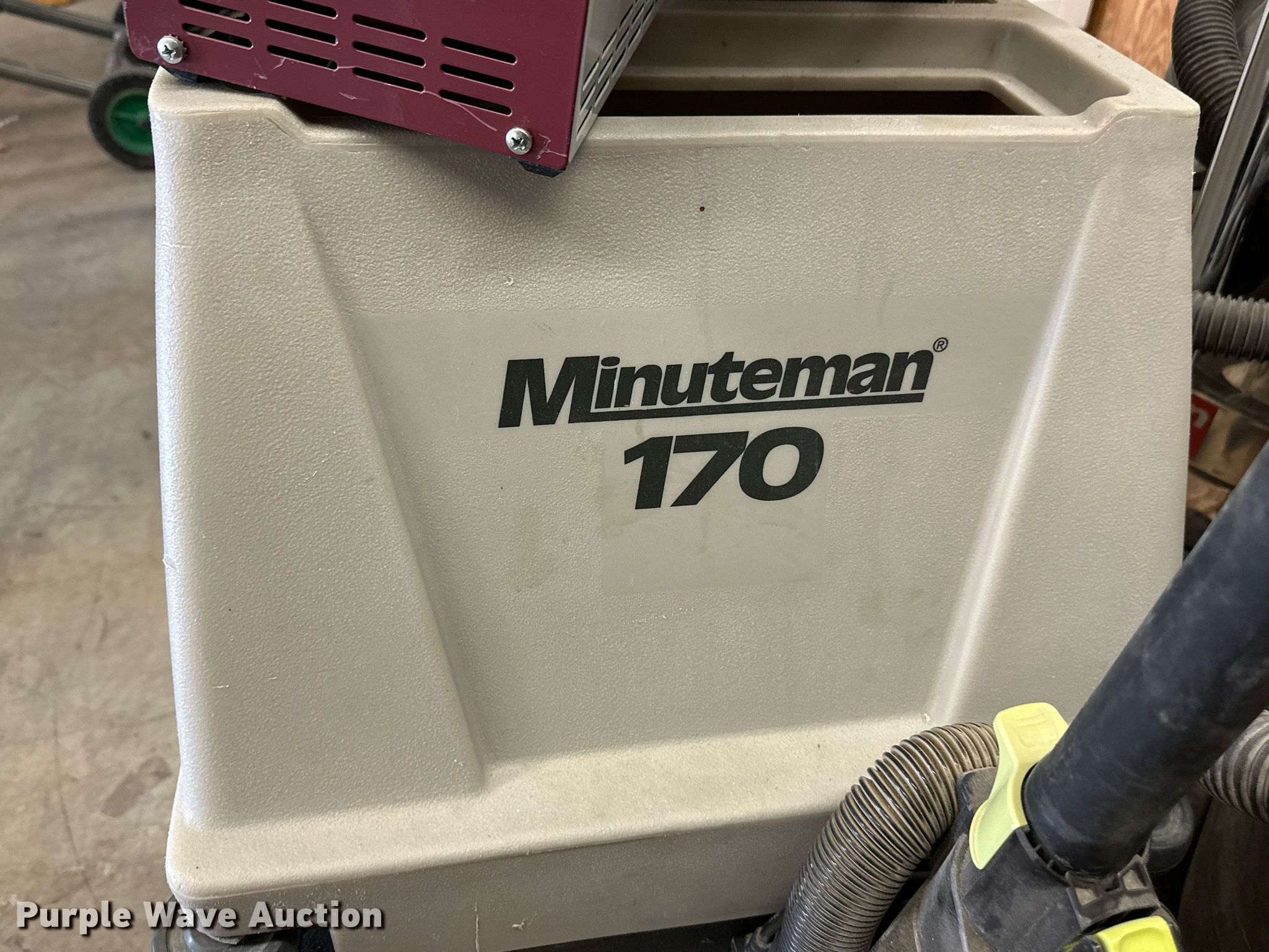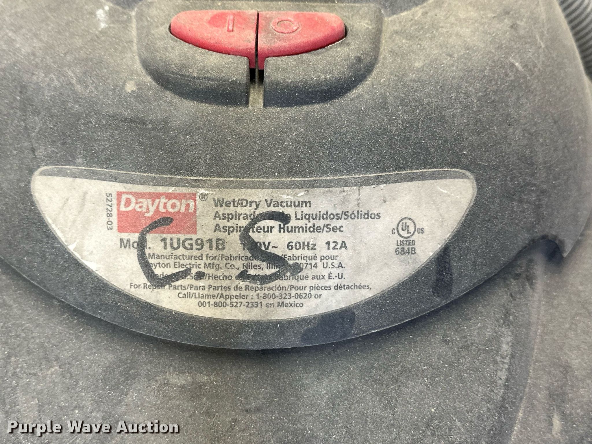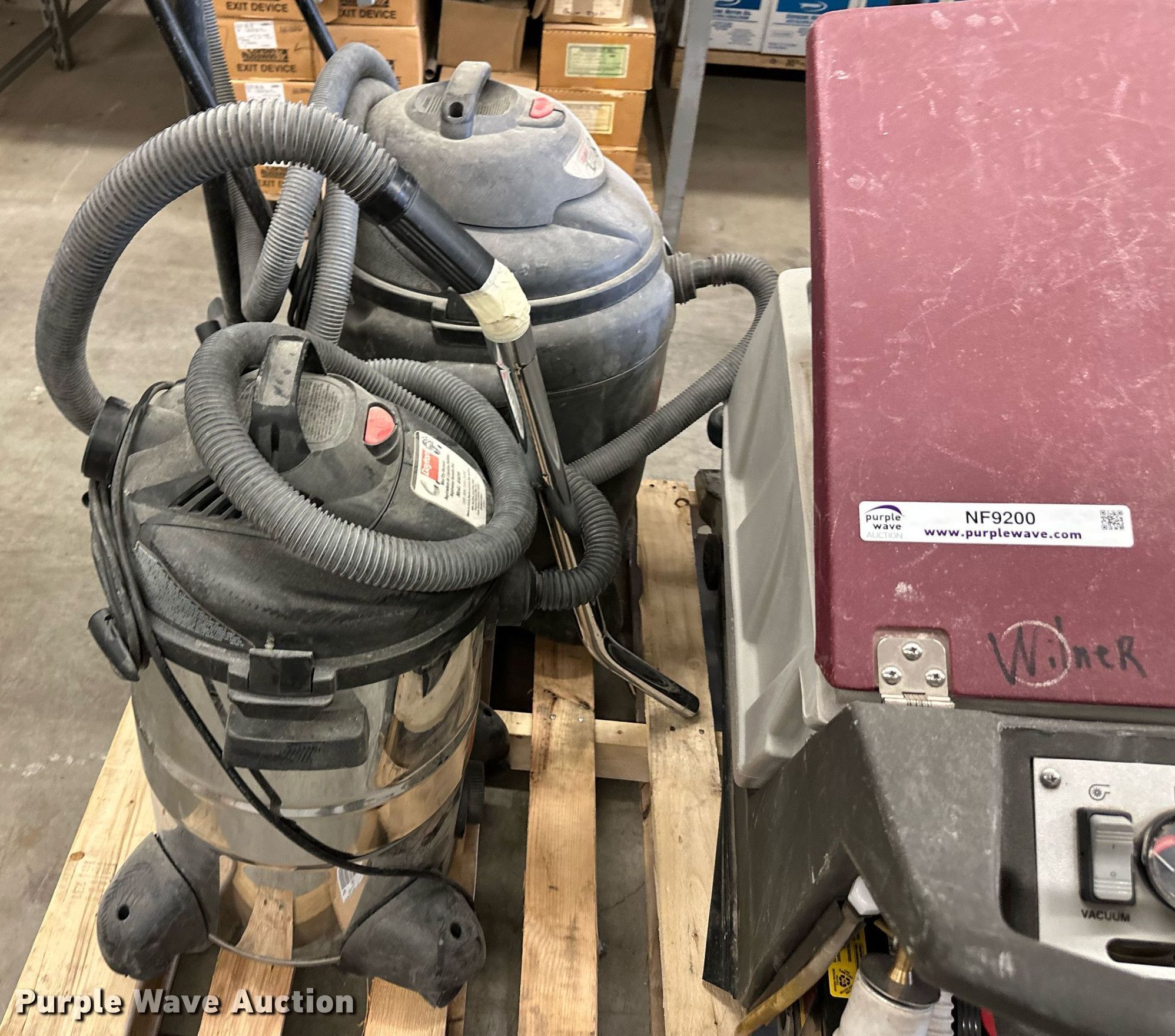 Purple Wave is selling a used Tools in Kansas. This item is a Floor cleaning equipment with the following: Minuteman 170 floor scrubber, Bissell vacuum, (2) shop vacuums, Dayton 1UG91B, Dayton 6AKY0