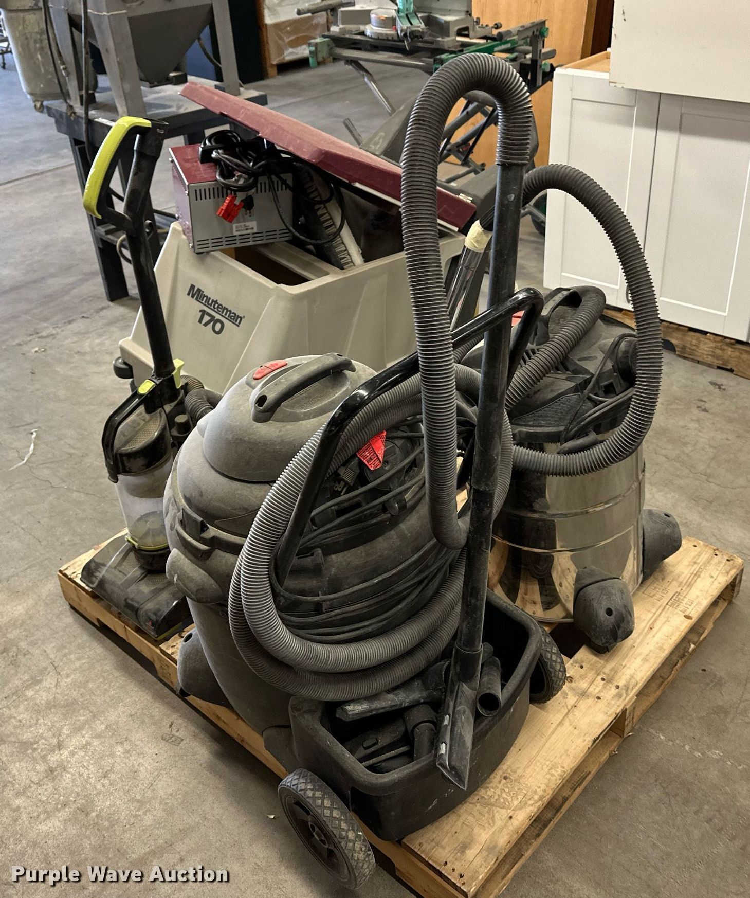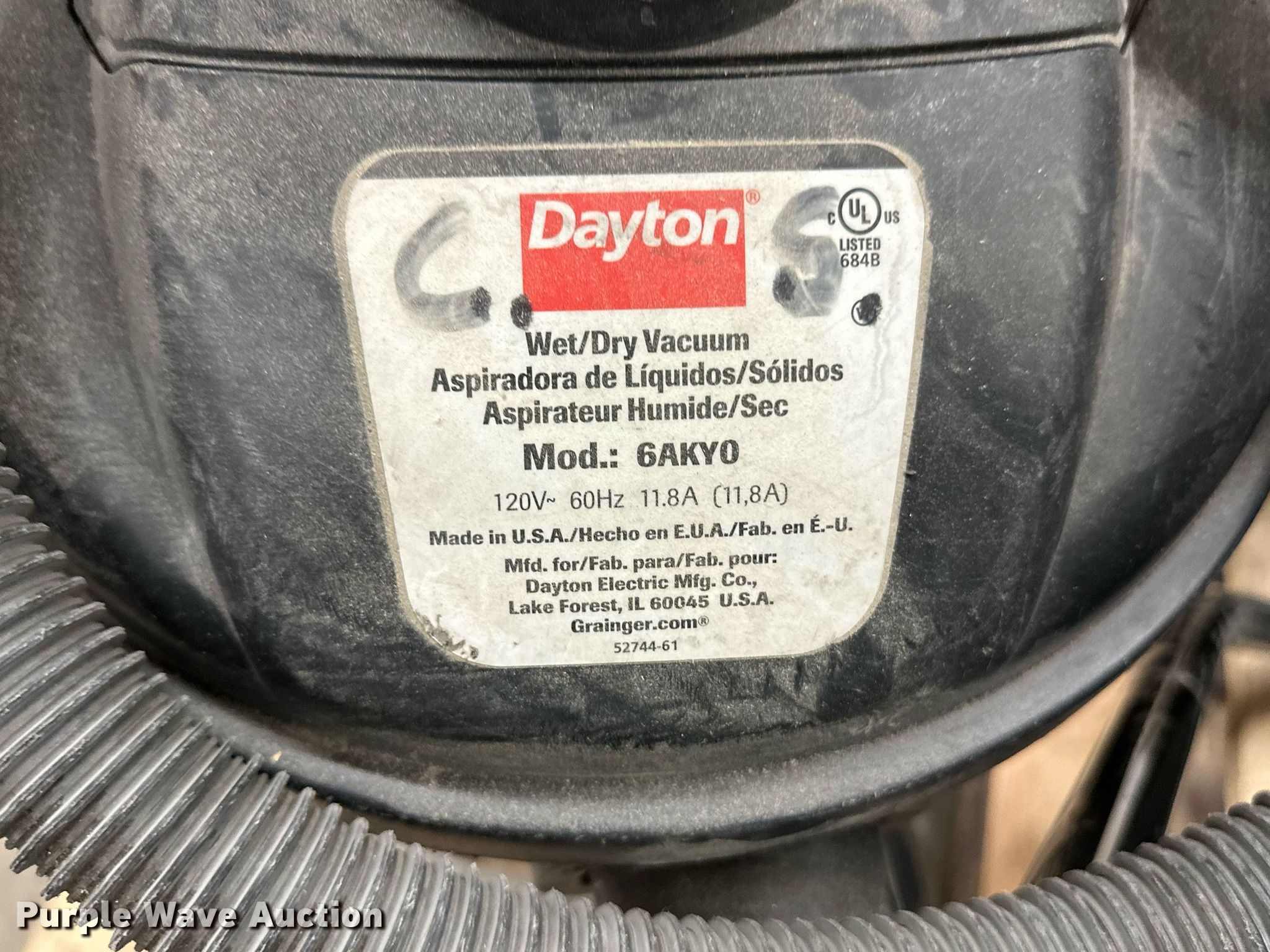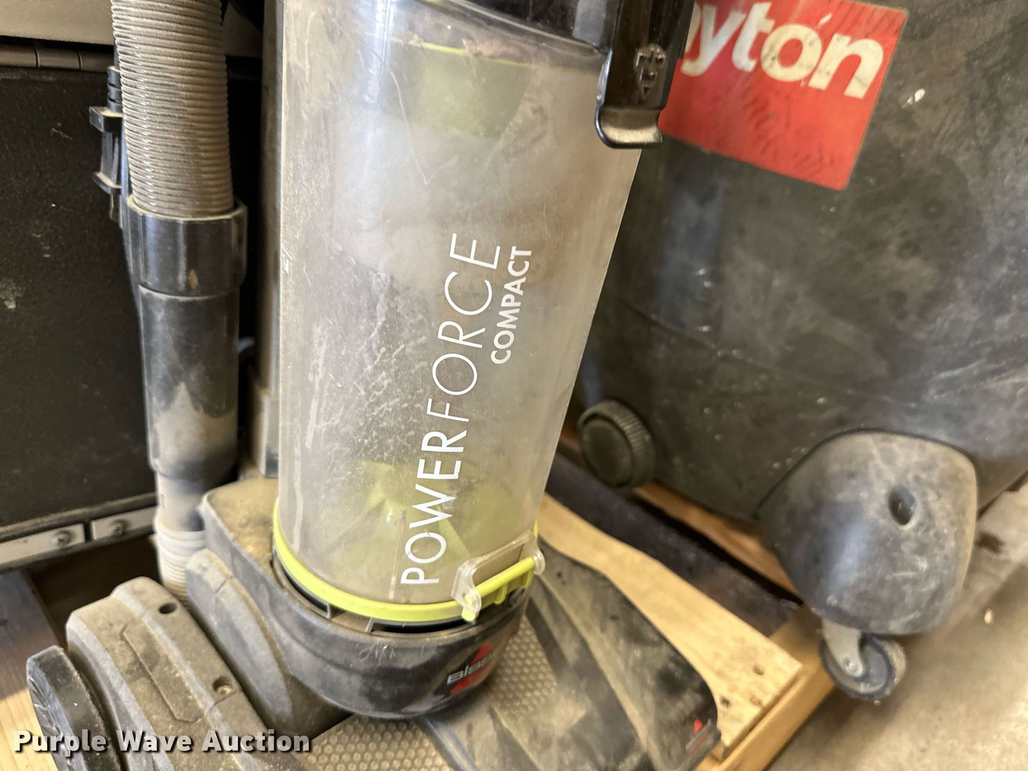 Purple Wave is selling a used Tools in Kansas. This item is a Floor cleaning equipment with the following: Minuteman 170 floor scrubber, Bissell vacuum, (2) shop vacuums, Dayton 1UG91B, Dayton 6AKY0