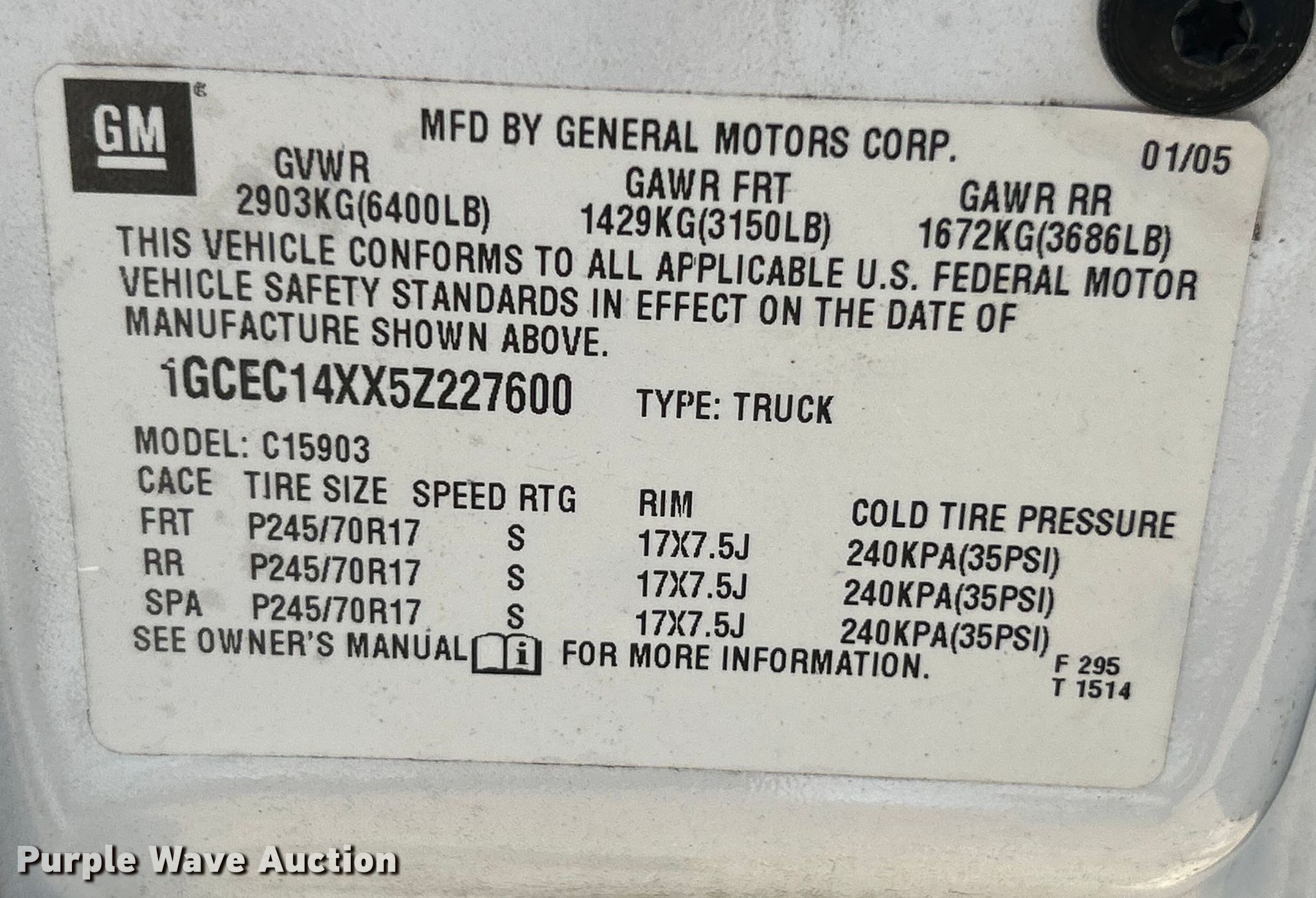 Purple Wave is selling a used 1/2 Ton Pickup or Van in Missouri. This item is a 2005 Chevrolet Silverado 1500 pickup truck with the following: Miles: 118,768 on odometer, VIN: 1GCEC14XX5Z227600, Unit #: B5853