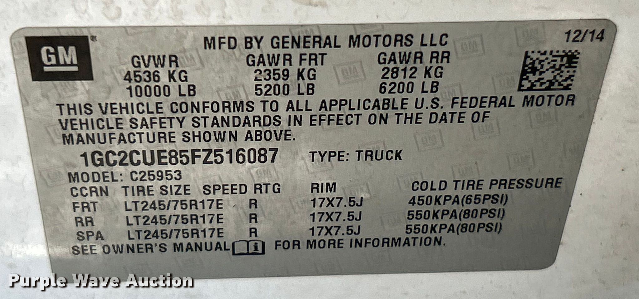 Purple Wave is selling a used 3/4 or 1 Ton Pickup or Van in Missouri. This item is a 2015 Chevrolet Silverado 2500HD Double Cab utility bed pickup truck with the following: Miles: 371,951 on odometer, Hours: 14,170 on meter, VIN: 1GC2CUE85FZ516087, Unit #: 9183