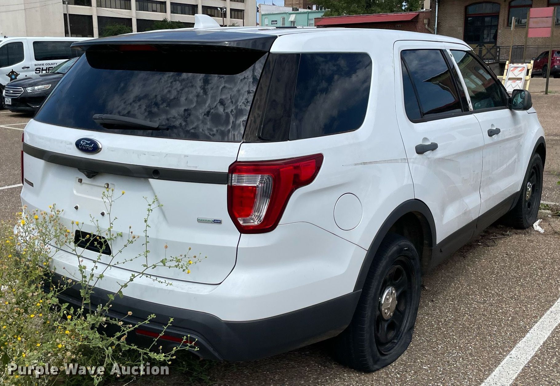 2017 Ford Explorer Police Interceptor SUV. Miles: Unknown, VIN: 1FM5K8AR7HGA94808. Engine Displacement: 3.7L V6 DOHC, Cylinders: 6, Fuel type: Gas. Transmission Automatic, All wheel drive. Interior AC, Heat, Seat: Power driver, Power windows, Power locks, Cruise control, Backup camera. Tires Size: 245/55R18. Notes Windshield chipped or cracked, Center console missing, Seats removed, but included, Dead battery, Non-operational unit. Texas title. Mileage has not been verified. Odometer discrepancy will be marked on the title. Bowie County Sheriff. 100 N State Line Box 18. Texarkana, TX 75501