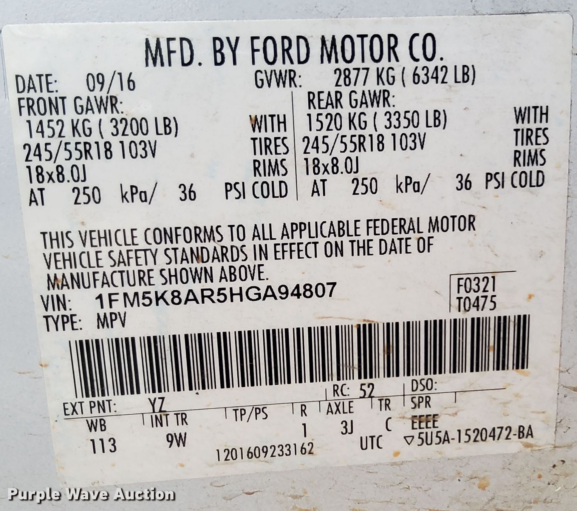 2017 Ford Explorer Police Interceptor SUV. Miles: 157,827 on odometer, VIN: 1FM5K8AR5HGA94807. Engine Displacement: 3.7L V6 DOHC, Cylinders: 6, Fuel type: Gas. Transmission Automatic, All wheel drive. Interior AC, Heat, Seat: Power driver, Power windows, Power locks, Cruise control, Backup camera. Tires Size: 245/55R18. Notes Windshield chipped or cracked, Center console missing, Seats removed, but included, Dead battery. Texas title. Bowie County Sheriff. 100 N State Line Box 18. Texarkana, TX 75501