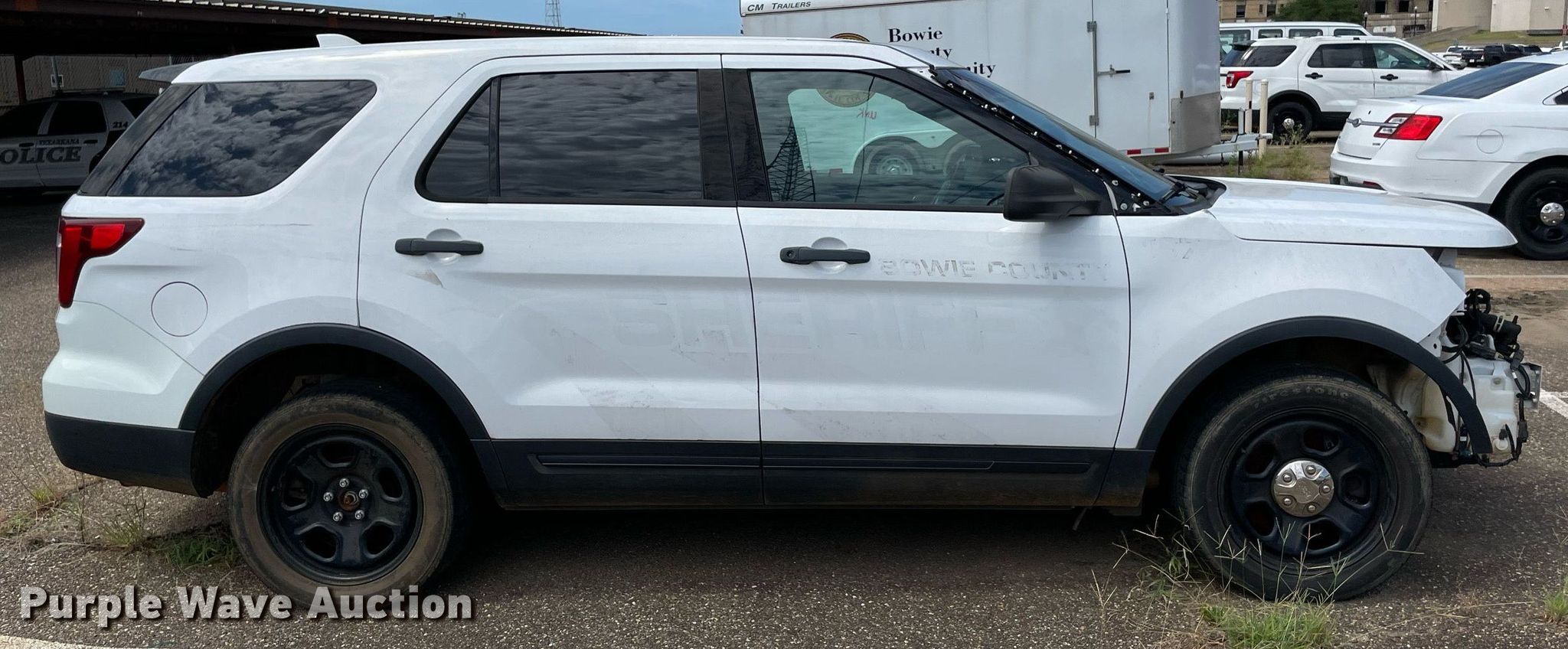 2017 Ford Explorer Police Interceptor SUV. Miles: Unknown, VIN: 1FM5K8AR2HGA94800. Engine Displacement: 3.7L V6 DOHC, Cylinders: 6, Fuel type: Gas. Transmission Automatic, All wheel drive. Interior AC, Heat, Seat: Power driver, Power windows, Power locks, Cruise control, Backup camera. Tires Size: 245/55R18. Notes Dead battery, Center console missing, Rear seats removed, Collision damage , Non-operational unit. Texas title. Mileage has not been verified. Odometer discrepancy will be marked on the title. Bowie County Sheriff. 100 N State Line Box 18. Texarkana, TX 75501