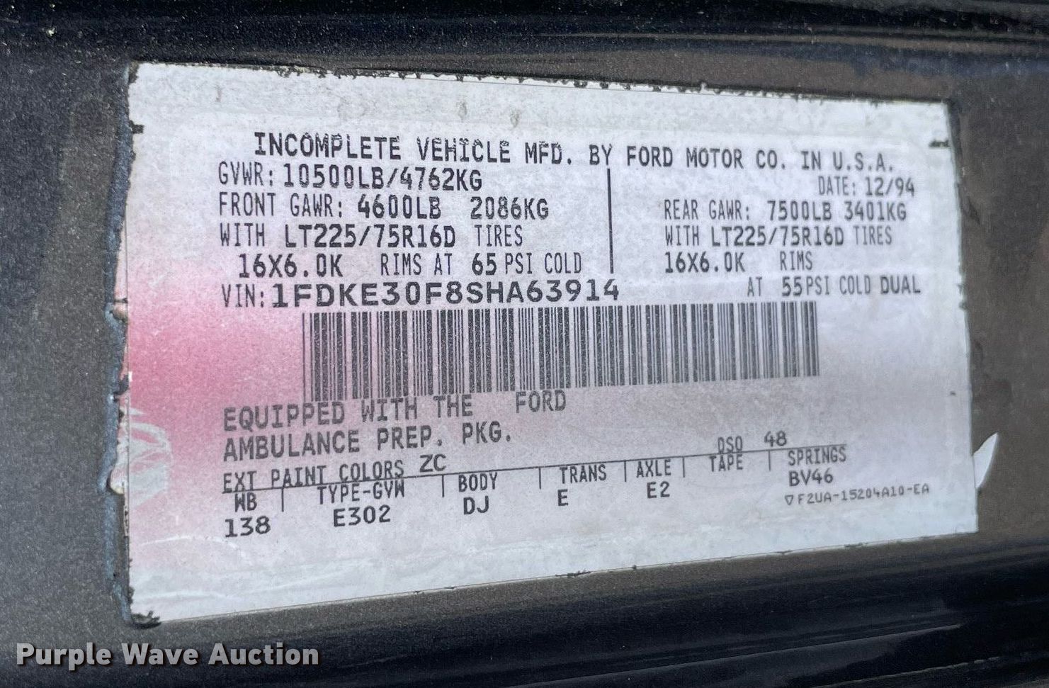 Purple Wave is selling a used Fire Truck or Emergency Vehicle in Texas. This item is a 1995 Ford Econoline ambulance with the following: Miles: Unknown, VIN: 1FDKE30F8SHA63914