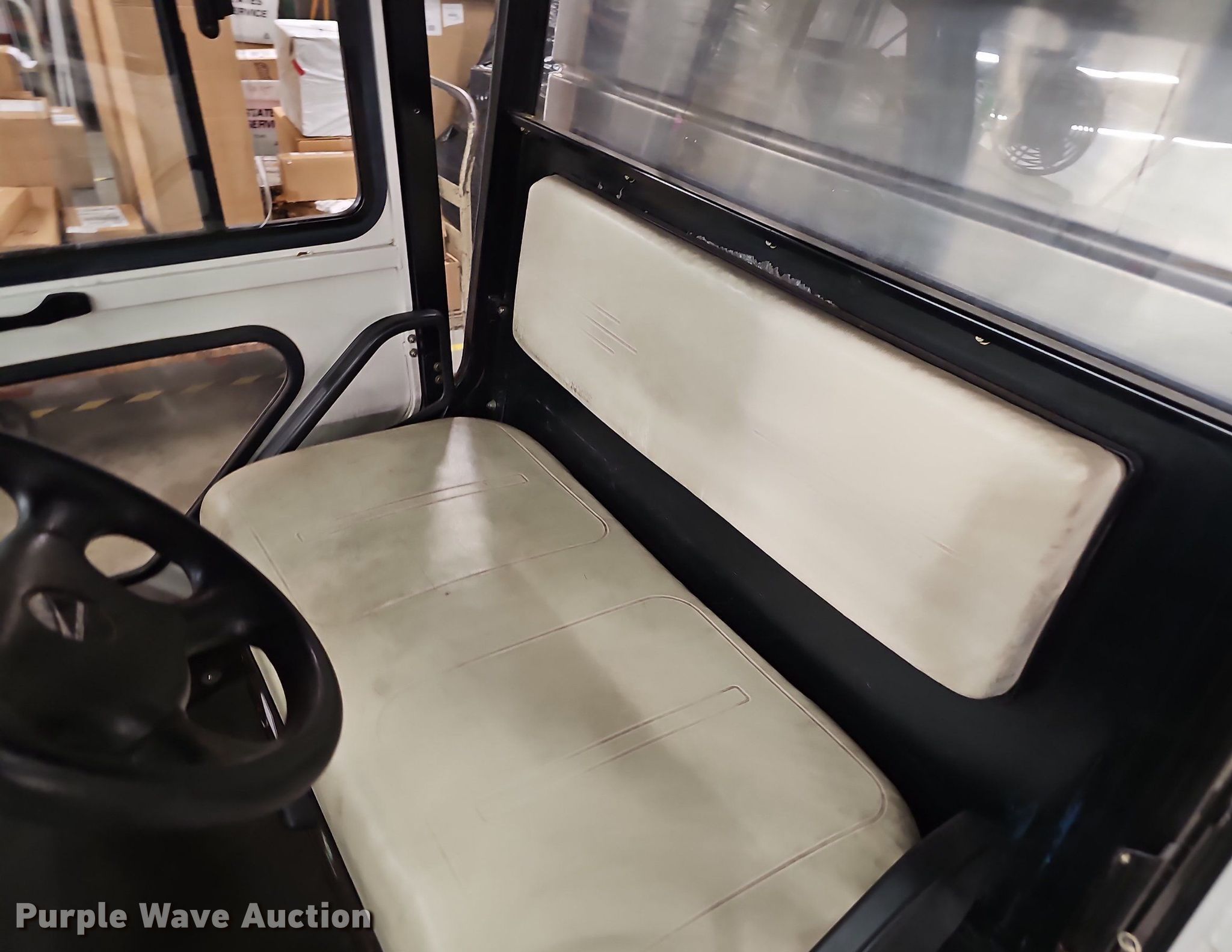 Cushman Club Car golf cart. Serial: 2723501, Unit #: 2. Engine Kawasaki, Cylinders: 1, Fuel type: Gas. Transmission CVT. Operators station Enclosed cab. Features Grill guard, Box bed 48" L x 51" W, Dump bed type: Manual. Tires Size: 5.70-8. Missouri State University. 945 E Grand St. Springfield, MO 65897