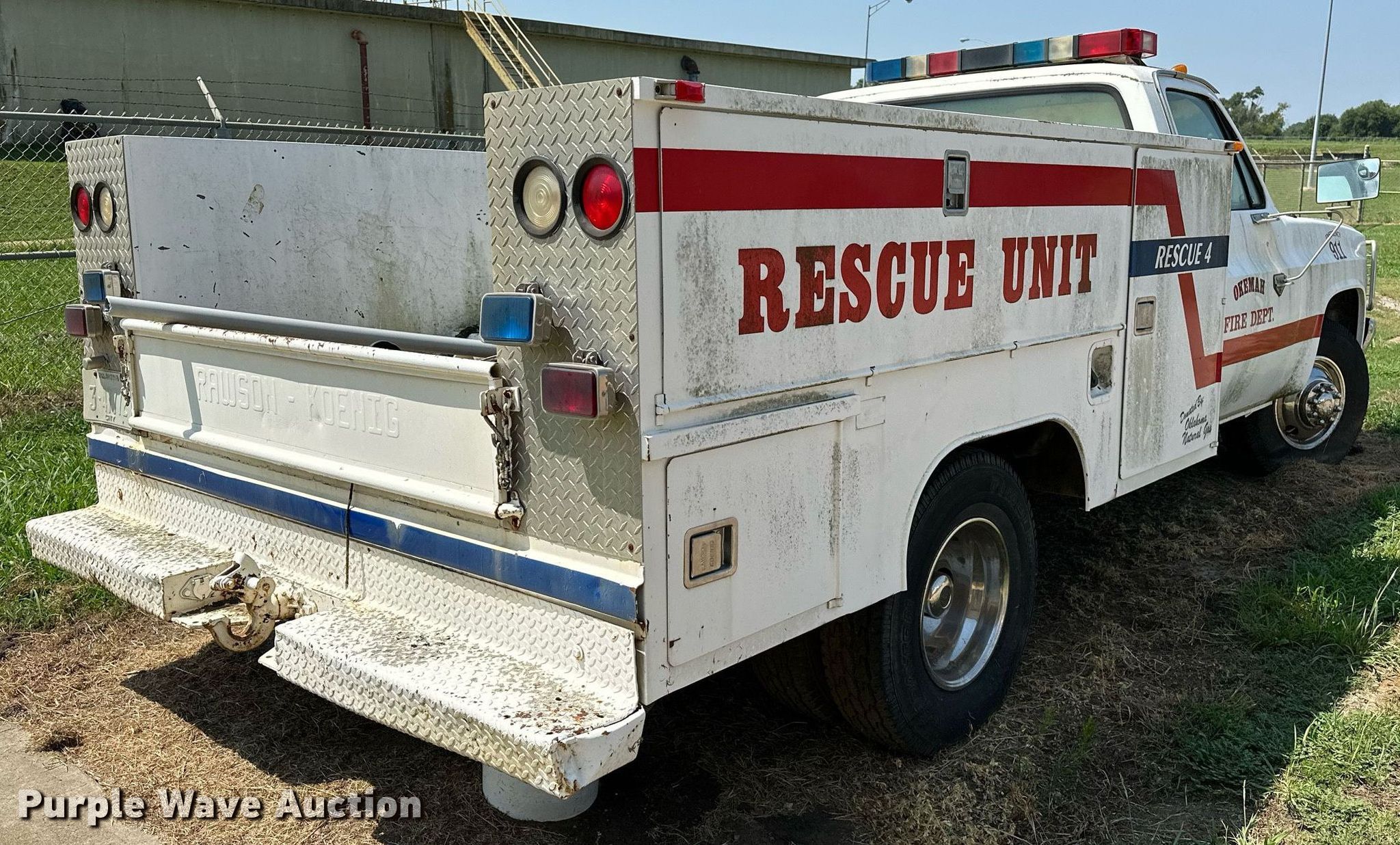 1989 Chevrolet R3500 rescue vehicle has sold in Okemah, Oklahoma for $3630. Item OC9160 sold on September 26th, 2023.