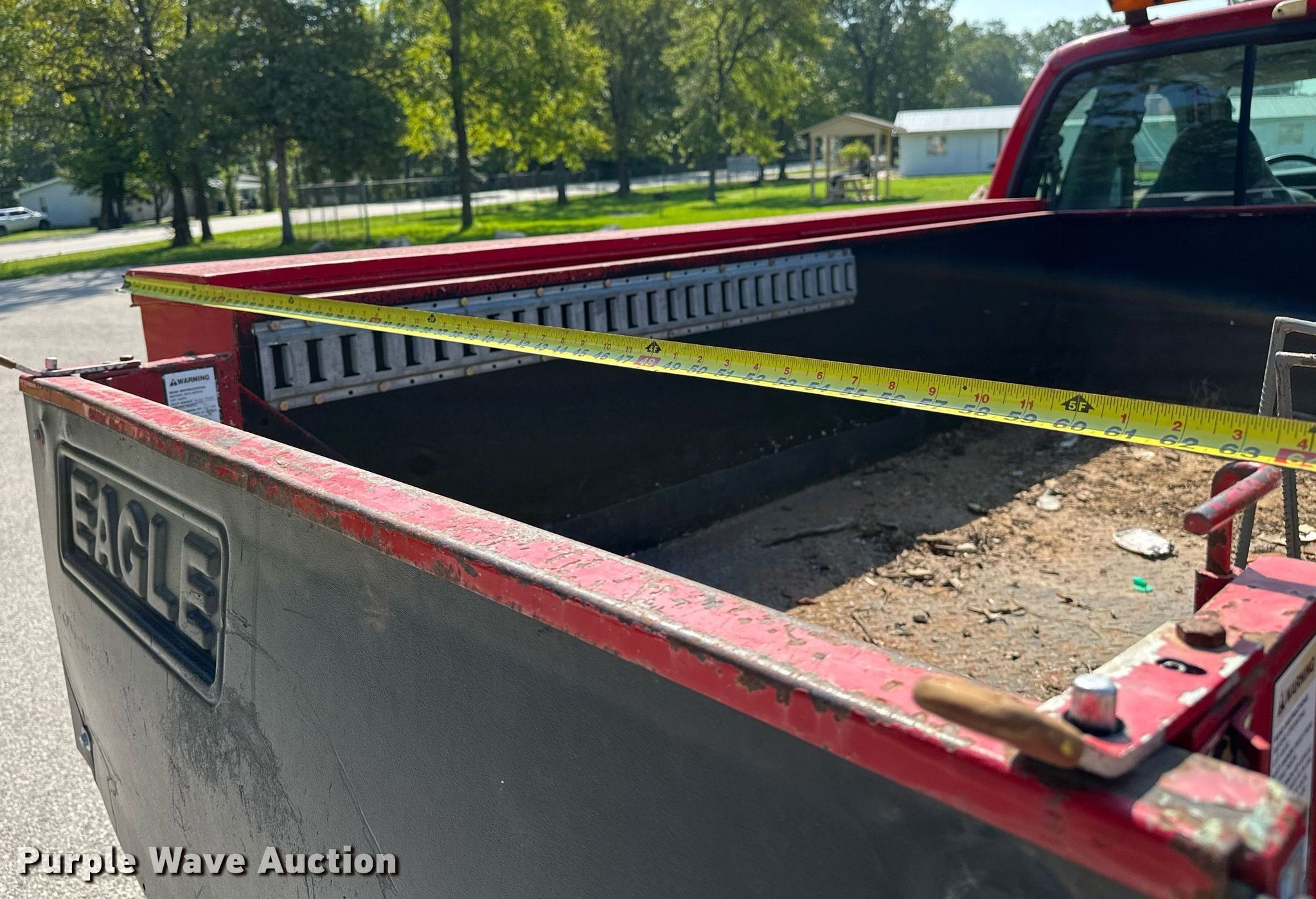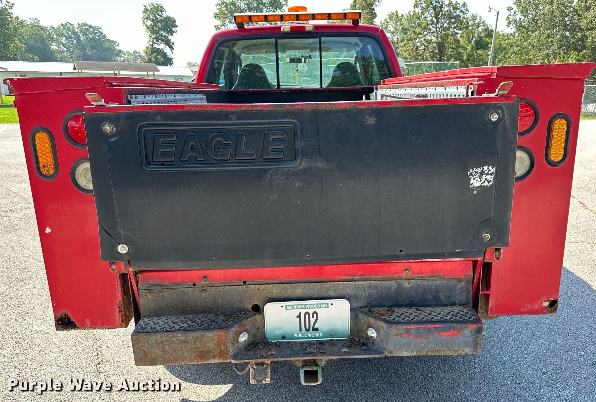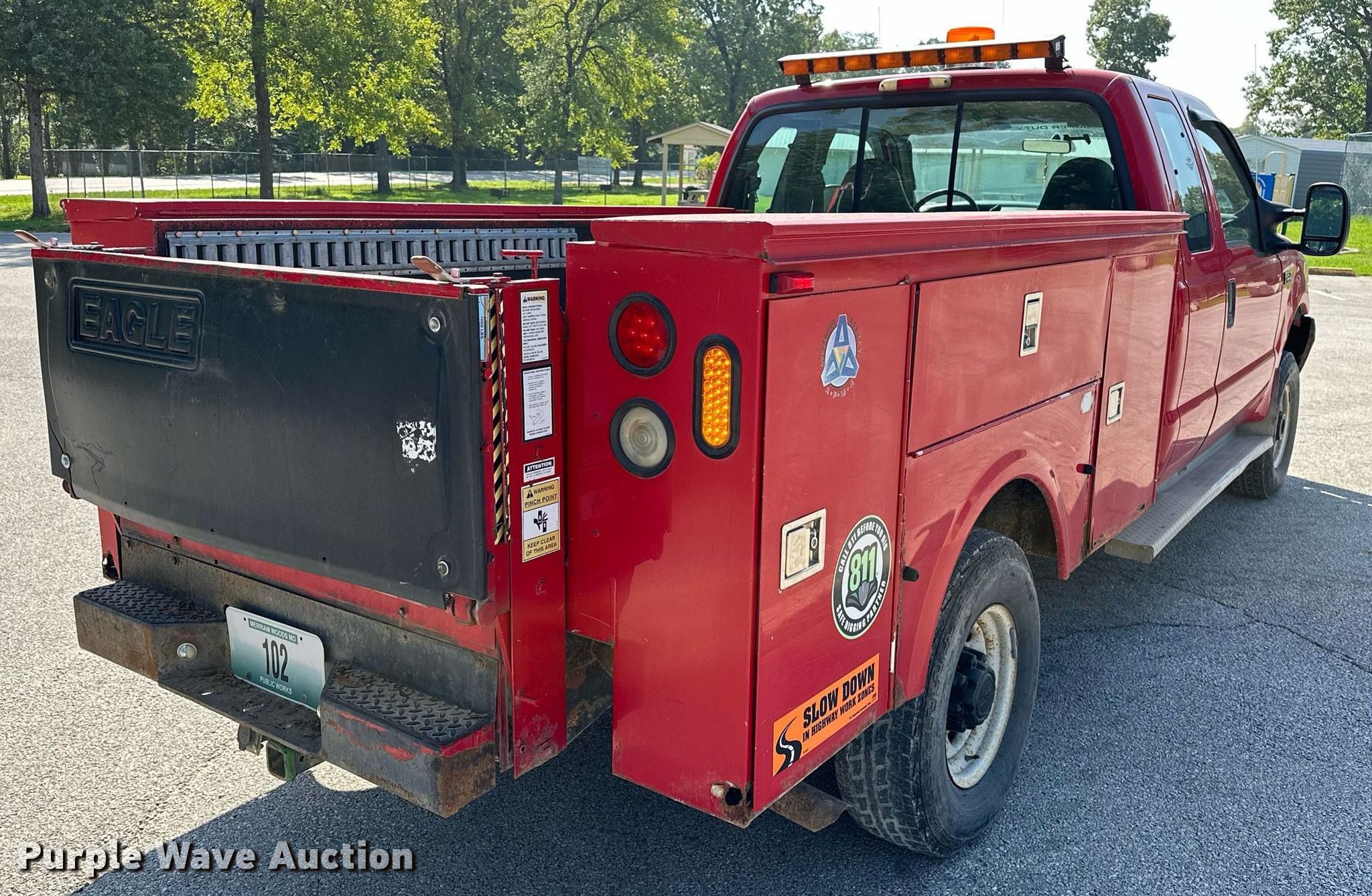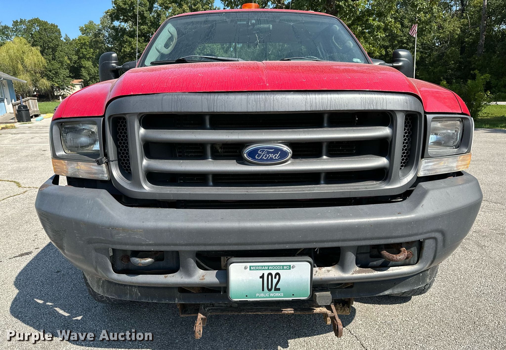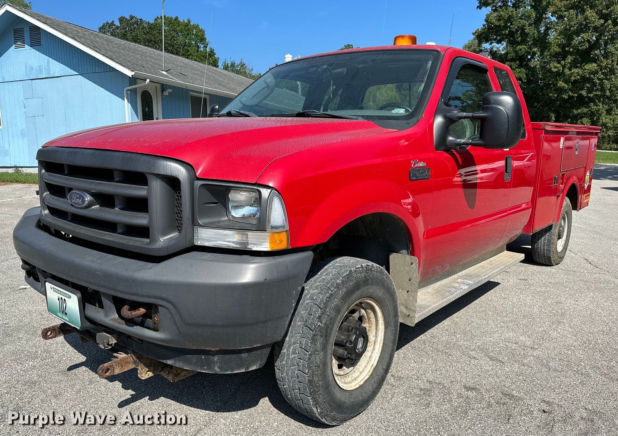 2004 Ford F250 Super Duty XL SuperCab utility bed pickup truck. Miles: 113,469 on odometer, VIN: 1FDNX21L64ED81587. Engine Displacement: 5.4L V8 SOHC, Cylinders: 8, Fuel type: Gas. Transmission Automatic, Four wheel drive. Interior AC, Heat. Features Utility bed DuPont Service body, 8' x 80" W, End gate lift Capacity: 1,000 lbs. Tires Size: 235/85R16. Notes Dash warning indicator: ABS, Rust damage. Missouri title. Title distribution may be delayed up to 14 days from verification of funds. City of Merriam Woods. 4417 State Highway 176. Merriam Woods, MO 65740
