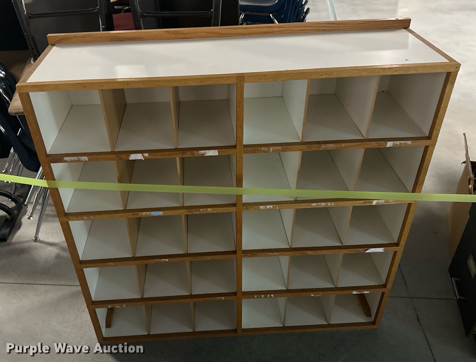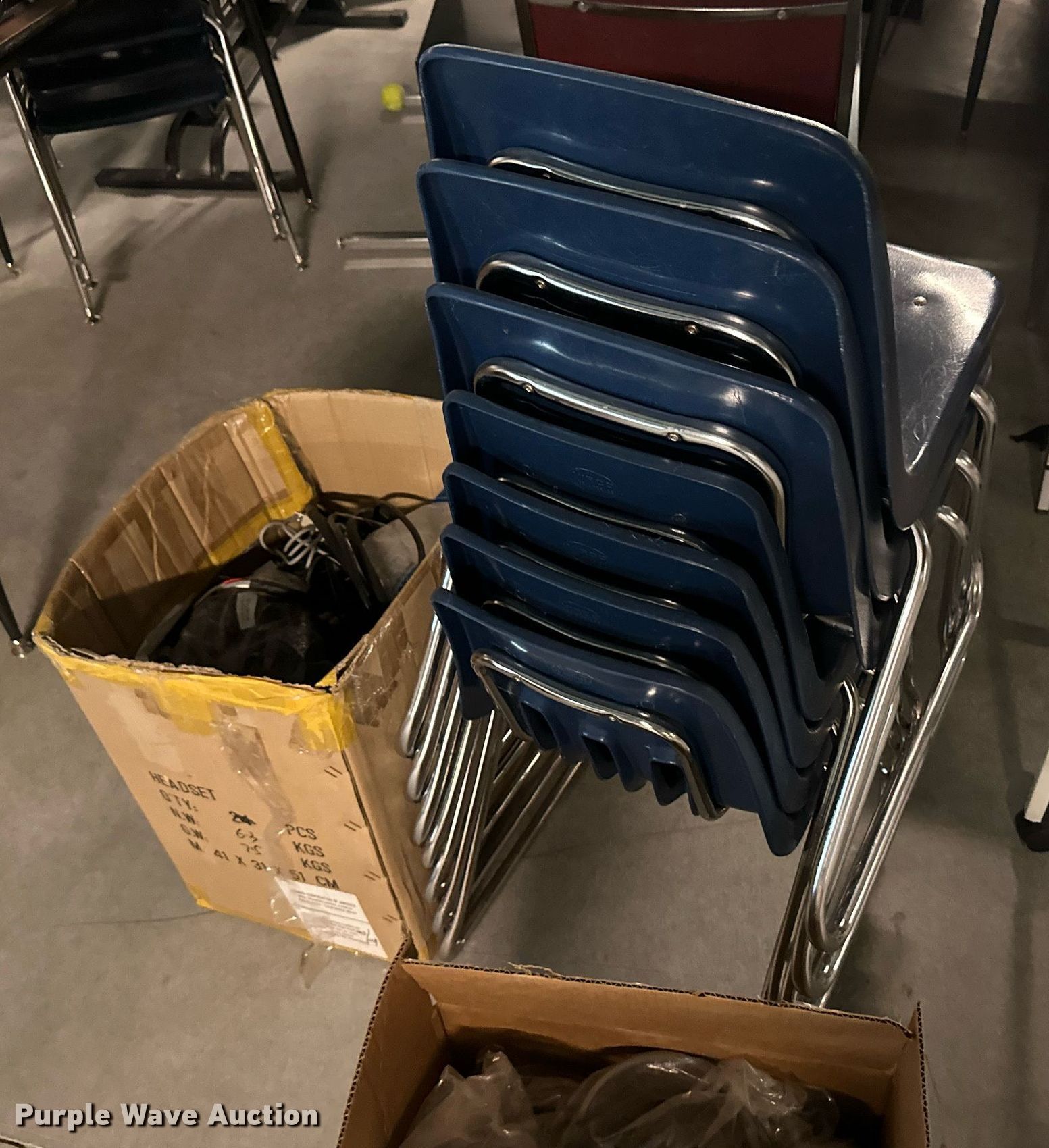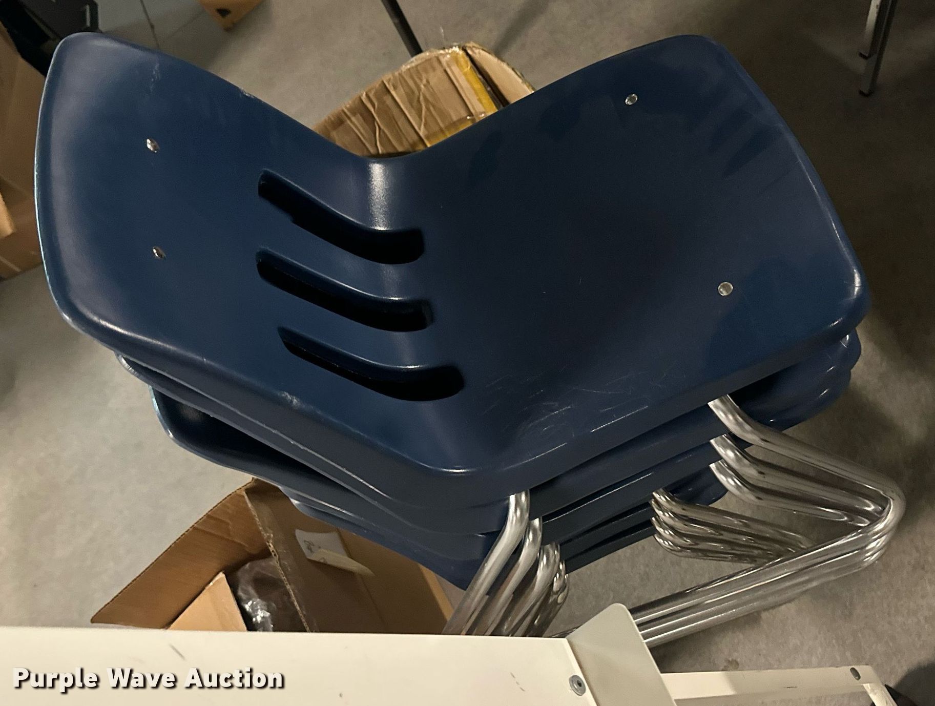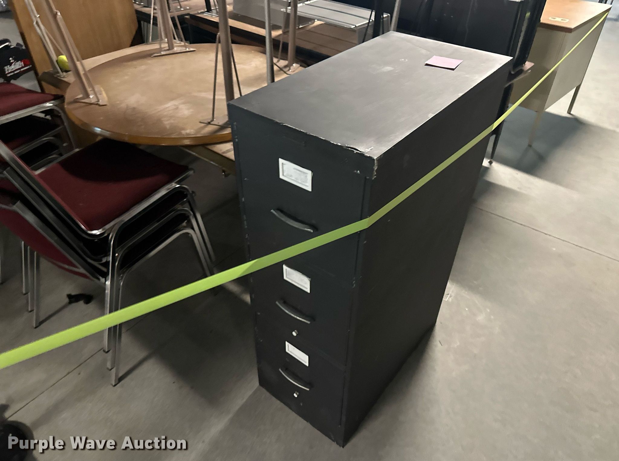 Purple Wave is selling a used Furniture in Kansas. This item is a Furniture with the following: (17) desks, (6) filing cabinets, (16) chairs, Easel, Health Rider stationary bike