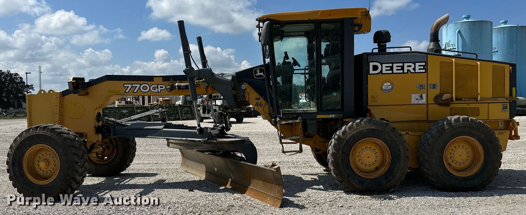 Purple Wave is selling a used Motor Grader in Arkansas. This item is a 2012 John Deere 770 GP motor grader with the following: Hours: 7,881 on meter, Serial: 1DW770GPVBE640644, Unit #: 46