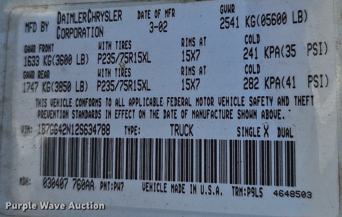 Purple Wave is selling a used Compact Pickup or Van in Missouri. This item is a 2002 Dodge Dakota SLT Club Cab pickup truck with the following: Miles: 123,244 on odometer, VIN: 1B7GG42N12S634788