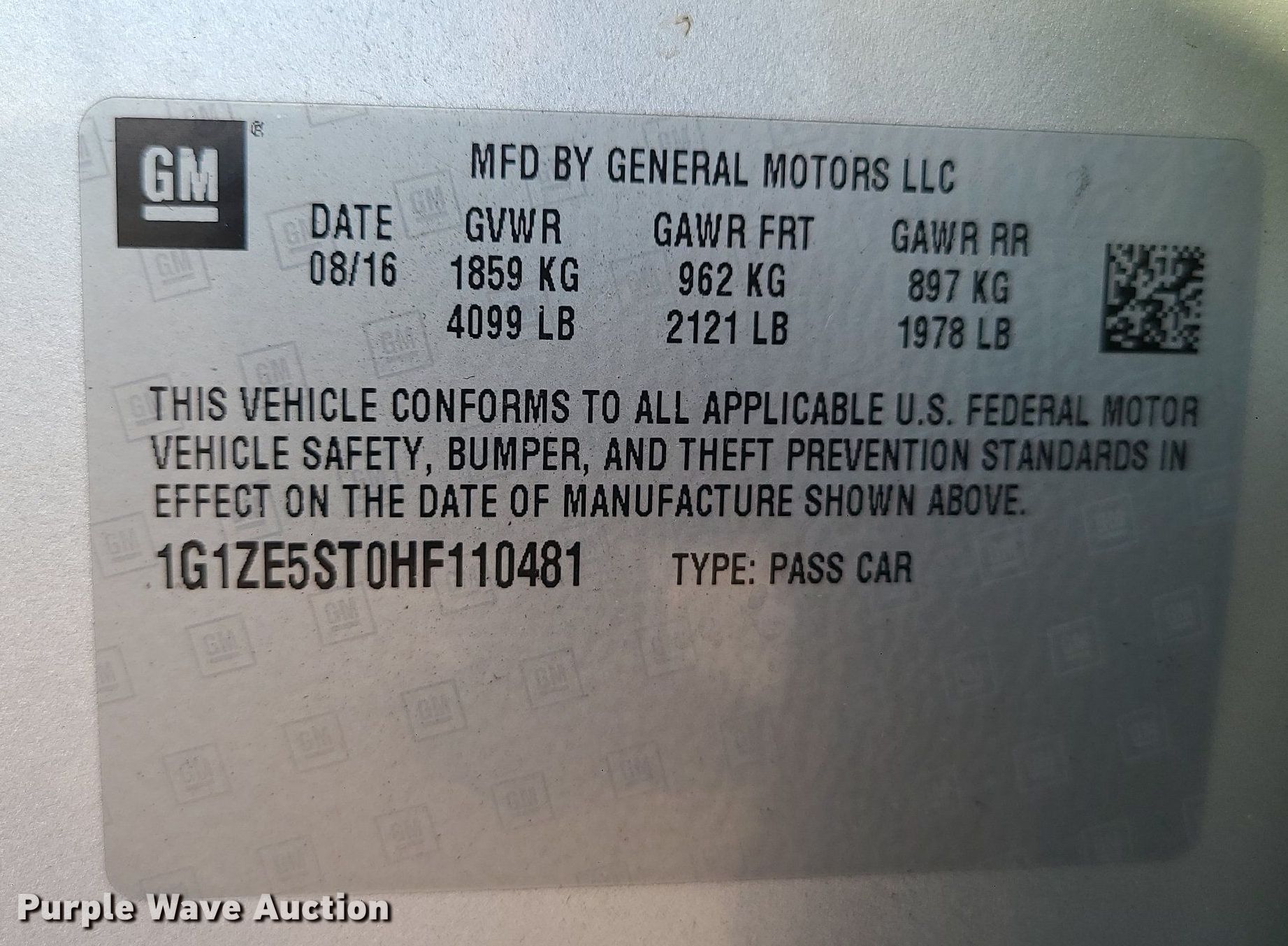 Purple Wave is selling a used Passenger Vehicle in Missouri. This item is a 2017 Chevrolet Malibu LT with the following: Miles: 221,332 on odometer, VIN: 1G1ZE5ST0HF110481