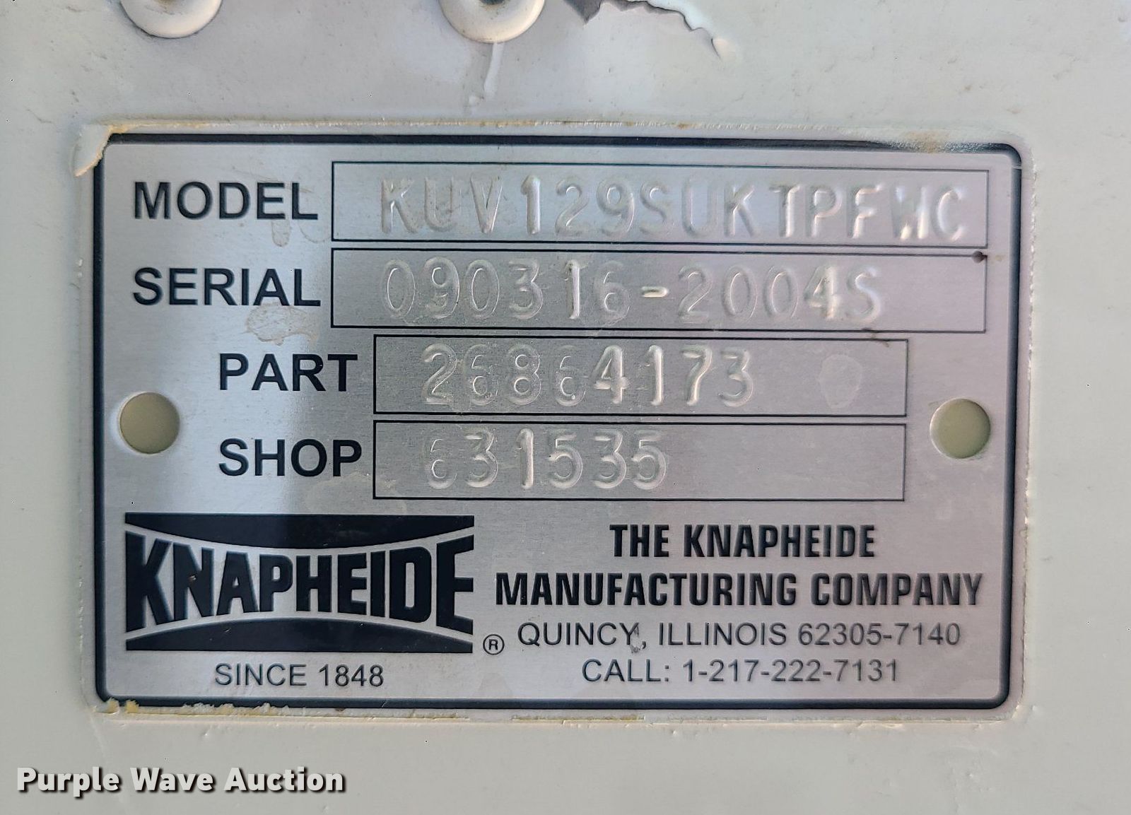 Purple Wave is selling a used Automotive Parts or Acces. in Missouri. This item is a Knapheide KUV129SUKTPFWC utility bed with the following: Serial: 090316-2004s, 130" L x 84" W