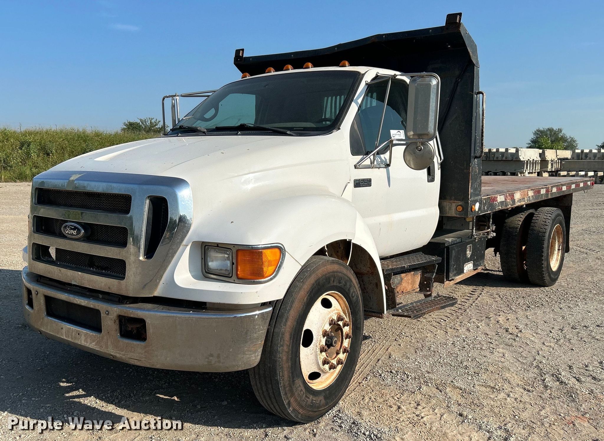 Purple Wave is selling a used Flat Bed Truck in Oklahoma. This item is a 2005 Ford F650 Super Duty dump flatbed truck with the following: Miles: 120,000 on odometer, VIN: 3FRNF65E75V215436, Unit #: 06.48