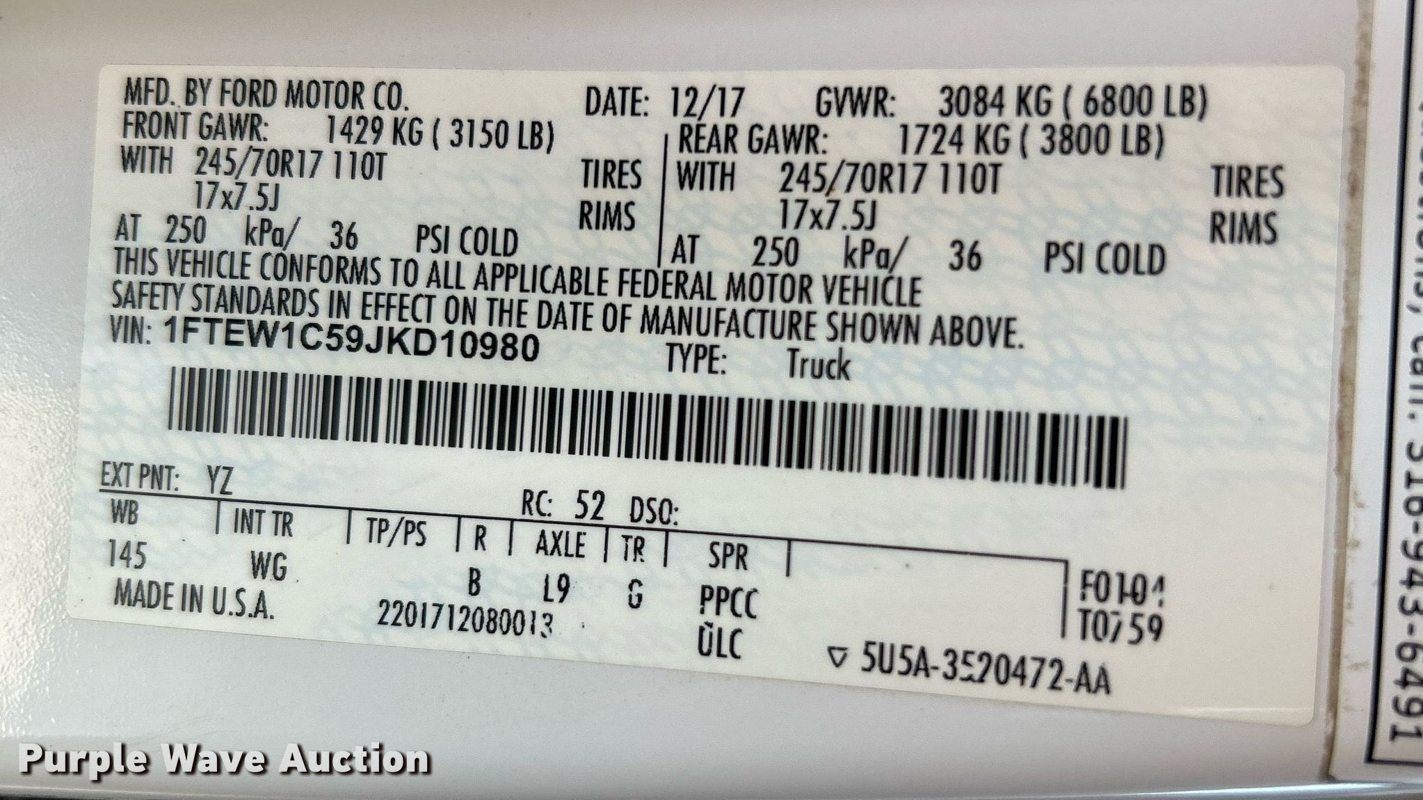 Purple Wave is selling a used 1/2 Ton Pickup or Van in Oklahoma. This item is a 2018 Ford F150 XL SuperCrew pickup truck with the following: Miles: 235,624 on odometer, VIN: 1FTEW1C59JKD10980, Unit #: 02.684