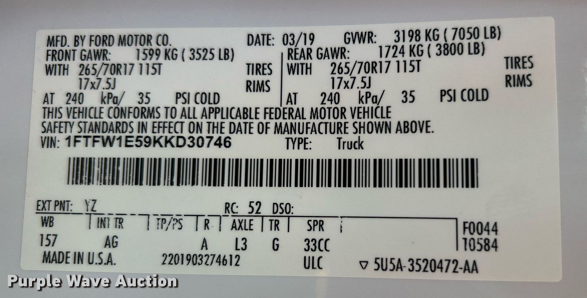 Purple Wave is selling a used 1/2 Ton Pickup or Van in Oklahoma. This item is a 2019 Ford F150 XL SuperCrew pickup truck with the following: Miles: 167,736 on odometer, VIN: 1FTFW1E59KKD30746