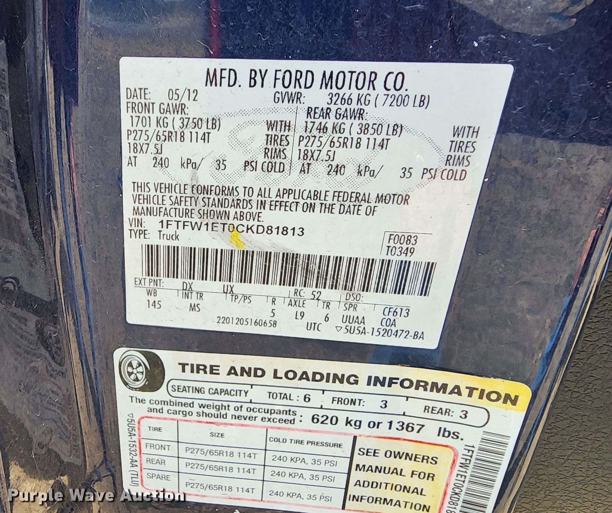 Purple Wave is selling a used 1/2 Ton Pickup or Van in Texas. This item is a 2012 Ford F150 SuperCrew pickup truck with the following: Miles: 217,309 on odometer, VIN: 1FTFW1ET0CKD81813