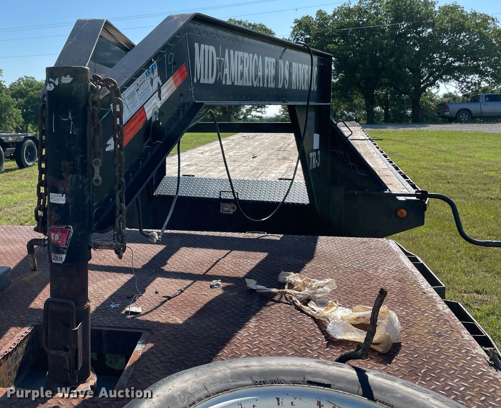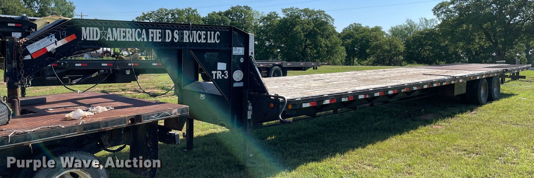 2011 PJ Trailer Gooseneck equipment trailer. VIN: 4P5FY4021B1148883. Dimensions Overall: 49' 6" L x 102" W, Deck: 41' L x 102" W, Hydratail length: 10' 3". Features Deck type: Steel, Wood. Chassis Hitch: Gooseneck, Landing gear: Dual, Suspension: Spring, Brakes: Electric, Axles: Tandem. Tires Steel wheels, Size: 235/85R16. Notes Pickup truck not included. Transfer of ownership documentation will be a bill of sale which will be assigned and distributed by the seller. Seller is an Oklahoma licensed motor vehicle dealer. Title will be assigned and distributed by the dealer. Please contact the seller for distribution questions. Overbrook, OK 73453
