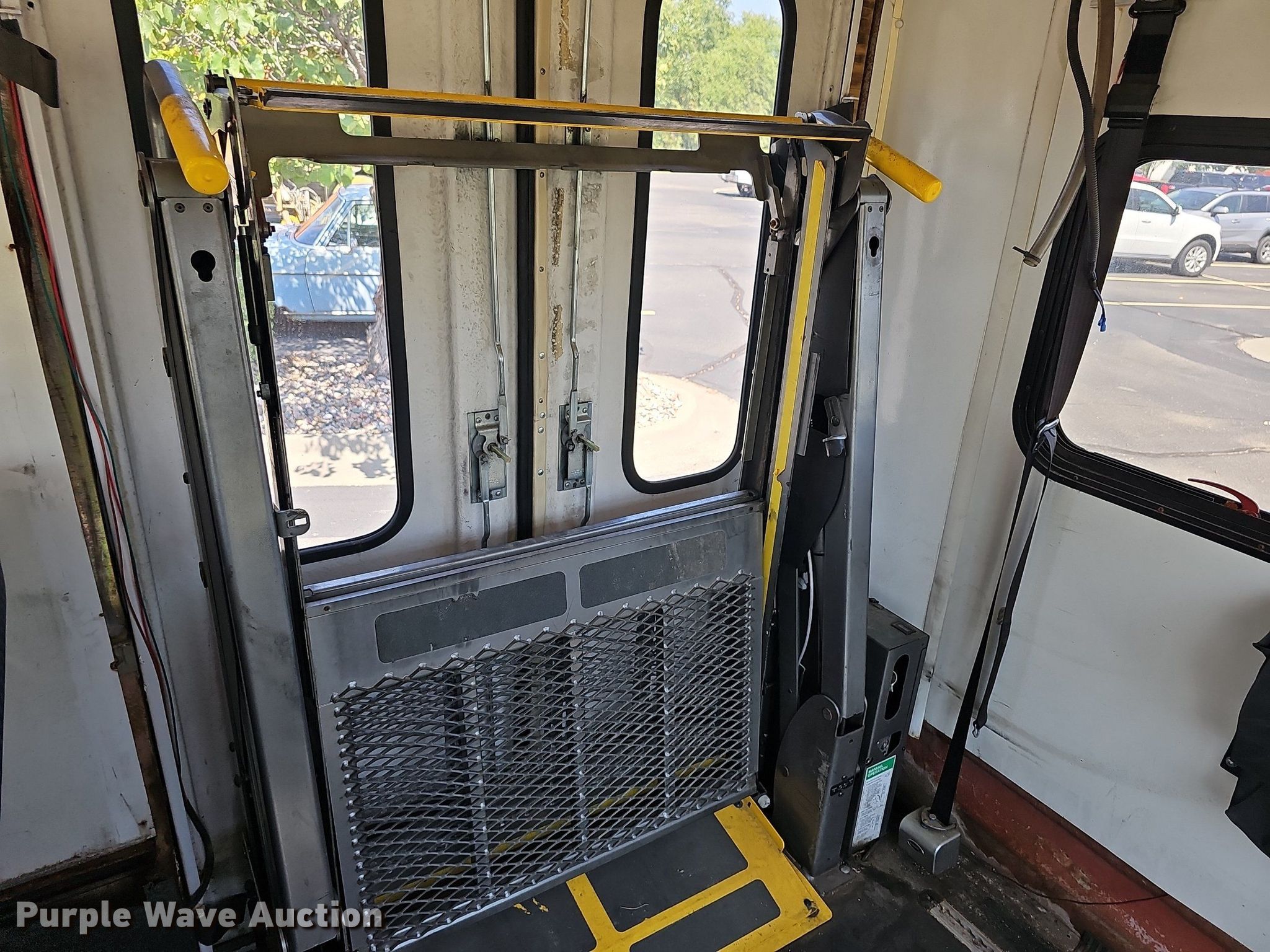 2008 Ford E450 Super Duty shuttle bus. Miles: 176,654 on odometer, VIN: 1FD4E45S48DB46096. Engine Displacement: 6.8L V10 SOHC, Cylinders: 10, Fuel type: Gas. Transmission Automatic. Chassis Axles: Single, Suspension: Spring, Brakes: Hydraulic, GVWR: 14,500 lbs, Wheelbase: 158". Interior AC, Heat, Cruise control, Electric passenger sliding door, Passengers: 13, Wheelchair lift. Tires Size: 225/75R16, Brand: Firestone. Kansas title. Title distribution may be delayed up to 14 days from verification of funds. 825 Levee Drive. Manhattan, KS 66502