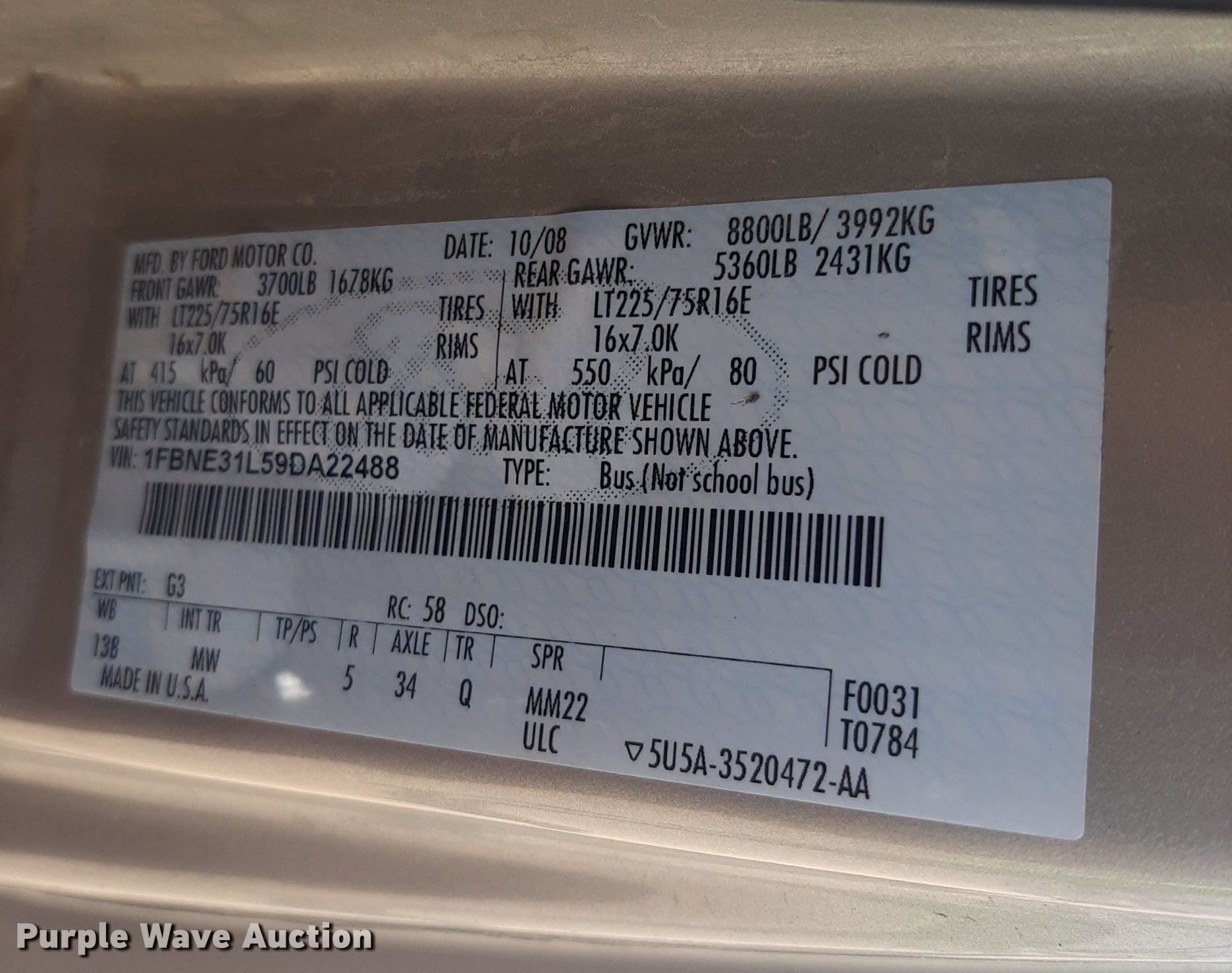 Purple Wave is selling a used Passenger Vehicle in Kansas. This item is a 2009 Ford E350 van with the following: Miles: 293,520 on odometer, VIN: 1FBNE31L59DA22488