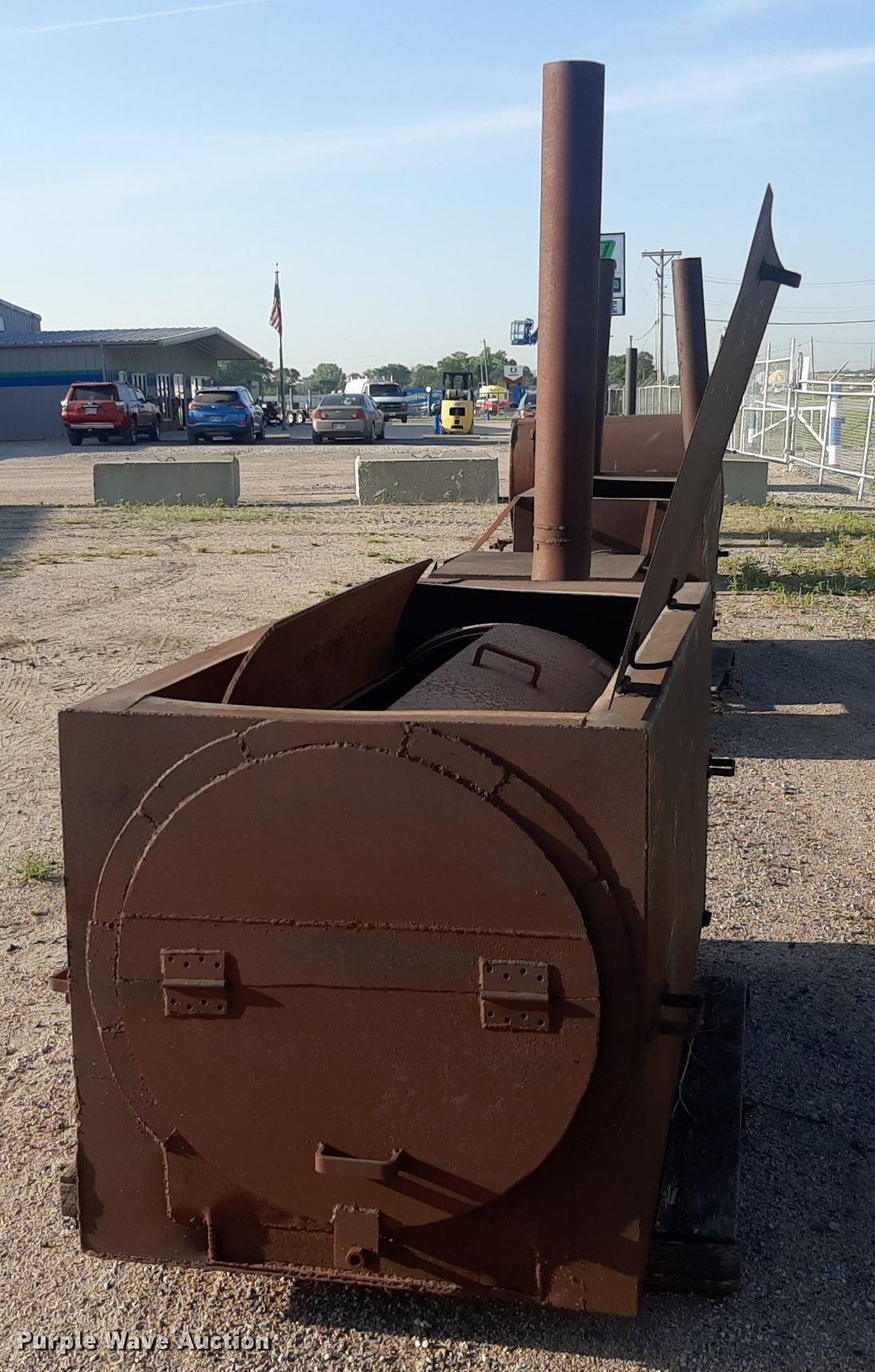 Purple Wave is selling a used Lawn and Garden in Kansas. This item is a Shop built smoker with the following: Overall dimensions: 93" x 94", Smoker box: 72" L x 36" W x 36" H