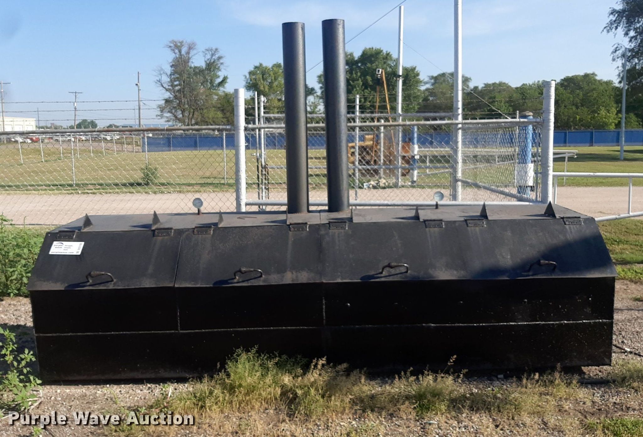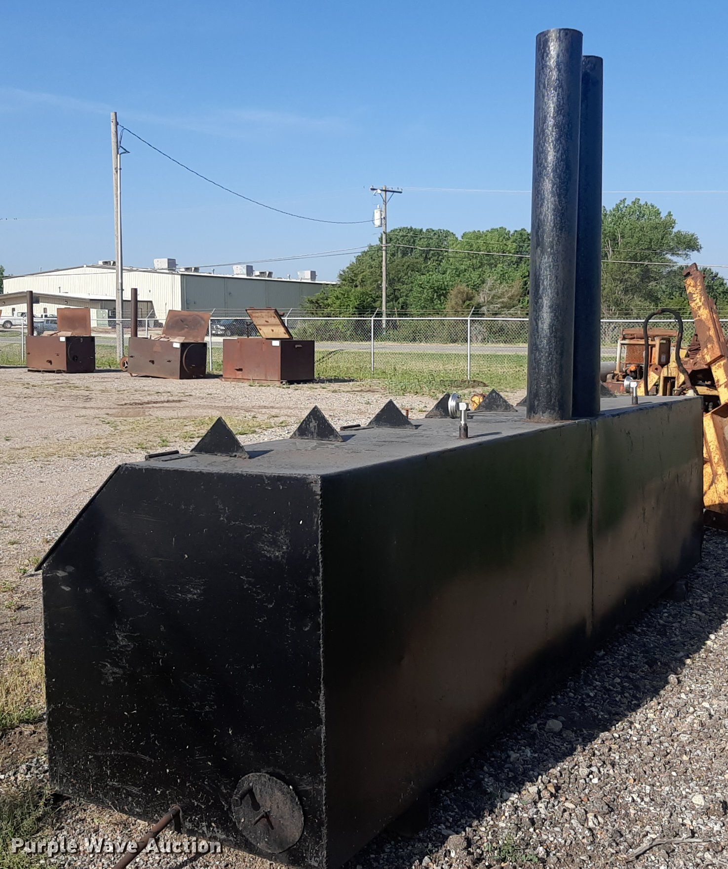 Purple Wave is selling a used Lawn and Garden in Kansas. This item is a Shop built smoker with the following: Overall height: 92", Dimensions: 12' L x 36" W x 36" H, (2) smoker boxes