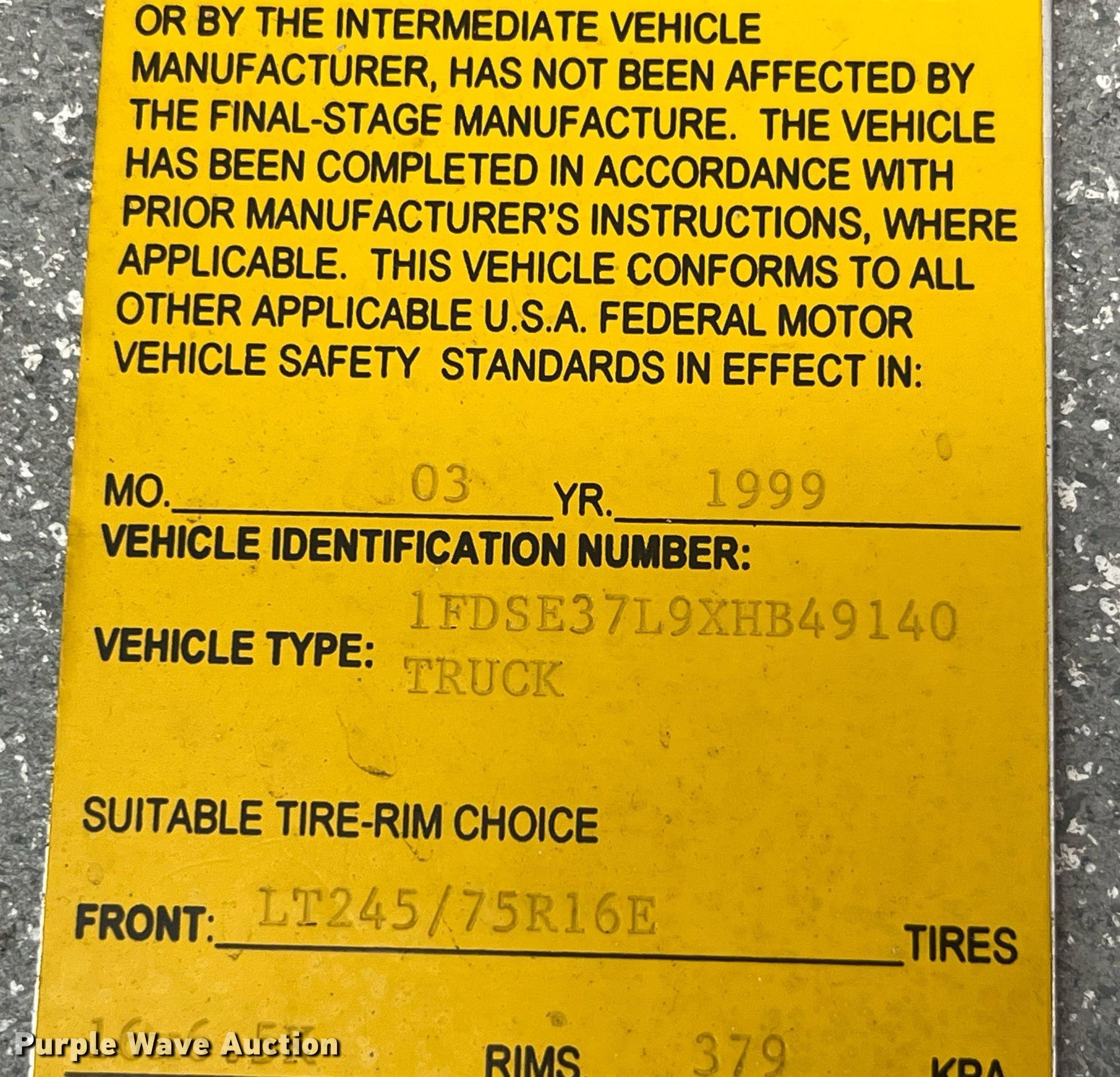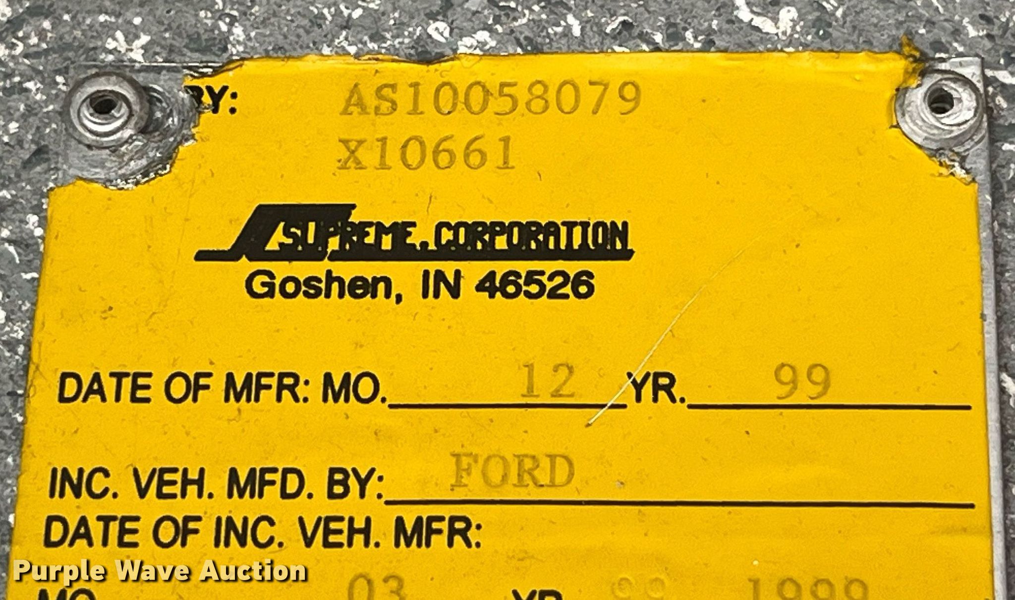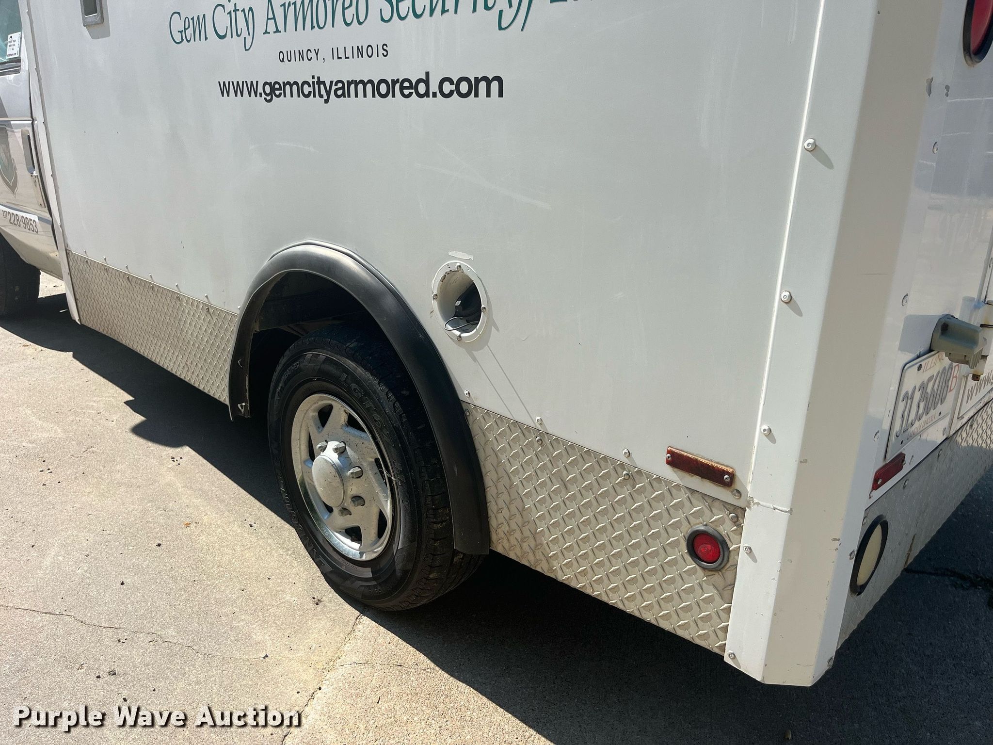 1999 Ford E350 armored van. Miles: 215,174 on odometer, VIN: 1FDSE37L9XHB49140. Engine Displacement: 5.4L V8 SOHC, Cylinders: 8, Fuel type: Gas. Transmission Automatic. Interior AC, Heat, Missing window crank handles.. Features Supreme Corp armored body 116" L x 74" W x 57.5" H. Tires Size: 245/75R16. Notes Dash warning indicator: ABS, Airbag, Service Engine Soon, Battery, AC issues, needs recharged. Illinois title. Title distribution may be delayed up to 14 days from verification of funds. Gem City Armored Security. 1239 Gardner Expressway. Quincy, IL 62301