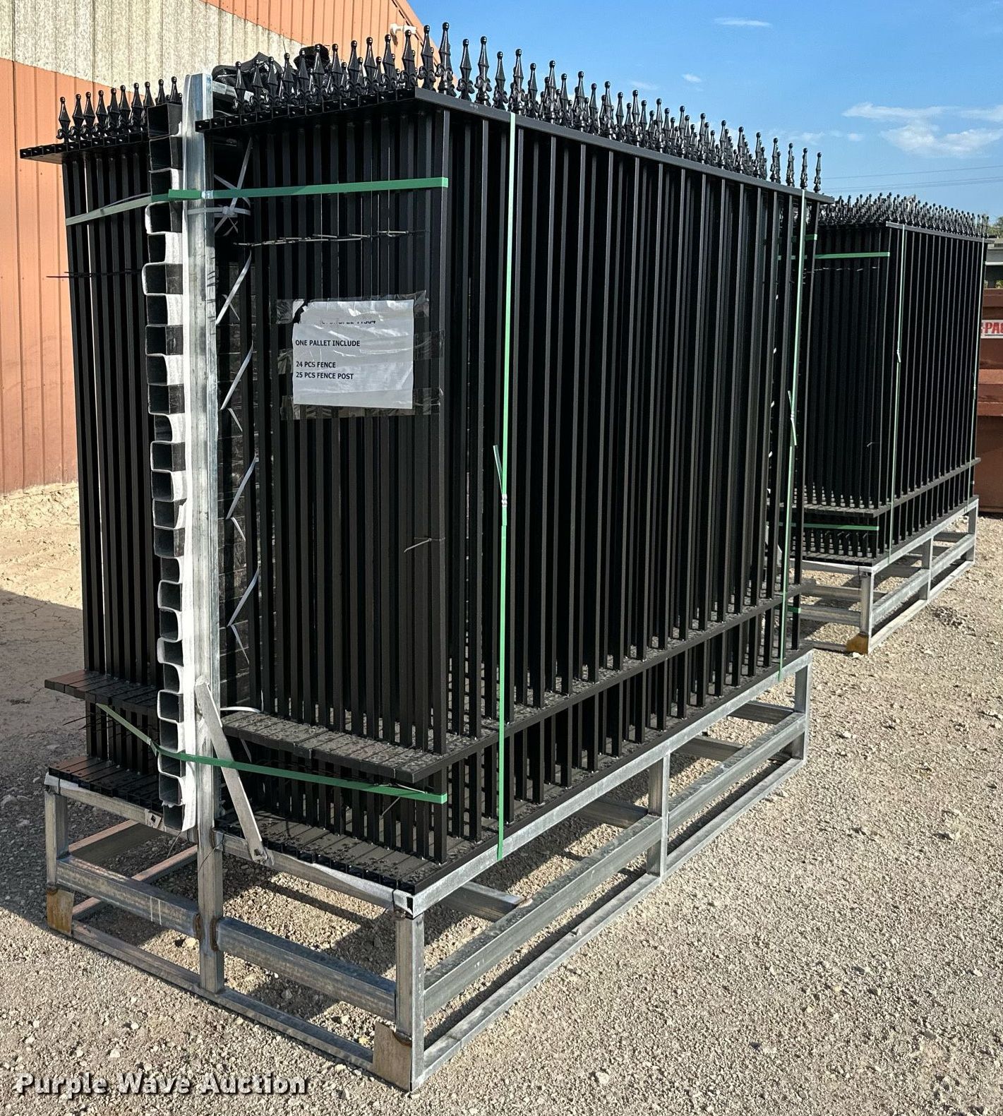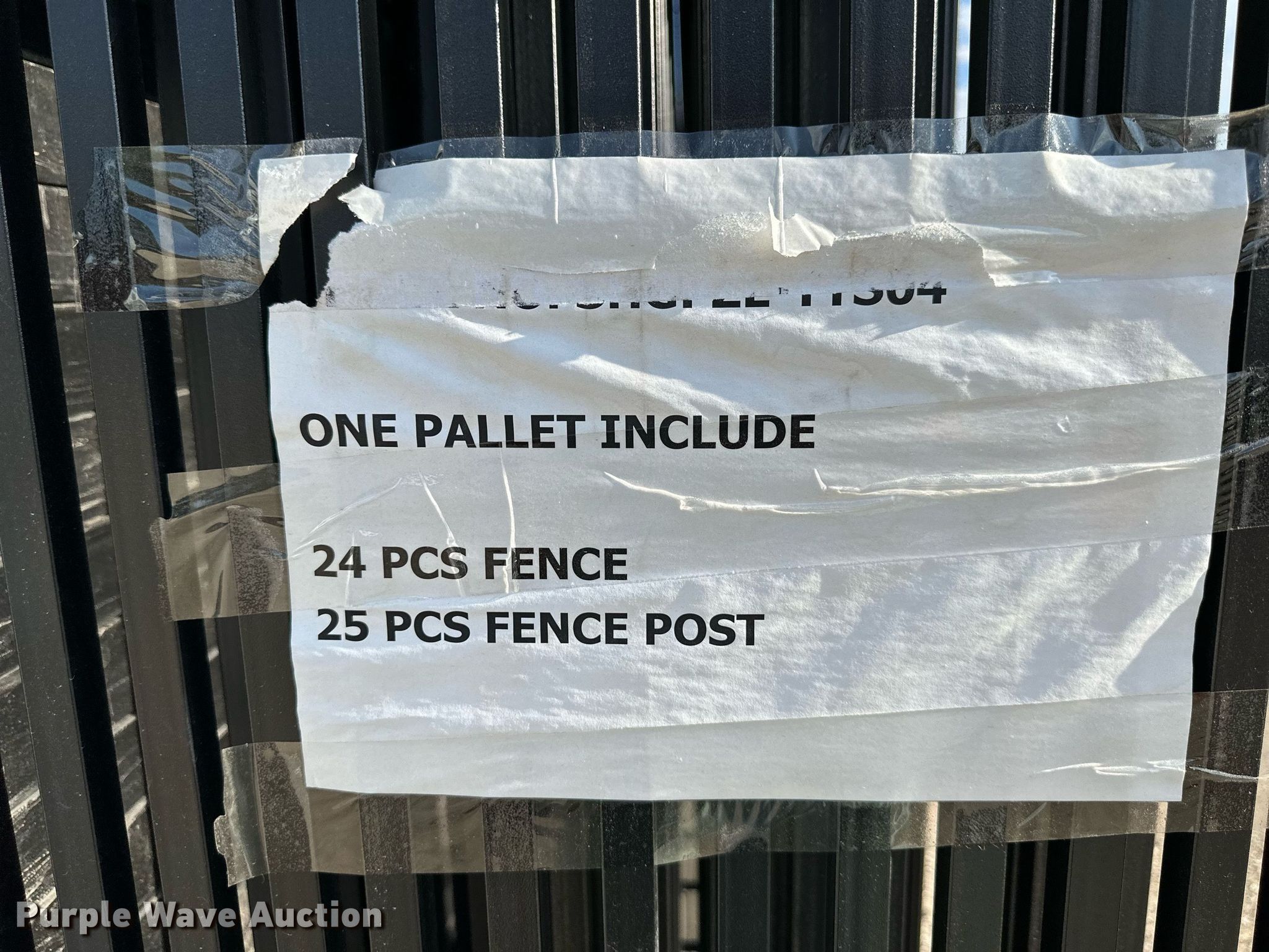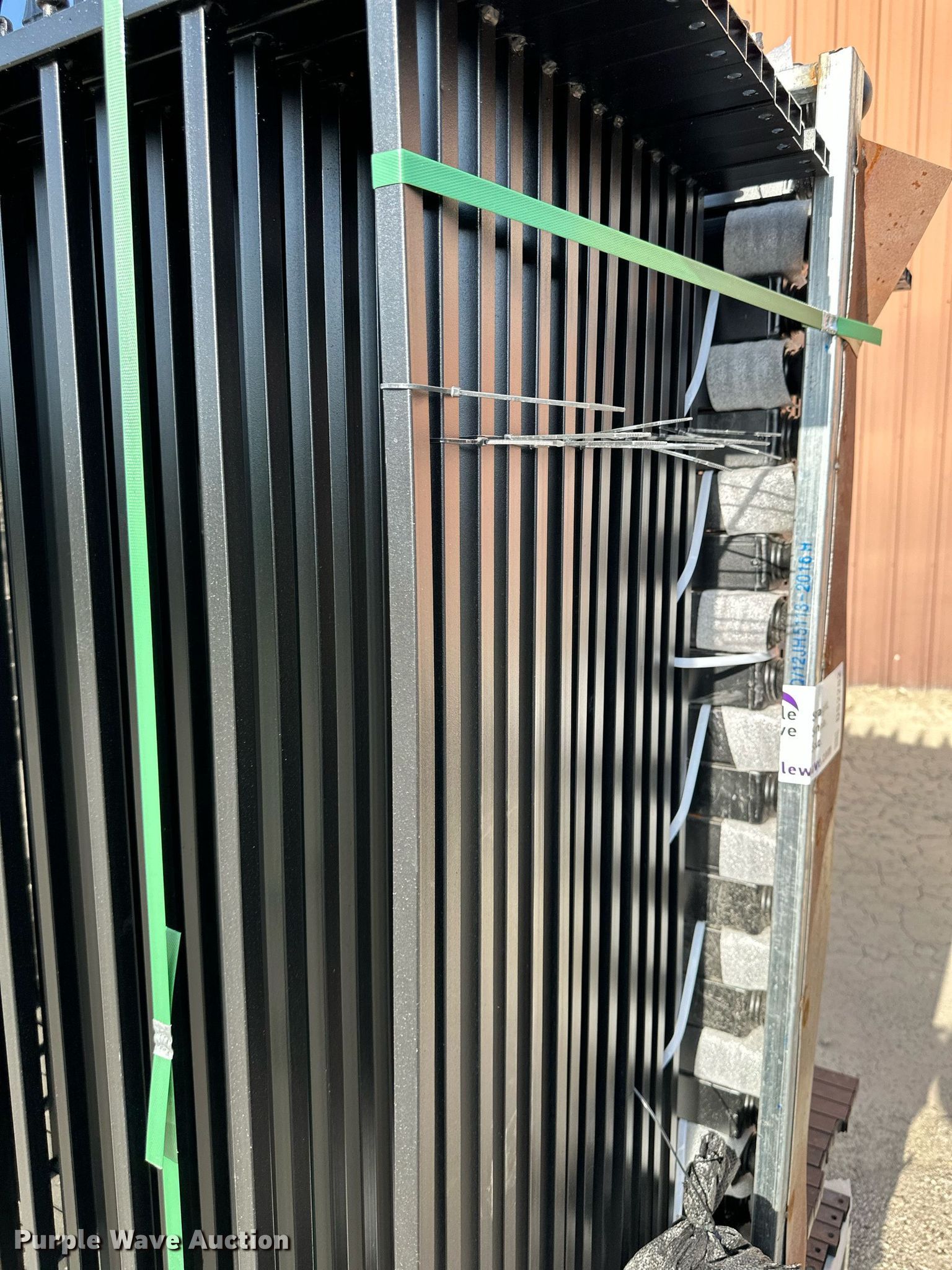 Purple Wave is selling a used Building Materials in Kansas. This item is a Fencing materials with the following: (24) panels, 8' L x 63" H, (25) posts, 8' 2" H, Unused
