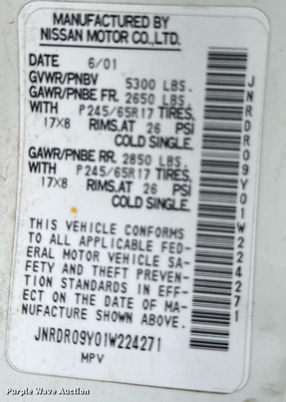 Purple Wave is selling a used Passenger Vehicle in Kansas. This item is a 2001 Infinity QX4 SUV with the following: Miles: 302,584 on odometer, VIN: JNRDR09Y01W224271