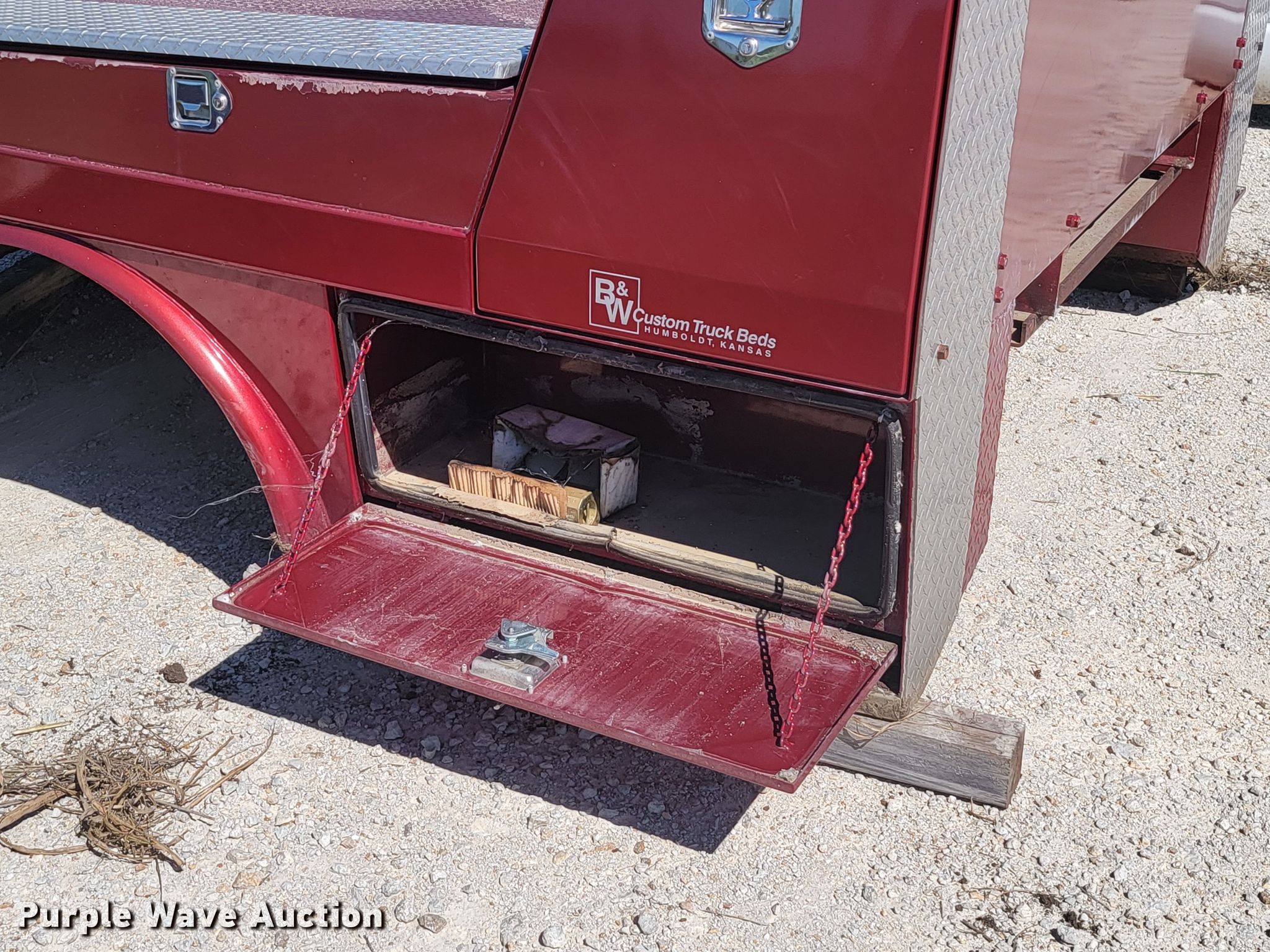 Purple Wave is selling a used Automotive Parts or Acces. in Kansas. This item is a B&W Custom Truck Beds flatbed with the following: 75"L x 70"W, Hitch: Gooseneck