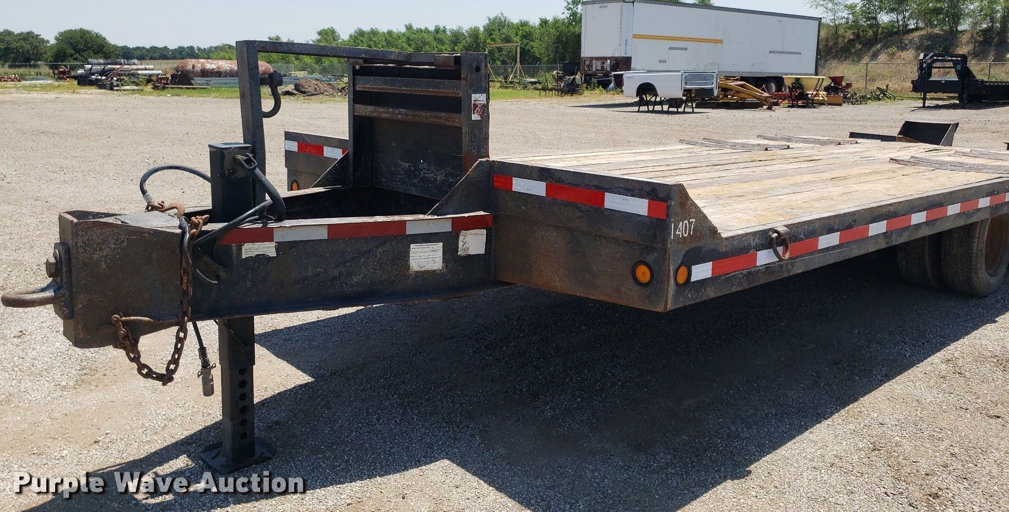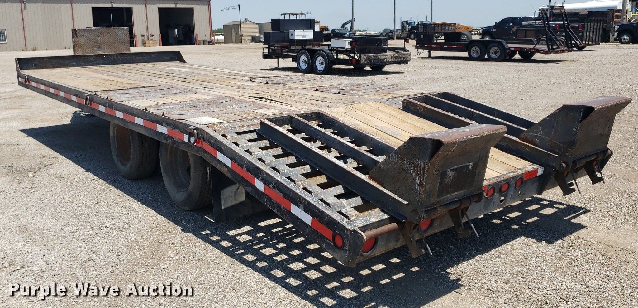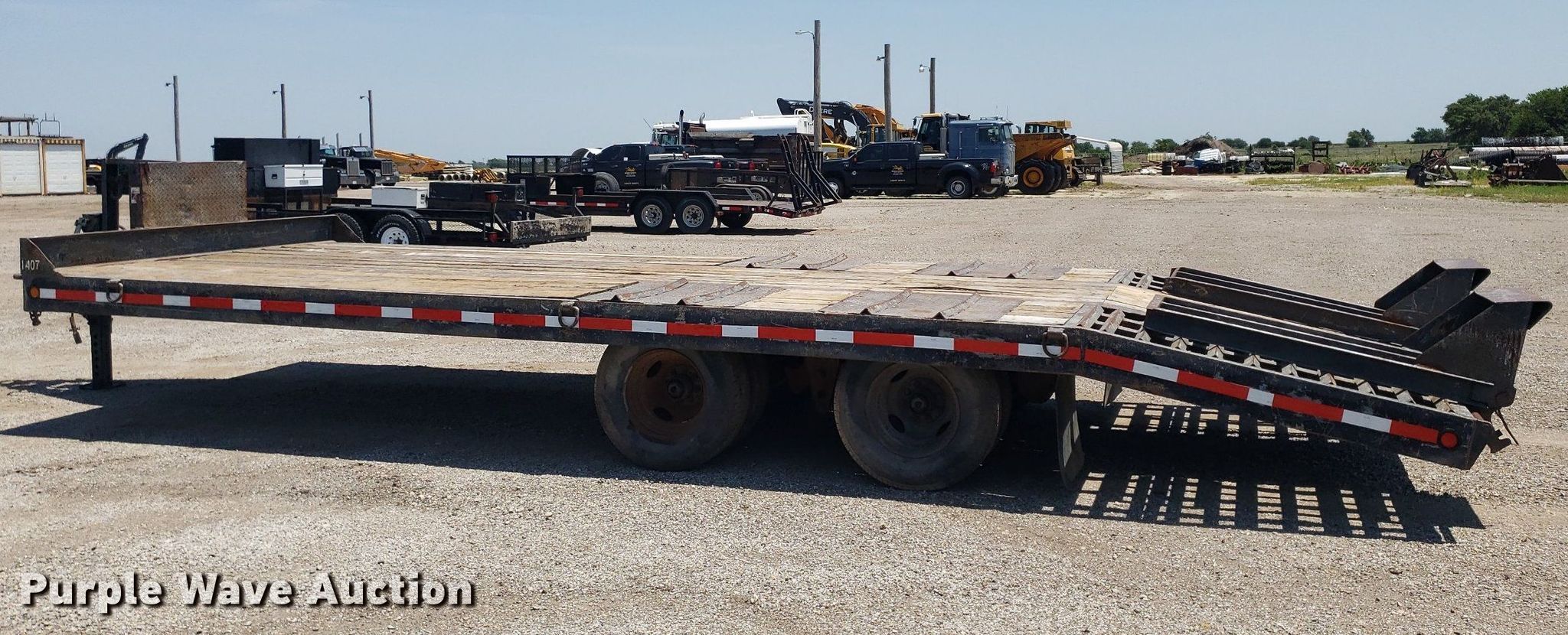 1998 Interstate UNKN-INTE equipment trailer. VIN: 1JKDTA203WA100238. Dimensions Overall: 29' L x 102" W, Deck: 19' L x 102" W, Tail length: 5', Ramps: Manual Length: 58". Features Deck type: Wood. Chassis Hitch: Pintle, Landing gear: Single, Suspension: Spring, Brakes: Electric, Axles: Tandem. Tires Steel wheels, Size: 9.50R16.5. Kansas title. Title distribution may be delayed up to 14 days from verification of funds. Graber Backhoe. 2012 N Oliver Rd. Newton, KS 67114