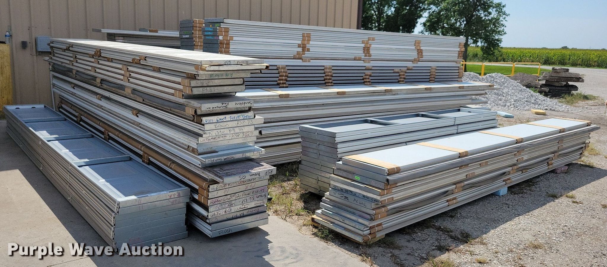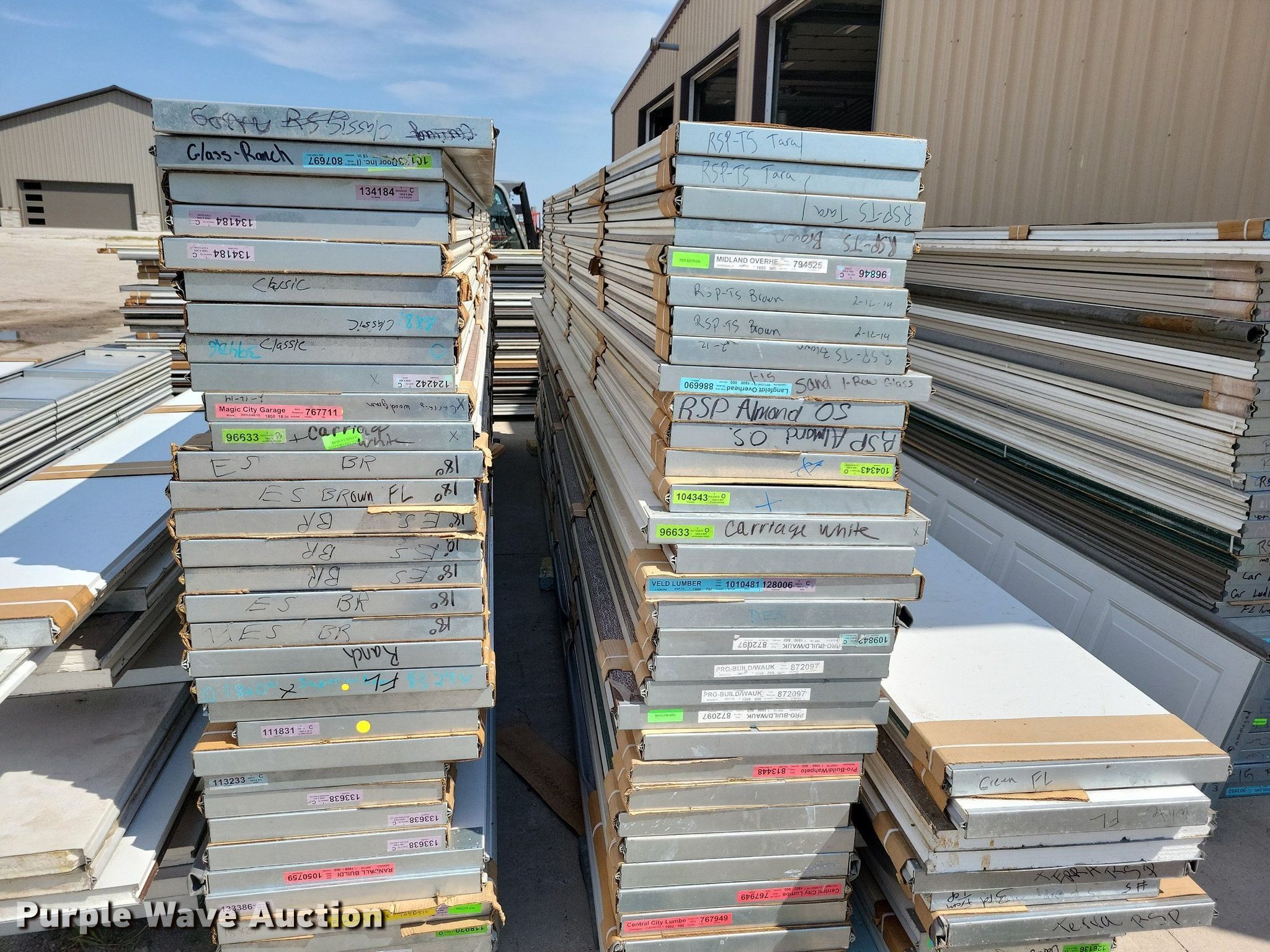 Purple Wave is selling a used Building Materials in Iowa. This item is a Approximately 192 garage door panels with the following: Length: 9' to 20', Insulated, Non-Insulated, Unused