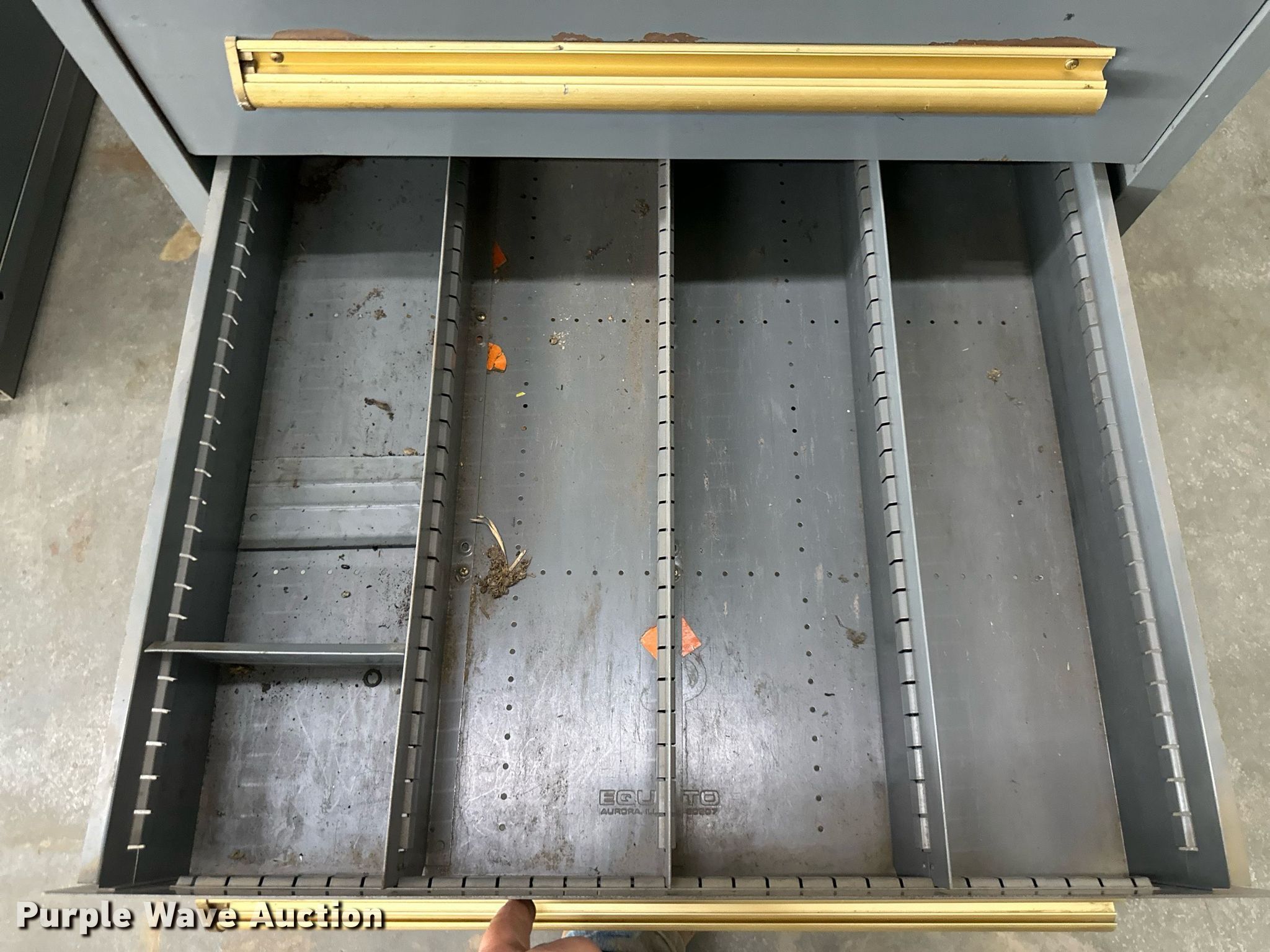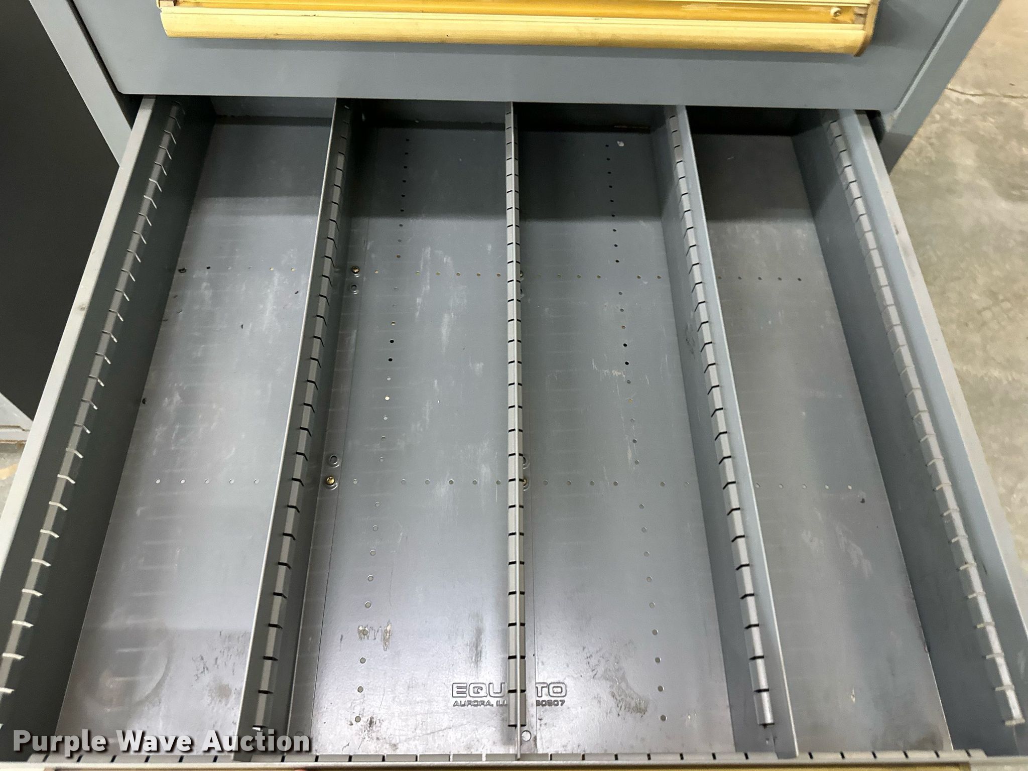 Purple Wave is selling a used Tools in Kansas. This item is a Equipto storage cabinet with the following: 30" W x 27" D x 59" T