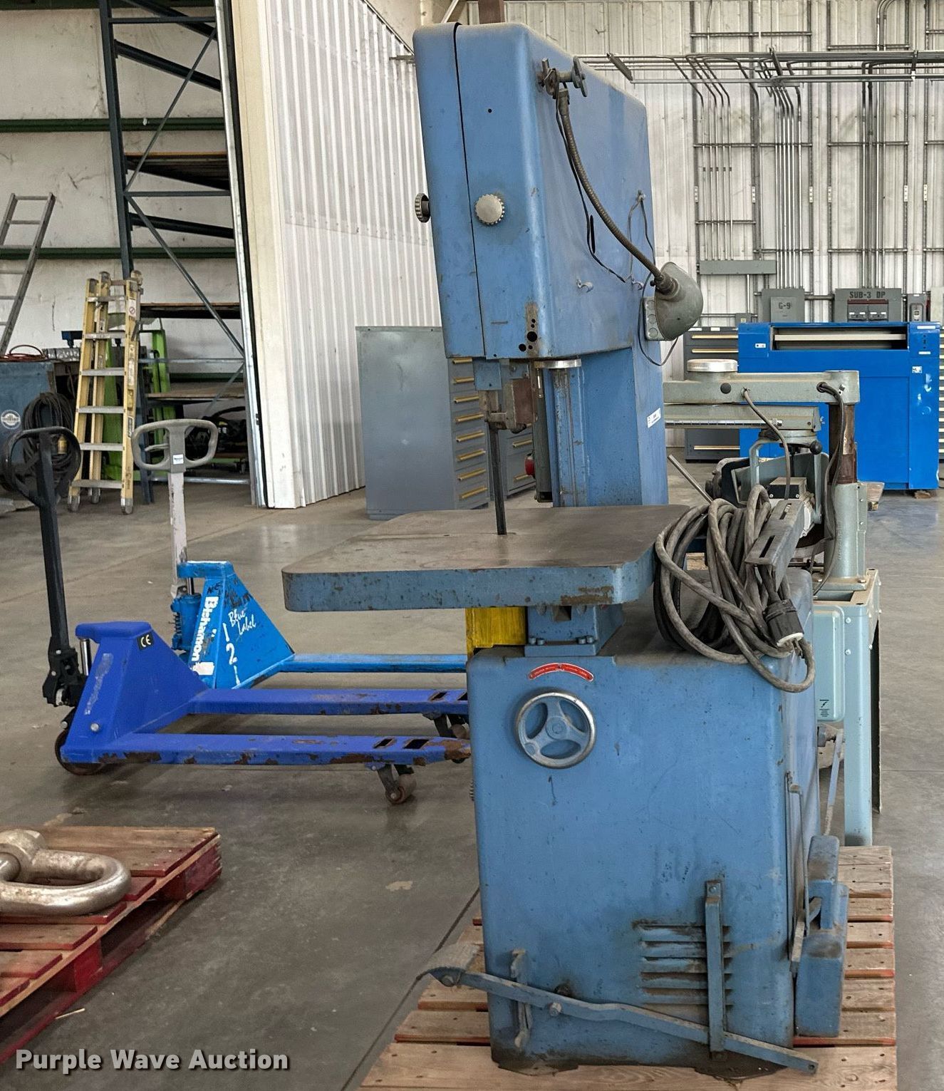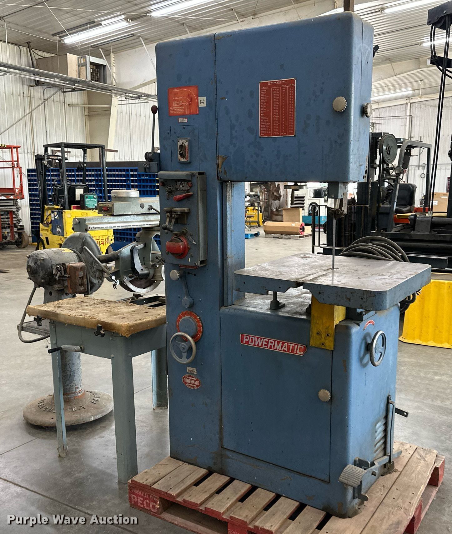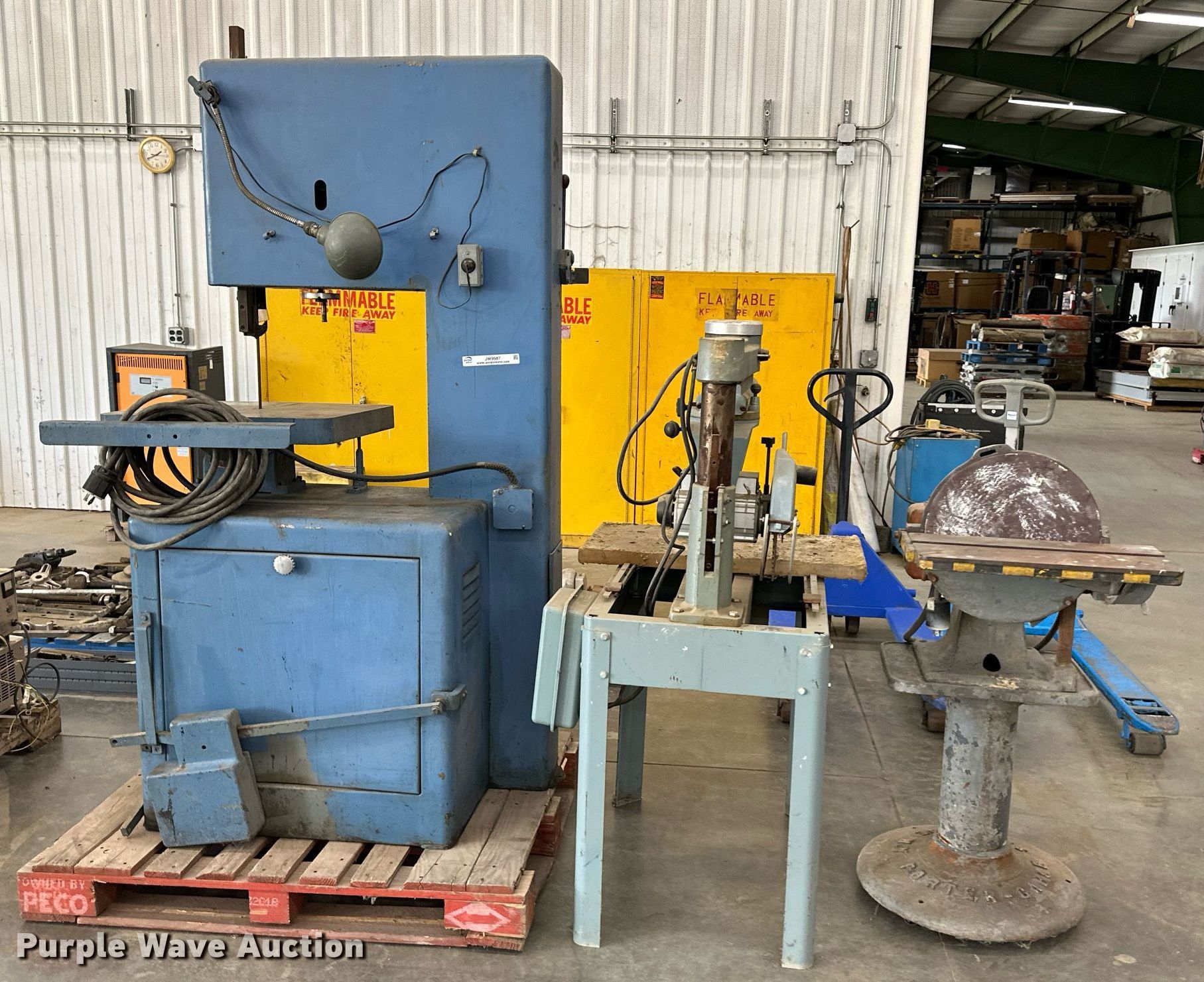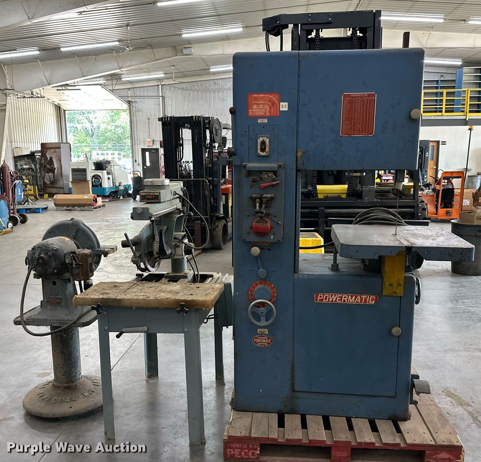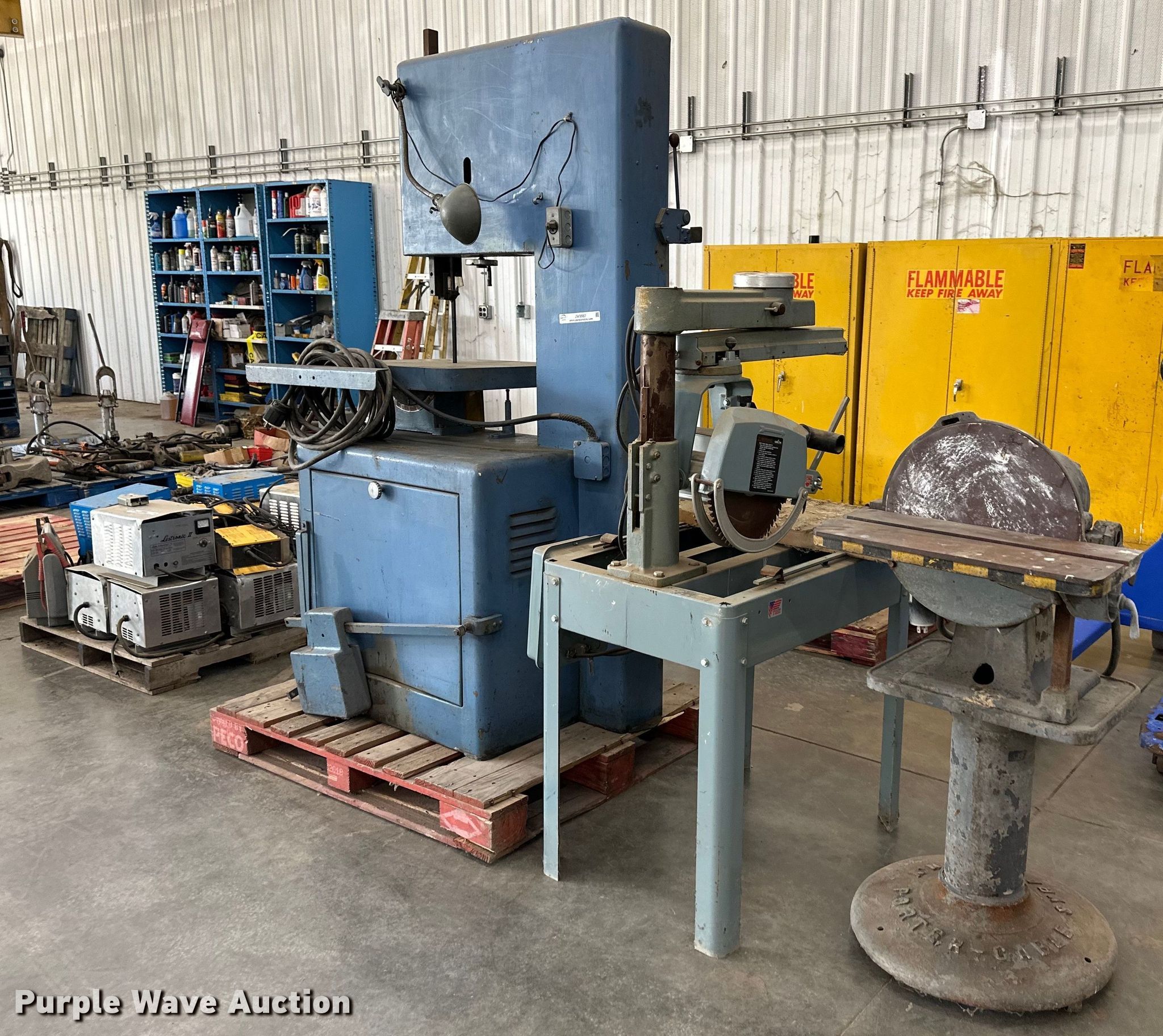 Purple Wave is selling a used Machine Shop Tools and Equip. in Kansas. This item is a Tools with the following: Powermatic bandsaw, Porter Cable disc sander, Delta radial arm saw