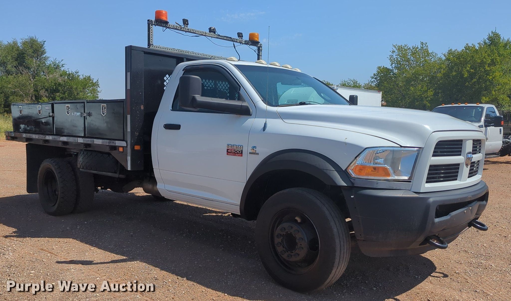 Purple Wave is selling a used Flat Bed Truck in Oklahoma. This item is a 2012 Dodge Ram 4500HD flatbed truck with the following: Miles: 241,938 on odometer, VIN: 3C7WDKBL4CG189515