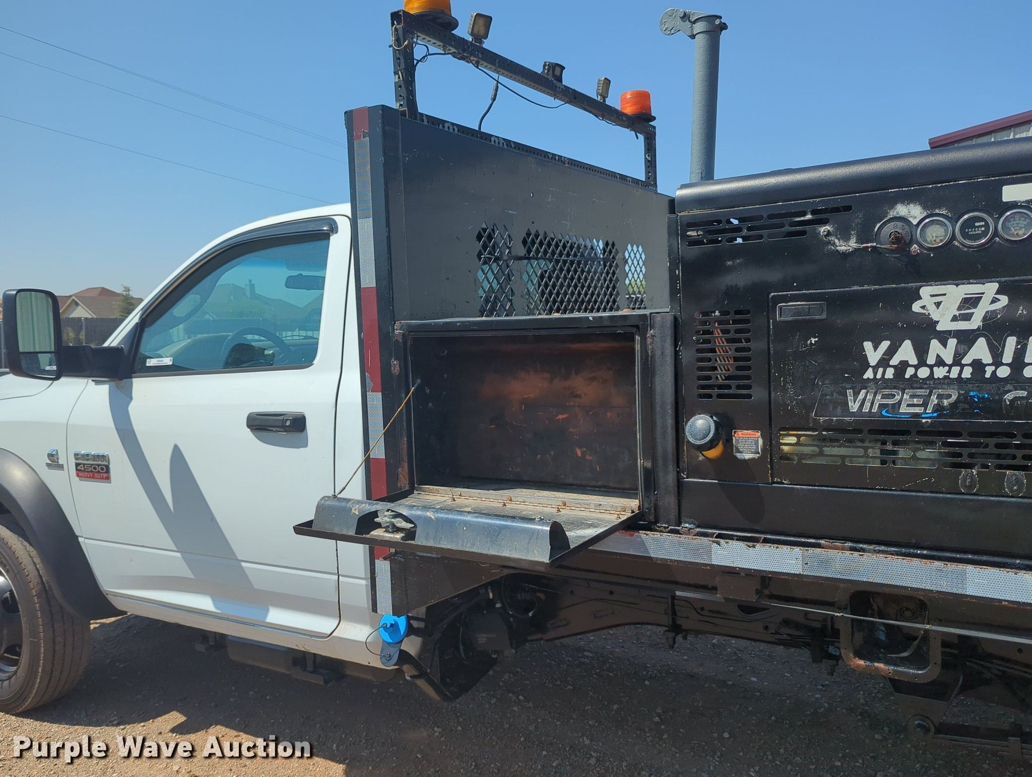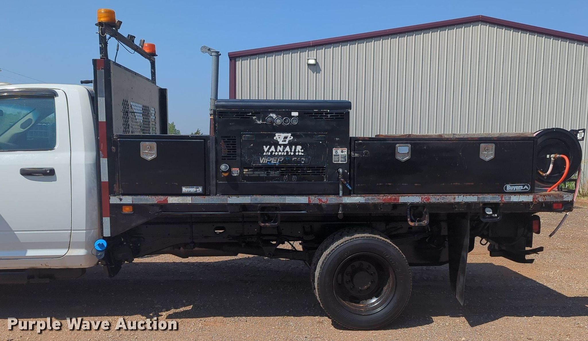 2012 Dodge Ram 4500HD flatbed truck. Miles: 241,938 on odometer, VIN: 3C7WDKBL4CG189515. Engine Displacement: 6.7L L6 OHV, Cylinders: 6, Fuel type: Diesel. Transmission Automatic. Chassis Axles: Single, Suspension: Spring, Brakes: Hydraulic. Interior AC, Heat, Cruise control. Features Flatbed 12' x 92" W, Air compressor Vanair Viper. Tires Size: 245/70R19.5. Oklahoma title. Seller is an Oklahoma licensed motor vehicle dealer. Title will be assigned and distributed by the dealer. Please contact the seller for distribution questions. 1401 Lakeshore Dr. Yukon, OK 73099