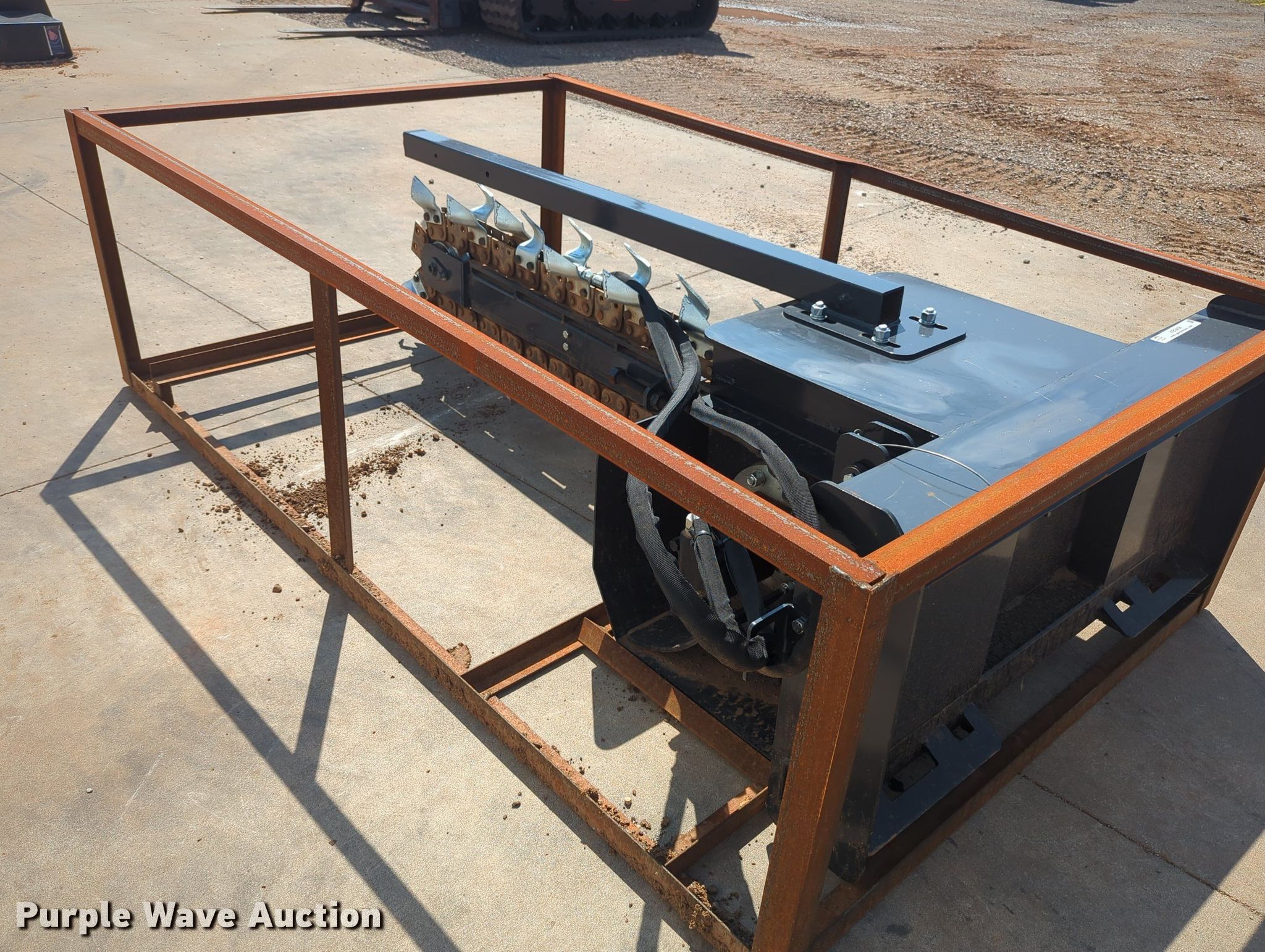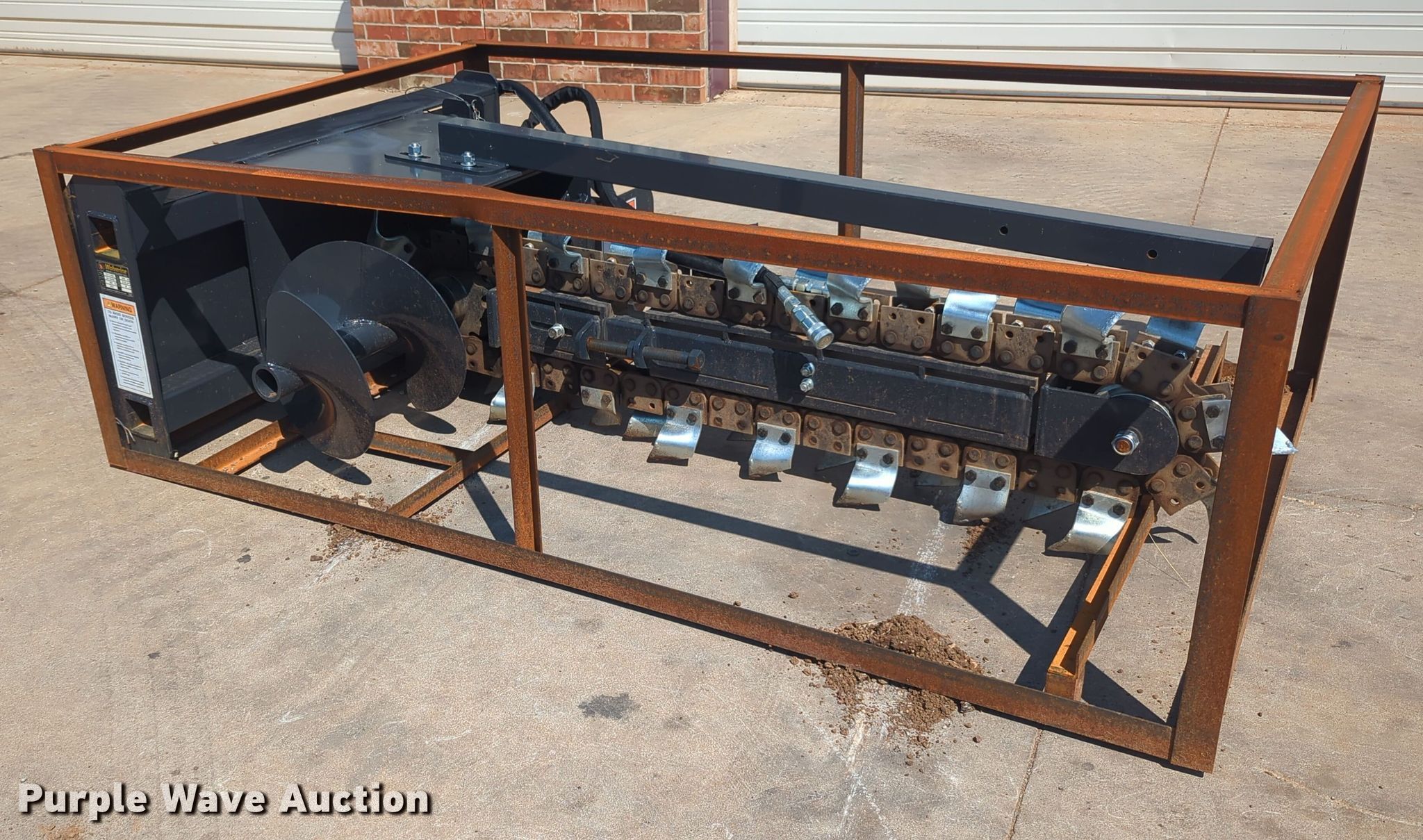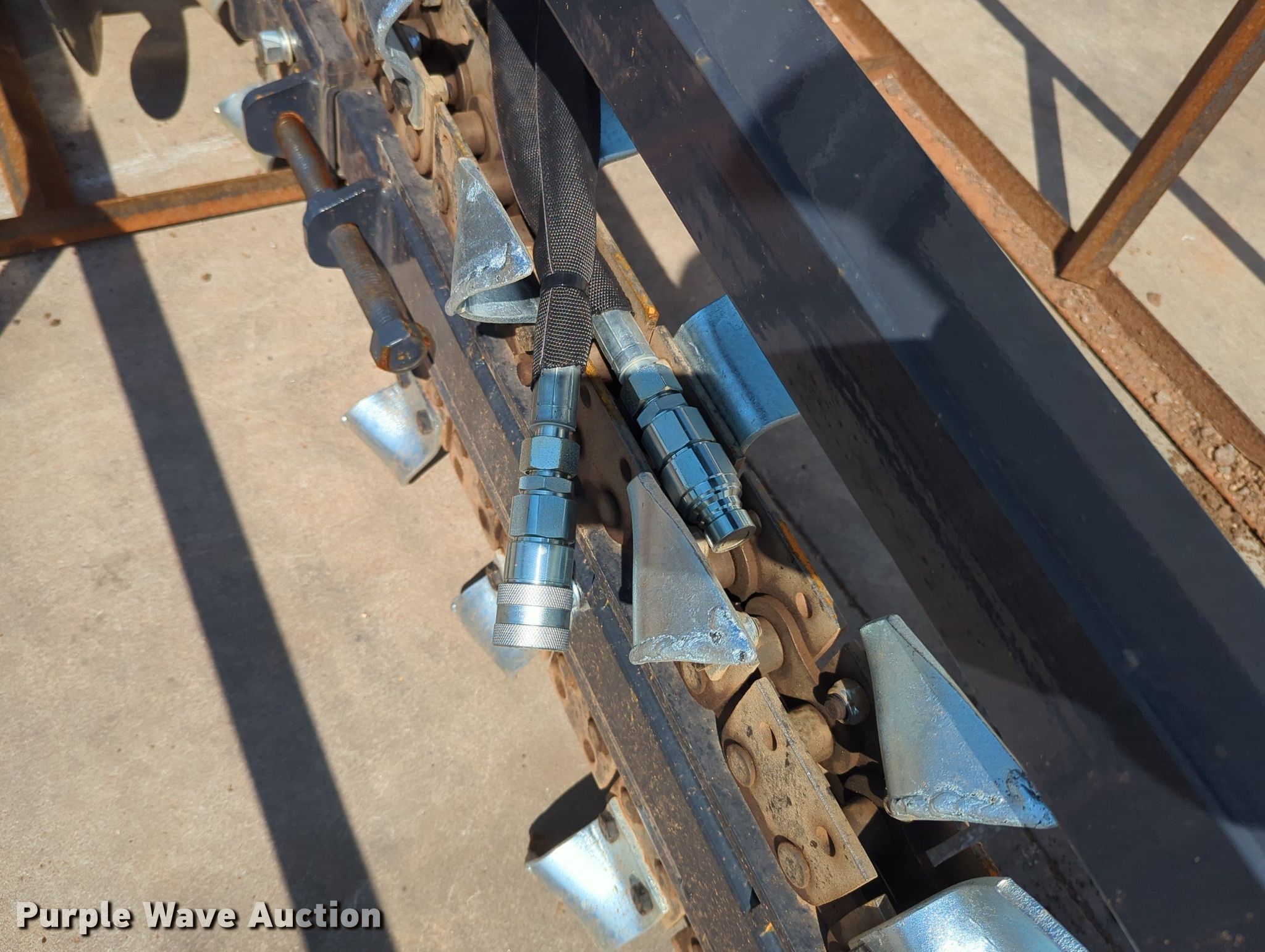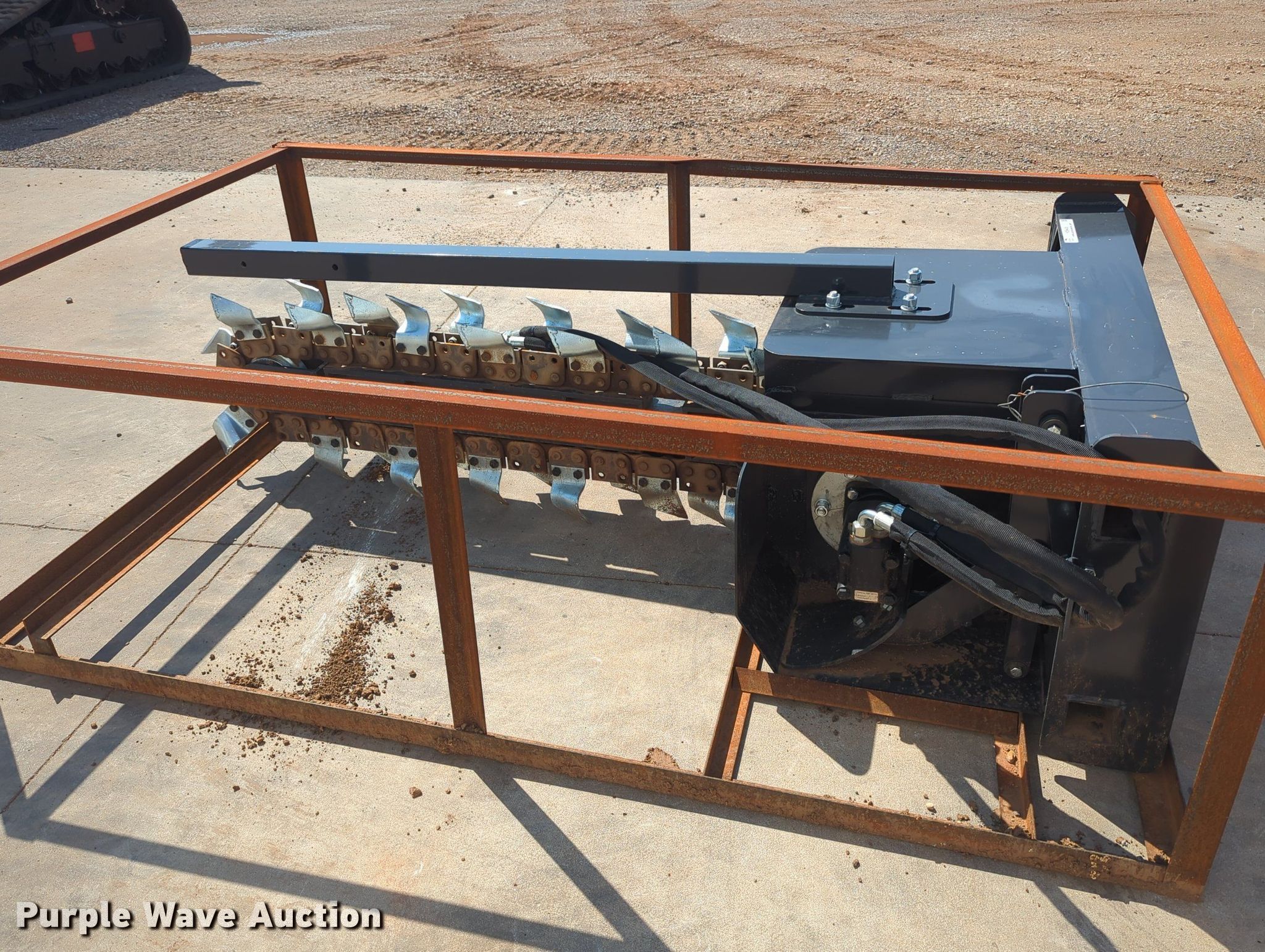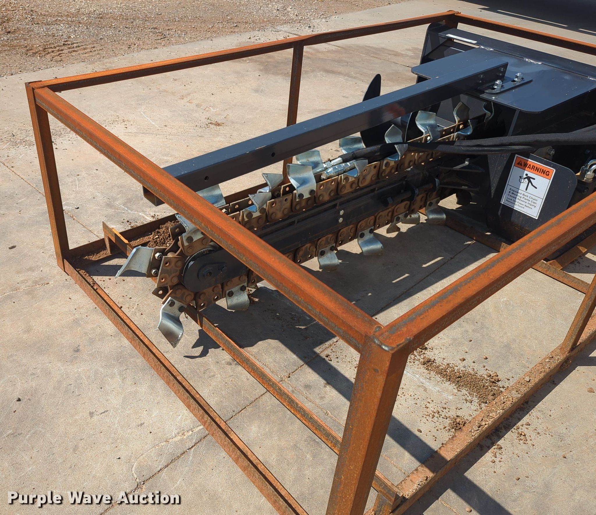 Purple Wave is selling a used Skid Steer Attach. in Oklahoma. This item is a Wolverine TCR-12-48H skid steer trencher with the following: Serial: ZW-00460, Estimated dig depth: 48", Cutting width: 4.5", Unused