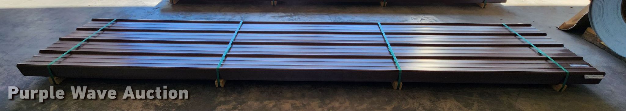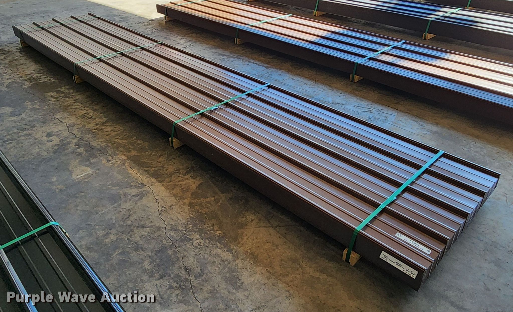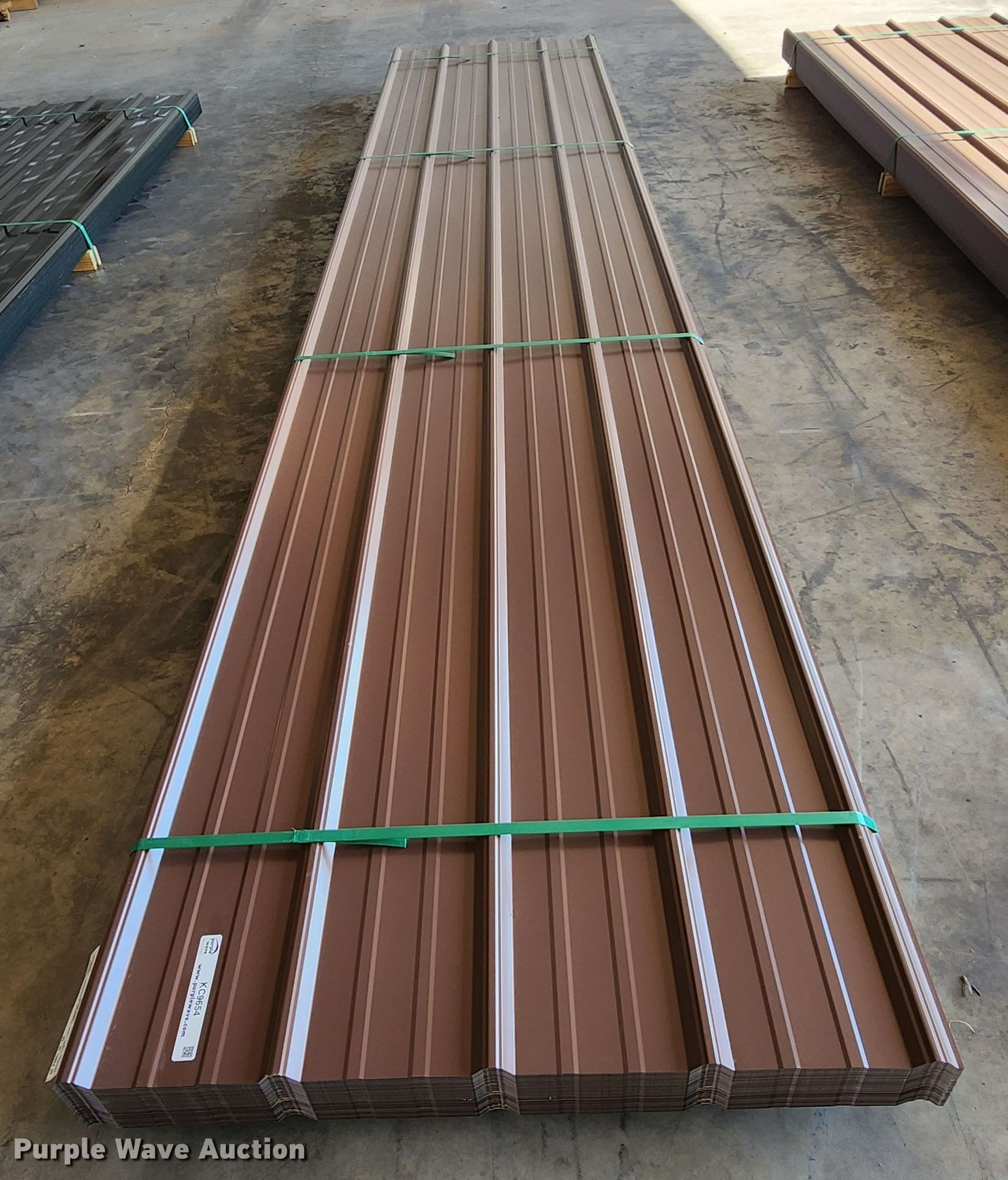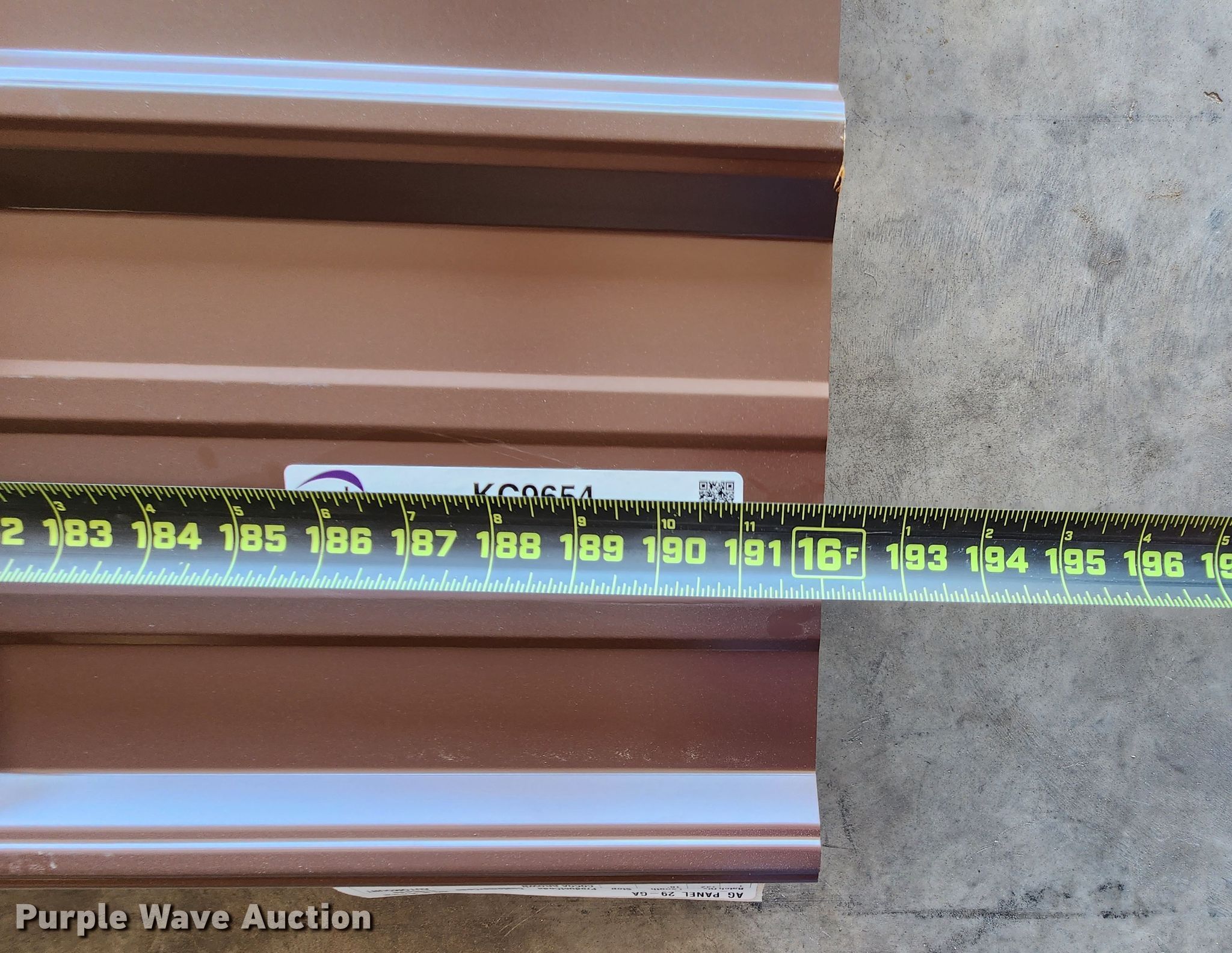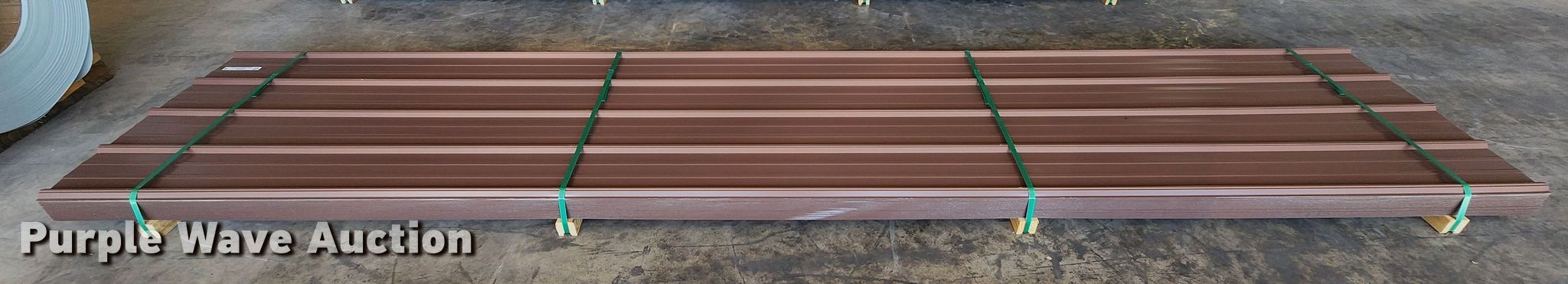 Purple Wave is selling a used Building Materials in Texas. This item is a (142) sheets of Doerkson Metal Components metal siding/roofing with the following: 16' L x 36" W overlap coverage, AG panel profile, 29 gauge, Color: Cocoa brown, Possible blemishes