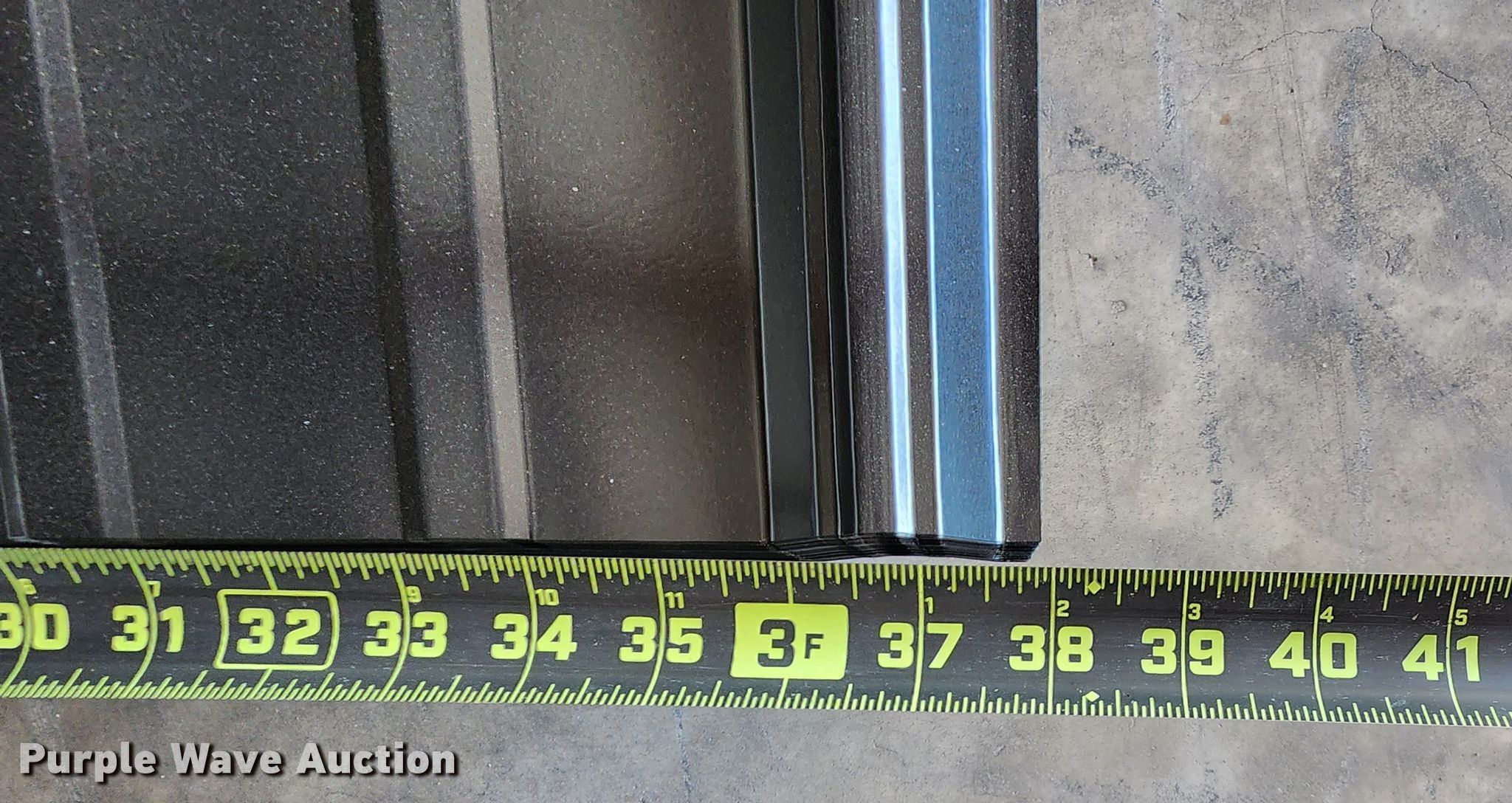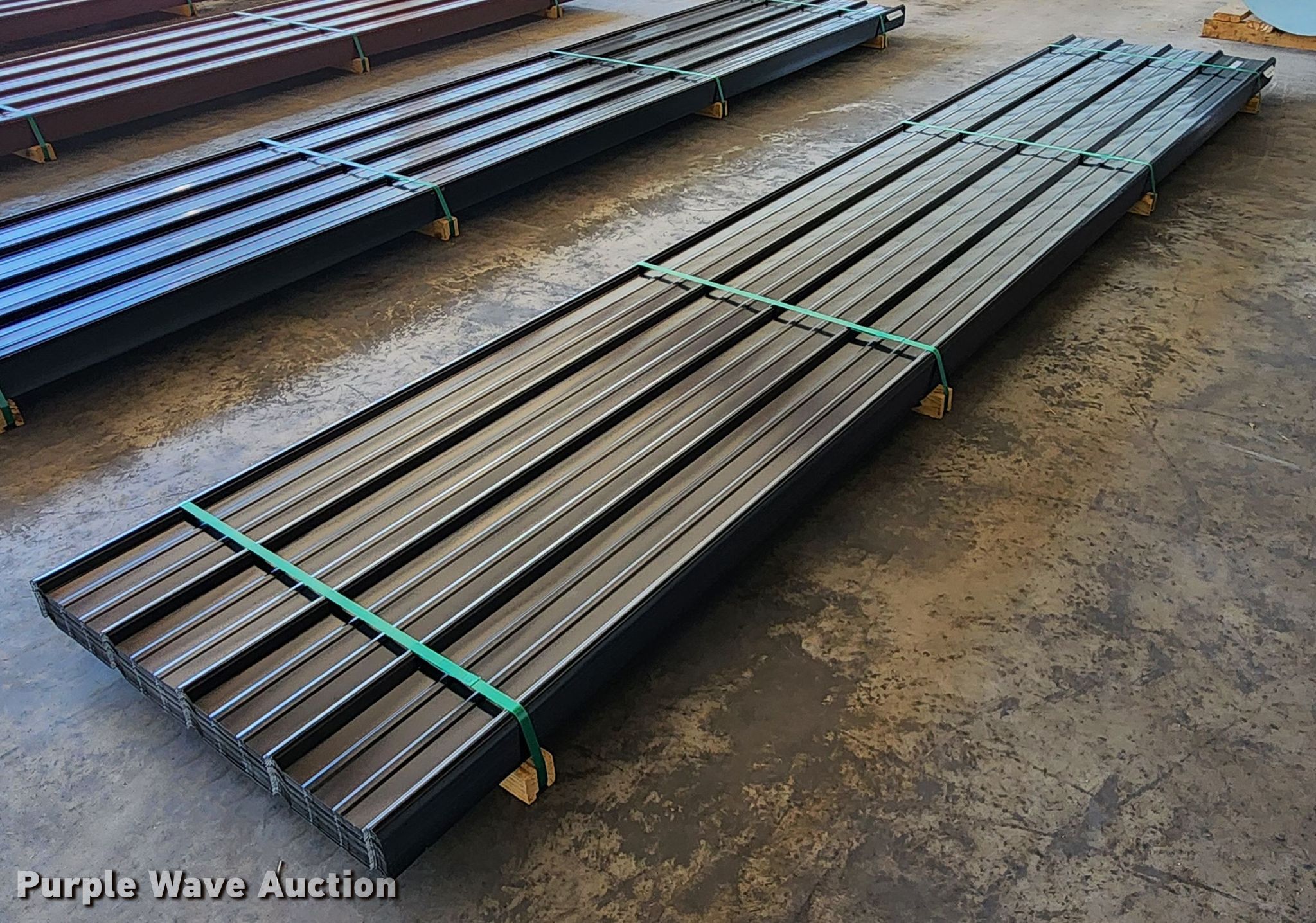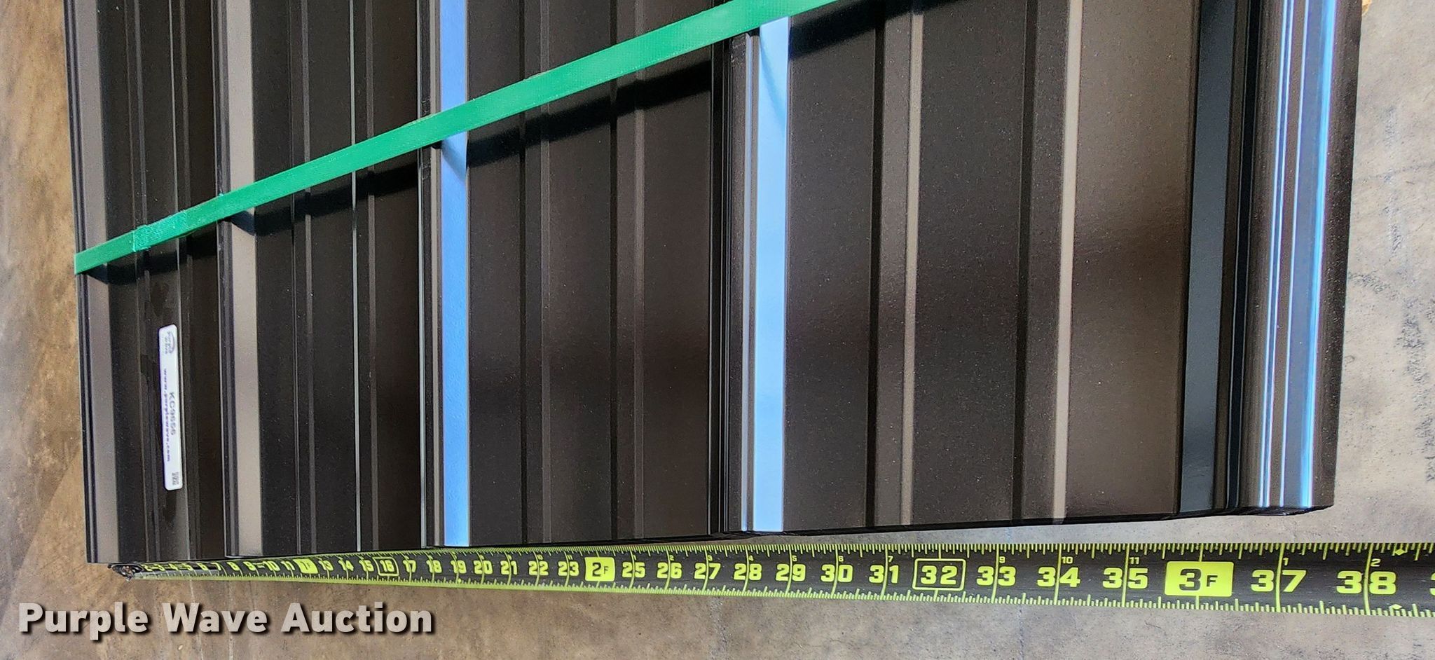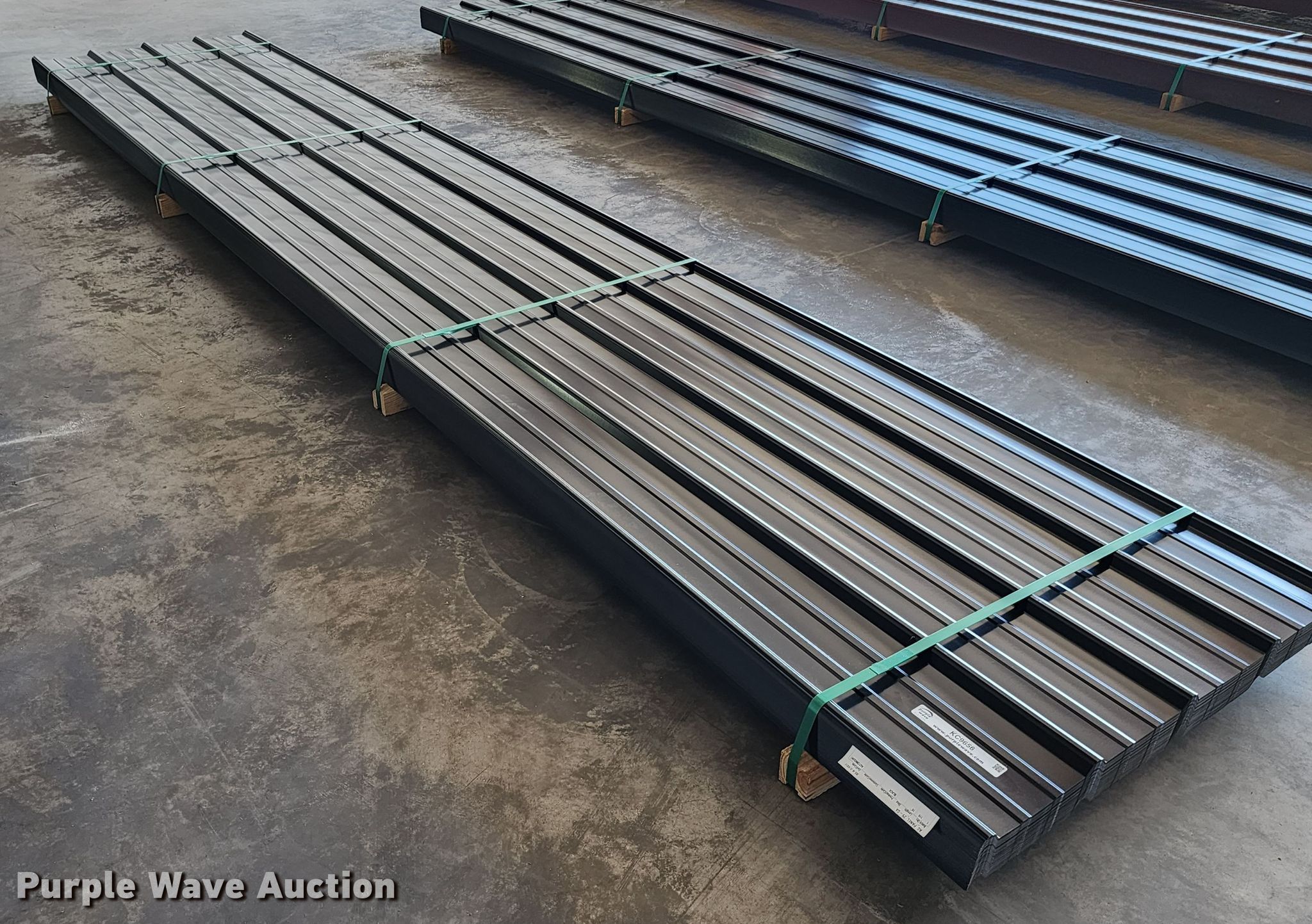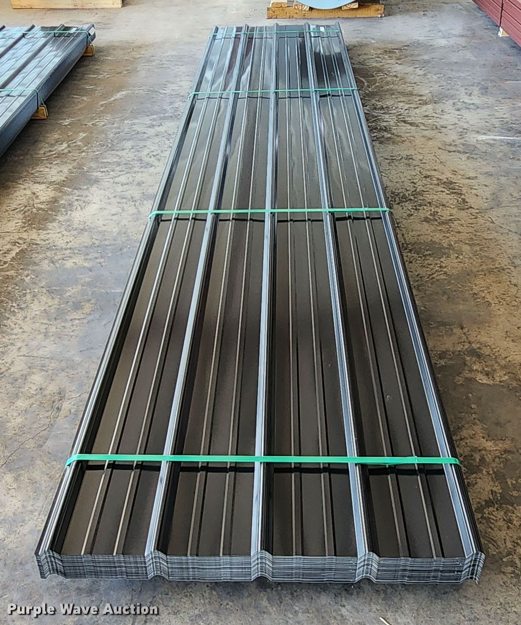 Purple Wave is selling a used Building Materials in Texas. This item is a (119) sheets of Doerkson Metal Components metal siding/roofing with the following: 16' L x 36" W overlap coverage, AG panel profile, 29 gauge, Color: Black, Possible blemishes