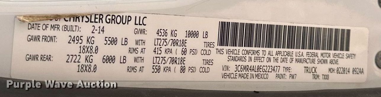 Purple Wave is selling a used 3/4 or 1 Ton Pickup or Van in Texas. This item is a 2014 Dodge Ram 2500HD utility bed pickup truck with the following: Miles: 159,514 on odometer, VIN: 3C6MR4AL0EG223477