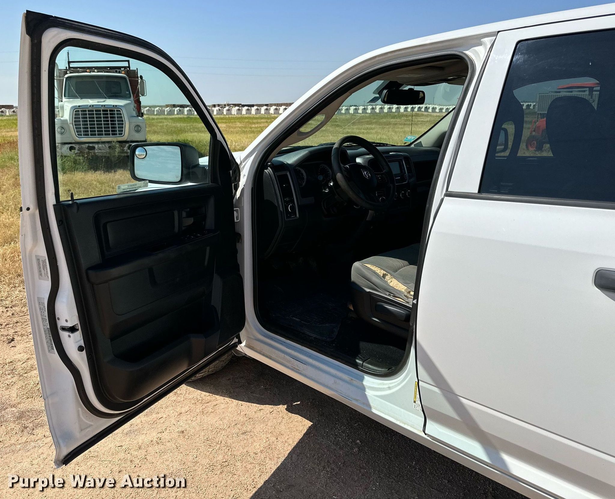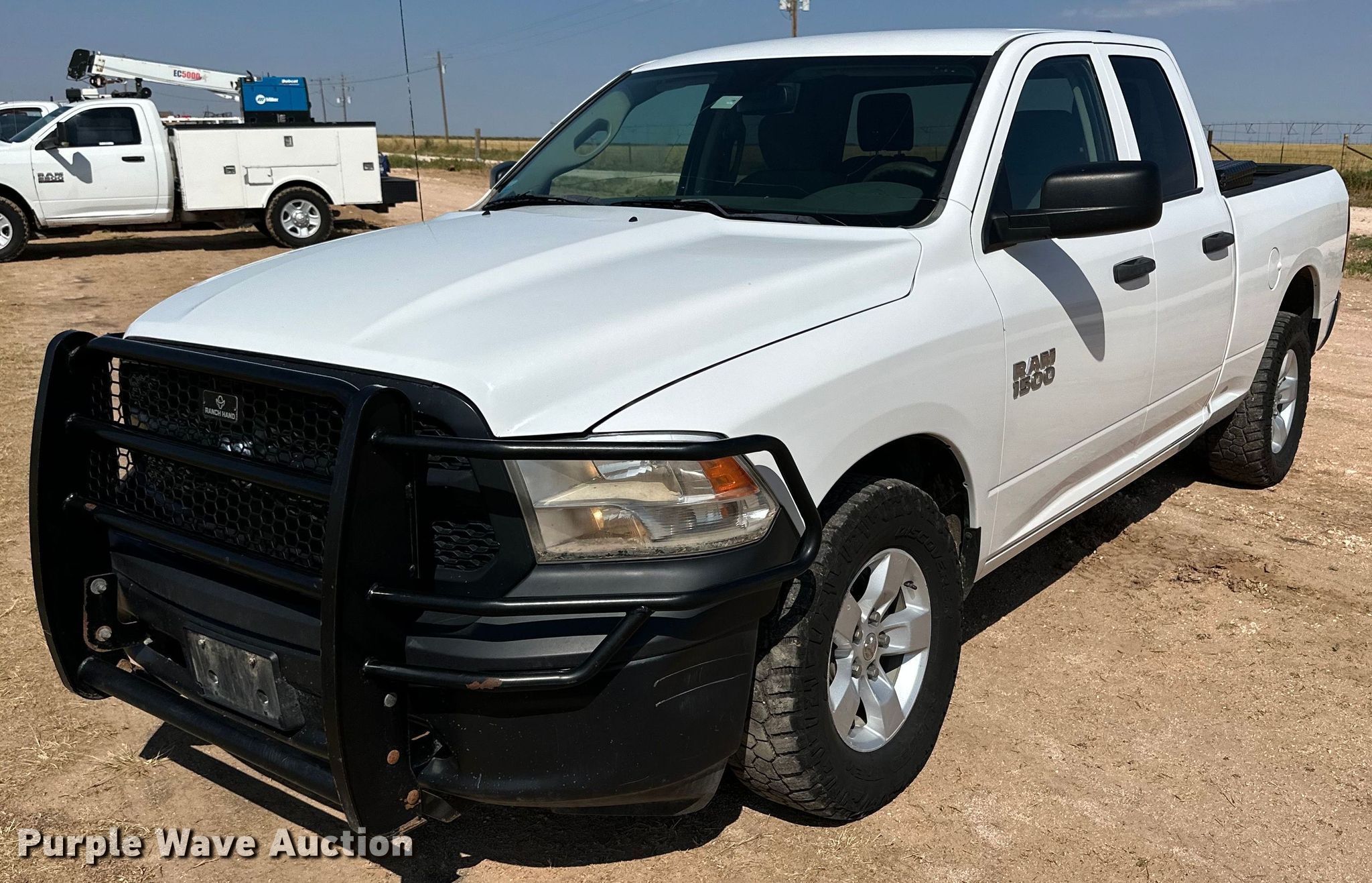 2015 Dodge Ram 1500 Quad Cab pickup truck. Miles: 173,257 on odometer, VIN: 1C6RR7FG0FS579490. Engine Displacement: 3.6L V6 DOHC, Cylinders: 6, Fuel type: Gas. Transmission Automatic, Four wheel drive. Interior AC, Heat, Heated mirrors, Power windows, Power locks, Cruise control. Tires Size: 265/70R17. Notes Dash warning indicator: Check engine, TPMS, Windshield chipped or cracked, Hail damage, Dead battery. Texas title. Title distribution may be delayed up to 14 days from verification of funds. United Ag LLC. Plainview, TX 79072
