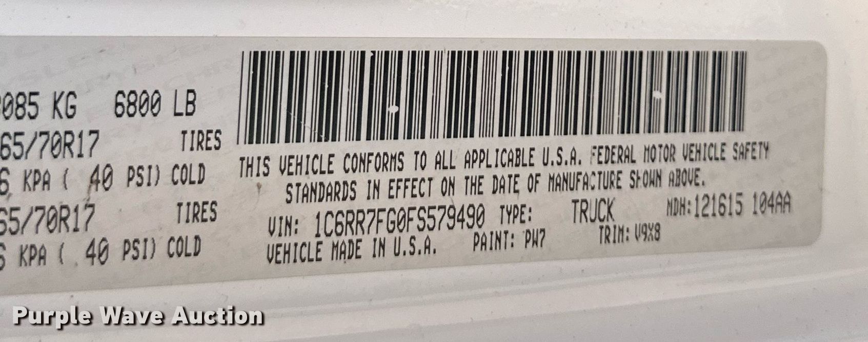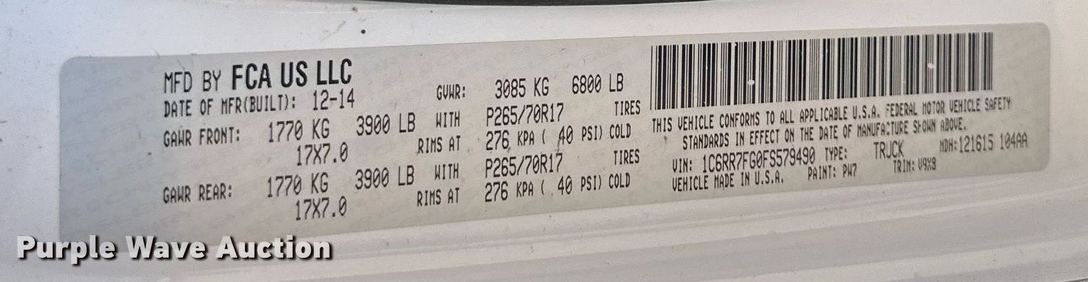 • VIN: 1C6RR7FG0FS579490